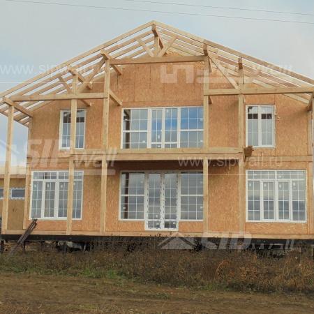 Выполнены работы по устройству свайного фундамента, изготовлению и монтажу домокомплекта, устройство кровли, окна, фасадные работы.