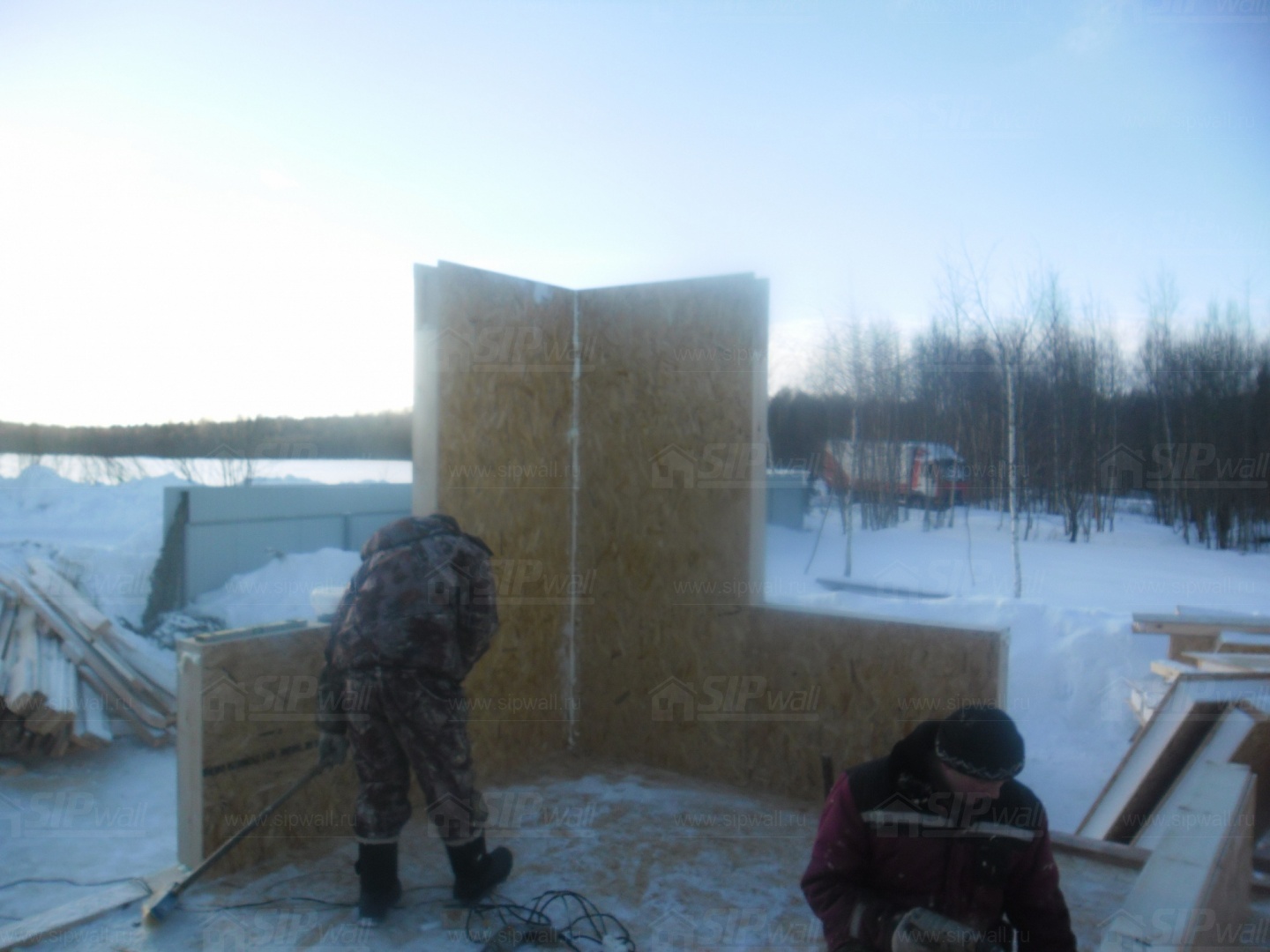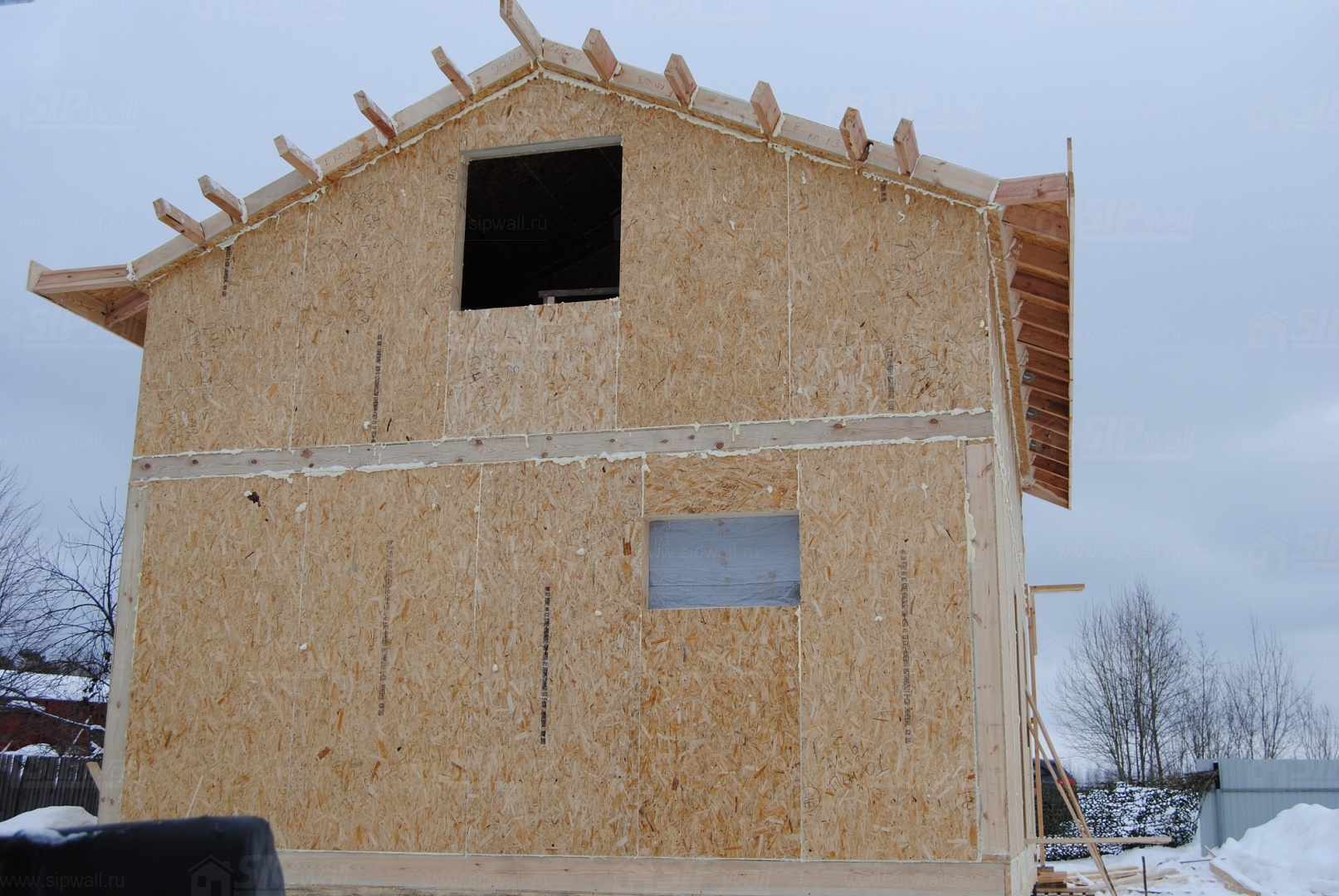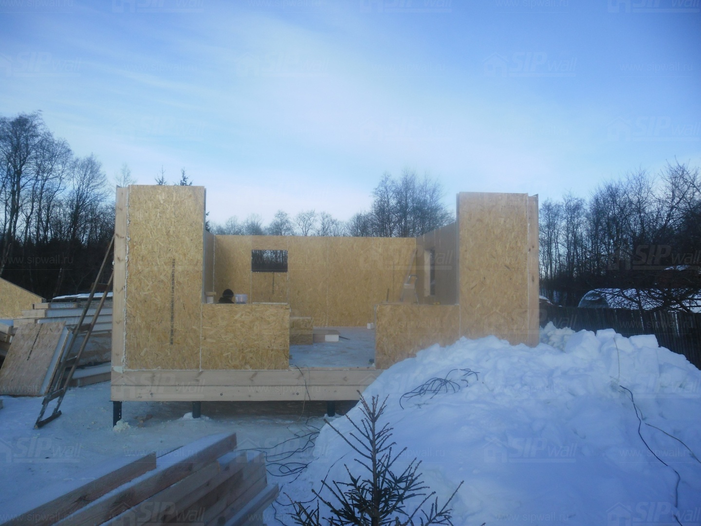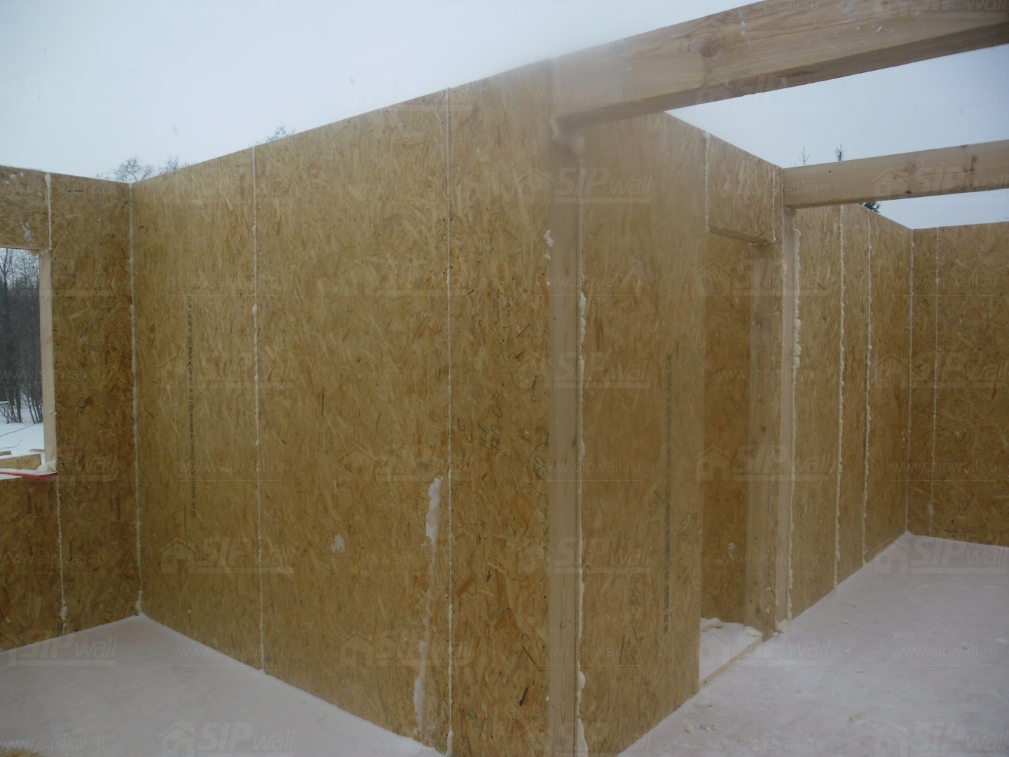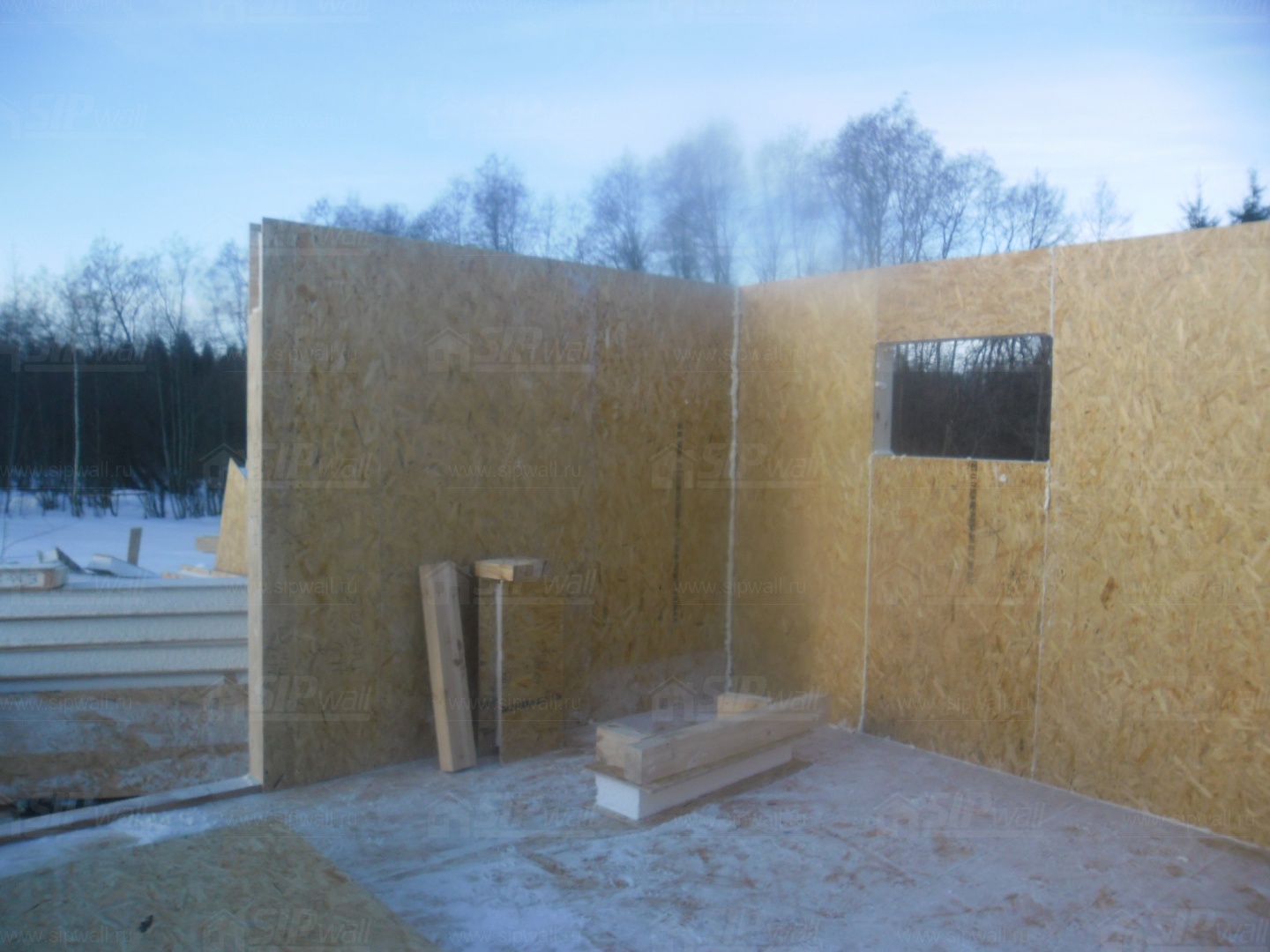 Все СИП панели SIPwall толщиной 224/174/124 мм (плиты OSB-3 толщиной 12 мм "Калевала" Россия и фасадный пенополистирол ПСБ-С 25 по ГОСТ 15588-14 толщиной 200/150/100 мм производства завода "PolarPlast", Россия) нарезаны и обрусованы сухим строганным брусом камерной сушки в соответствии с проектной документацией.