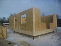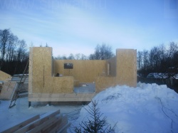 Комплектация домокомплекта: нулевое перекрытие -выполнены из СИП панелей 224У мм, несущие стены дома выполнены из СИП панелей 174 мм., внутренние несущие стены выполнены из СИП панелей 174 мм. и внутренние не несущие перегородки выполнены из СИП панелей 124 мм. Перекрытие межэтажное - выполнены из СИП панелей 224У мм. Кровля - из СИП панелей - 174у мм производства компании СИПВОЛЛ.