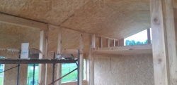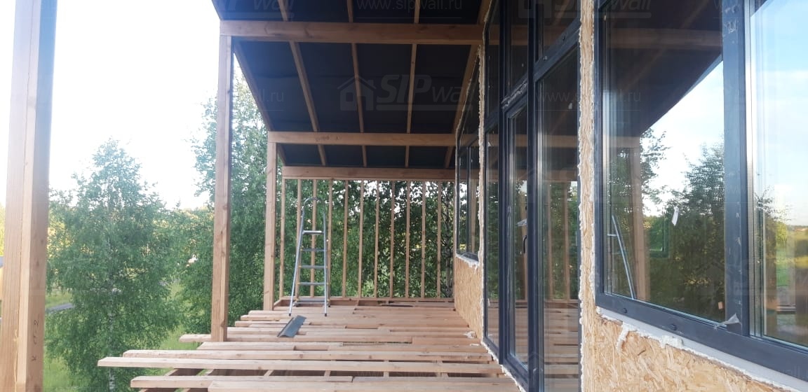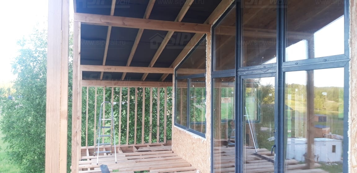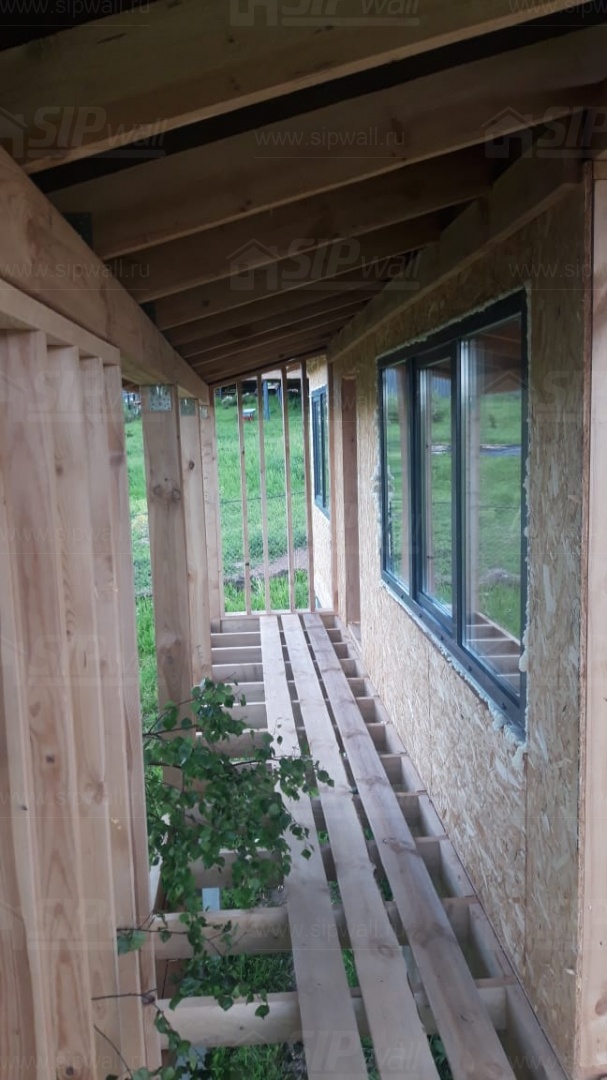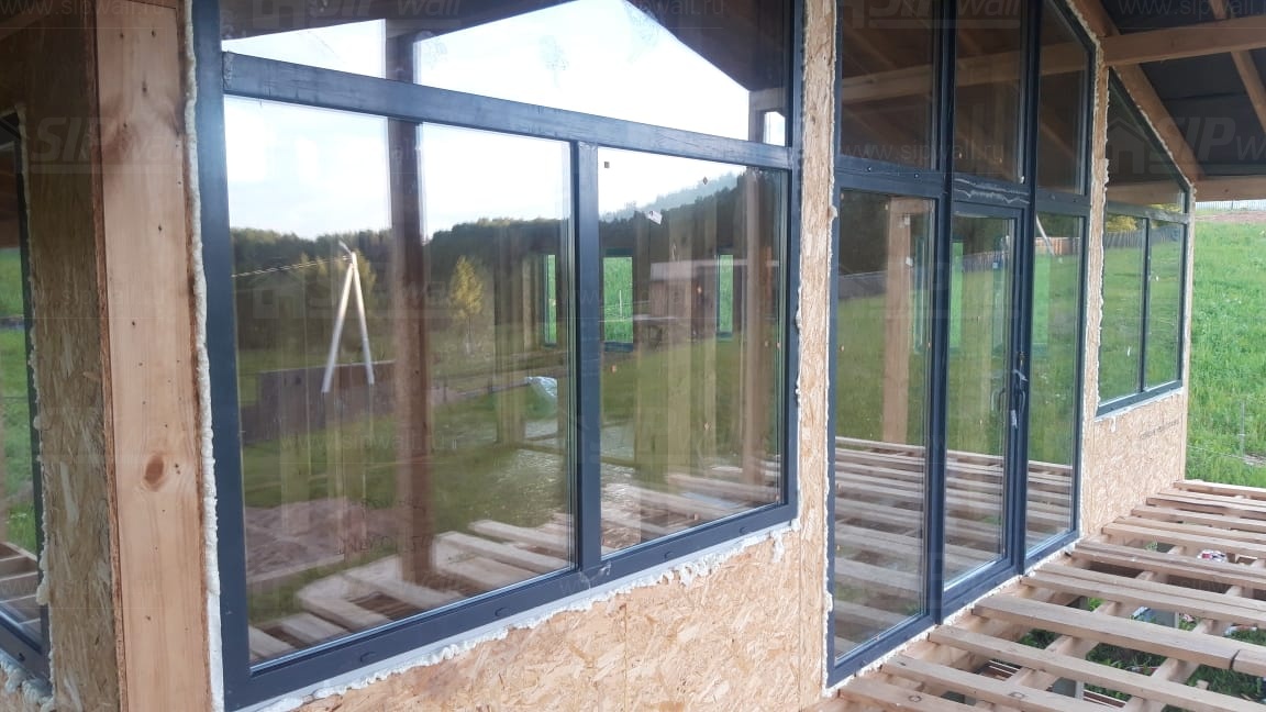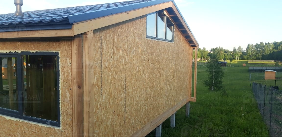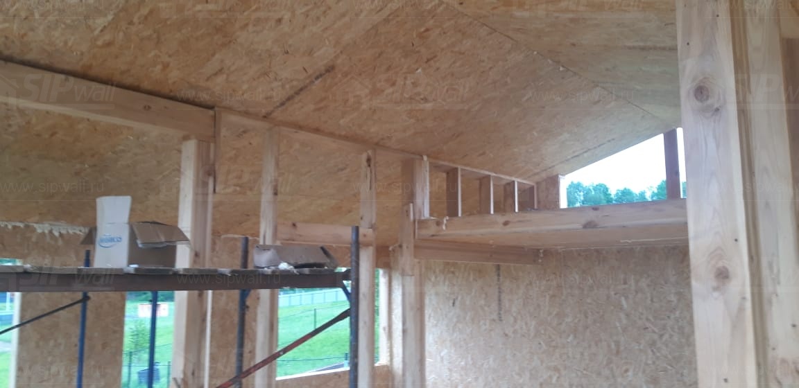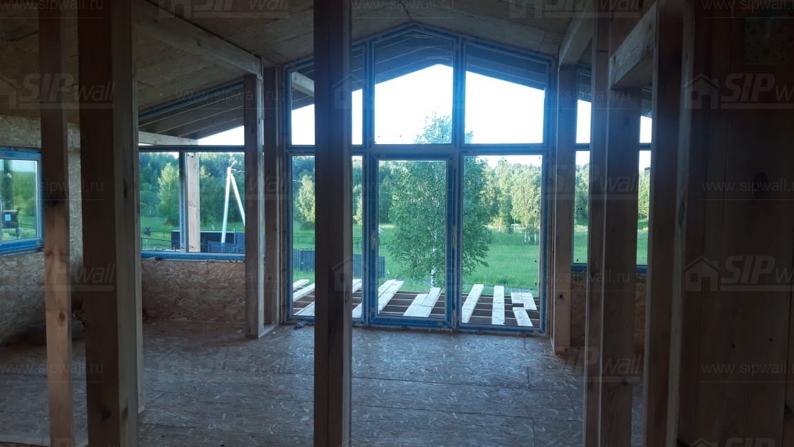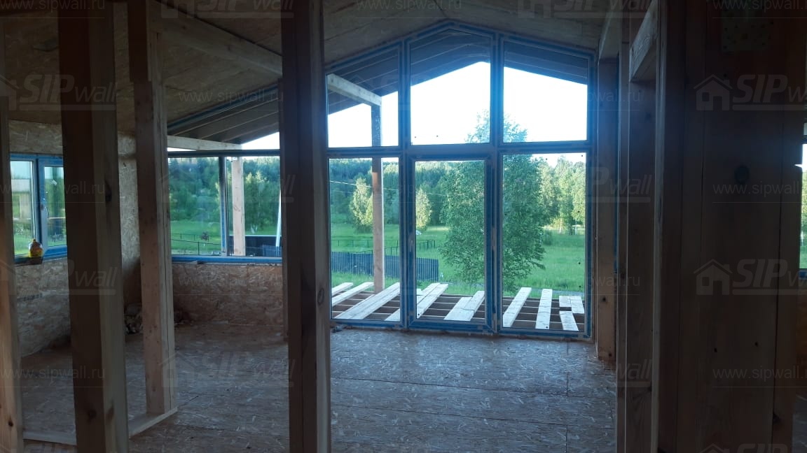 Все СИП панели SIPwall толщиной 224/174/124 мм (плиты OSB-3 толщиной 12 мм "Калевала" Россия и фасадный пенополистирол ППС-14 толщиной 200/150/100 мм производства, Россия) нарезаны и обрусованы сухим строганным брусом камерной сушки в соответствии с проектной документацией.