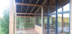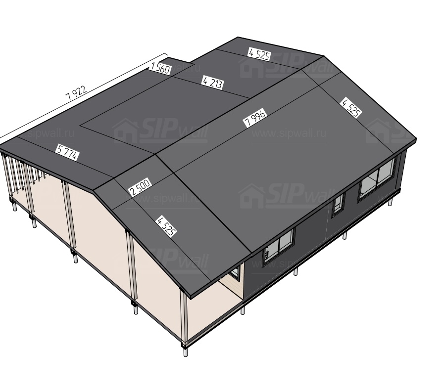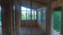 Домокомплект - изготовлен по проекту из СИП панелей произведенный по технологии SIPwall (ЭКОПАН) на собственном заводе расположенном в г. Шуя, Ивановской области. При изготовлении домокомплекта панельно каркасного дома используется только сухой строганный брус камерной сушки, обработанный огнебиозащитным составом.