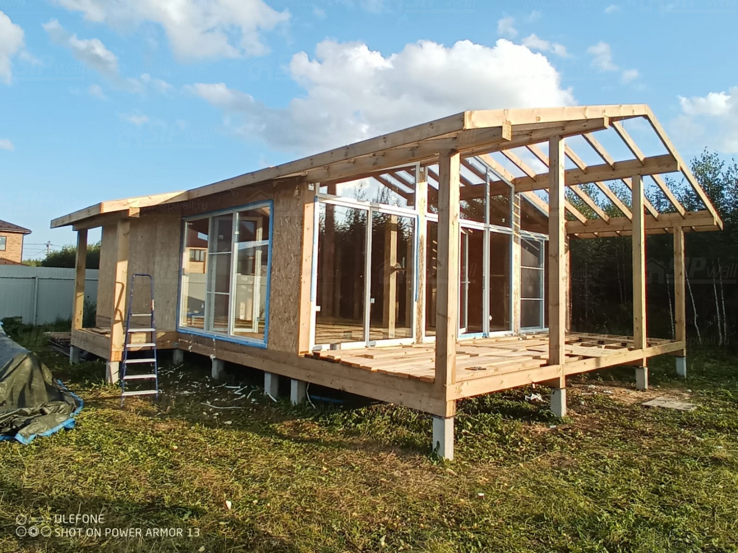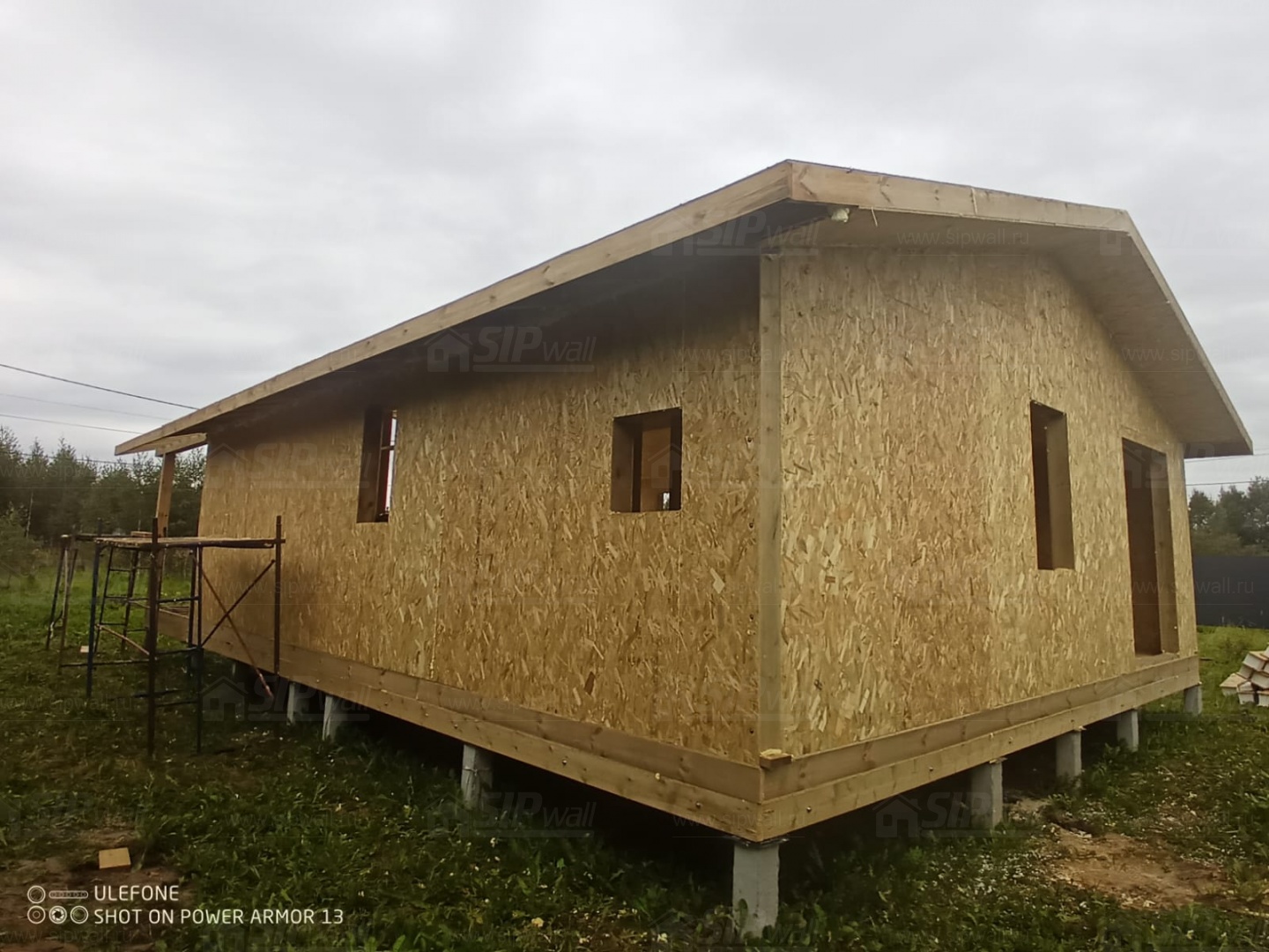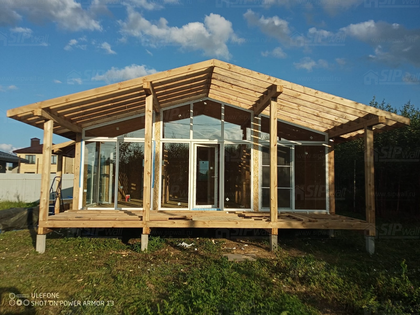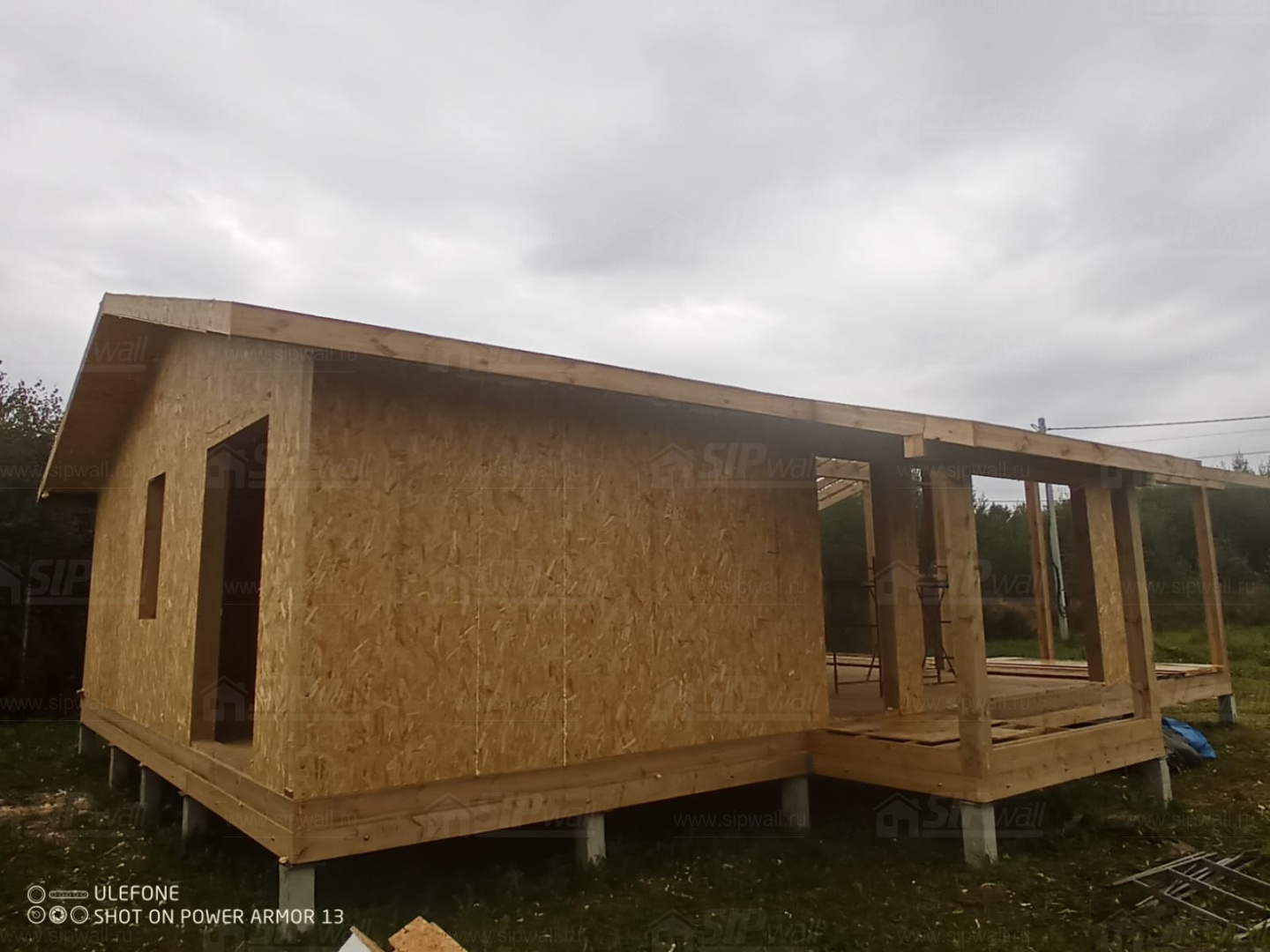 Сборка домокомплекта: Монтаж стен и перекрытий из СИП панелей, обеспечивающих высокую энергоэффективность и долговечность конструкции.
