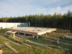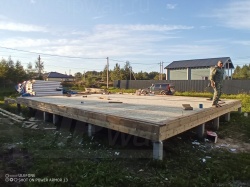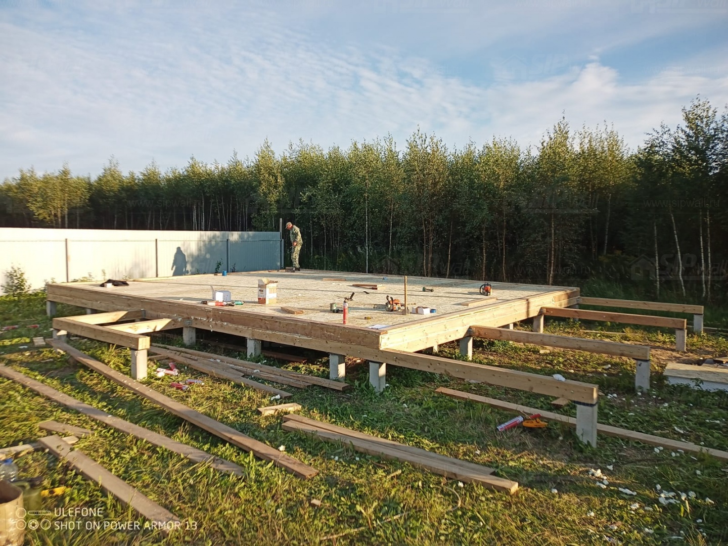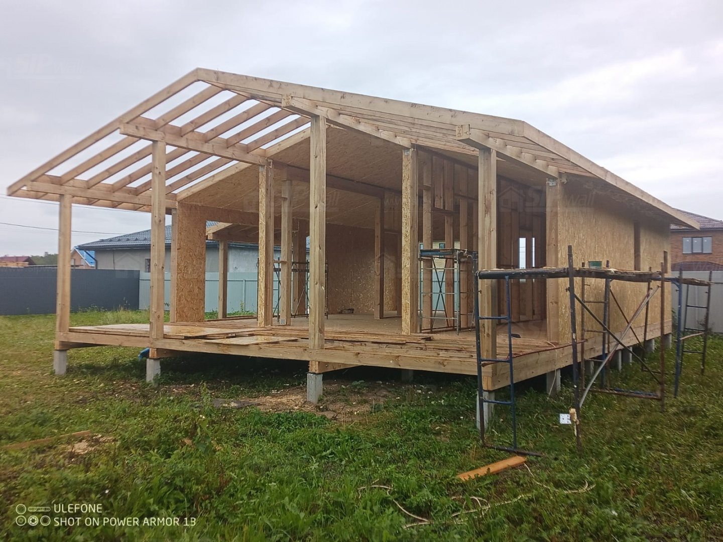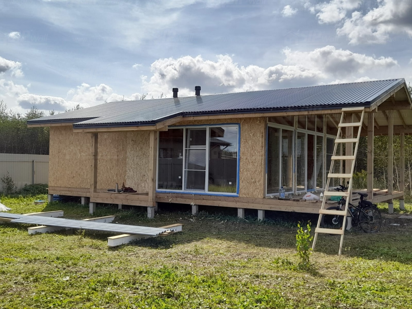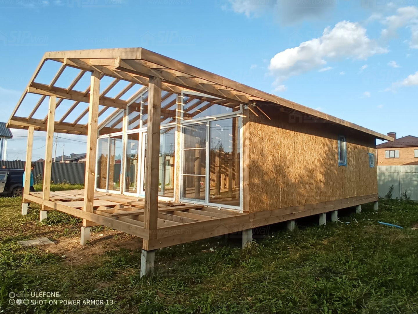 Сборка домокомплекта: Монтаж стен и перекрытий из СИП панелей, обеспечивающих высокую энергоэффективность и долговечность конструкции.