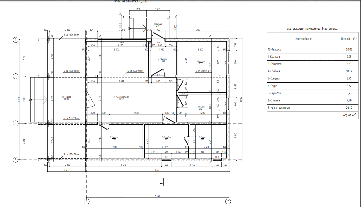 Проект этого дома включает просторную кухню-гостиную, две спальни, санузел, сауну, душевую и уютную террасу, где будущие жильцы смогут наслаждаться отдыхом на свежем воздухе.