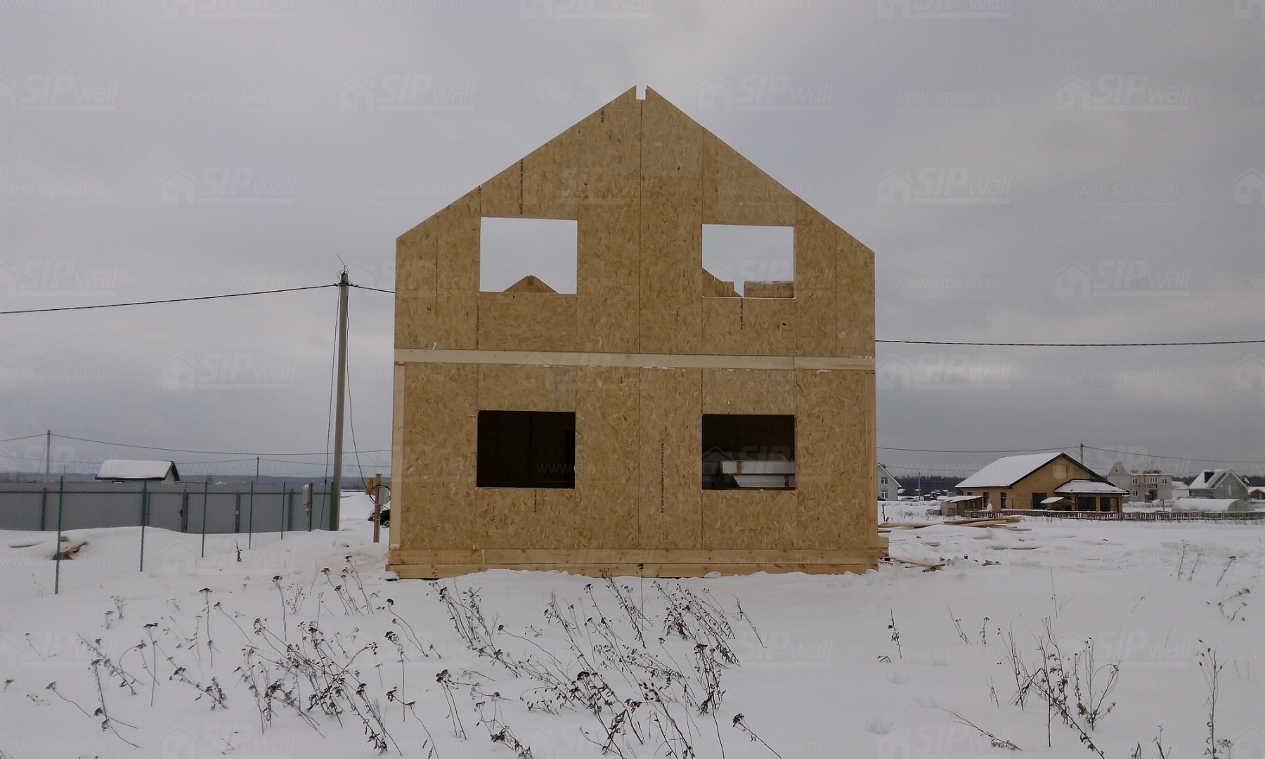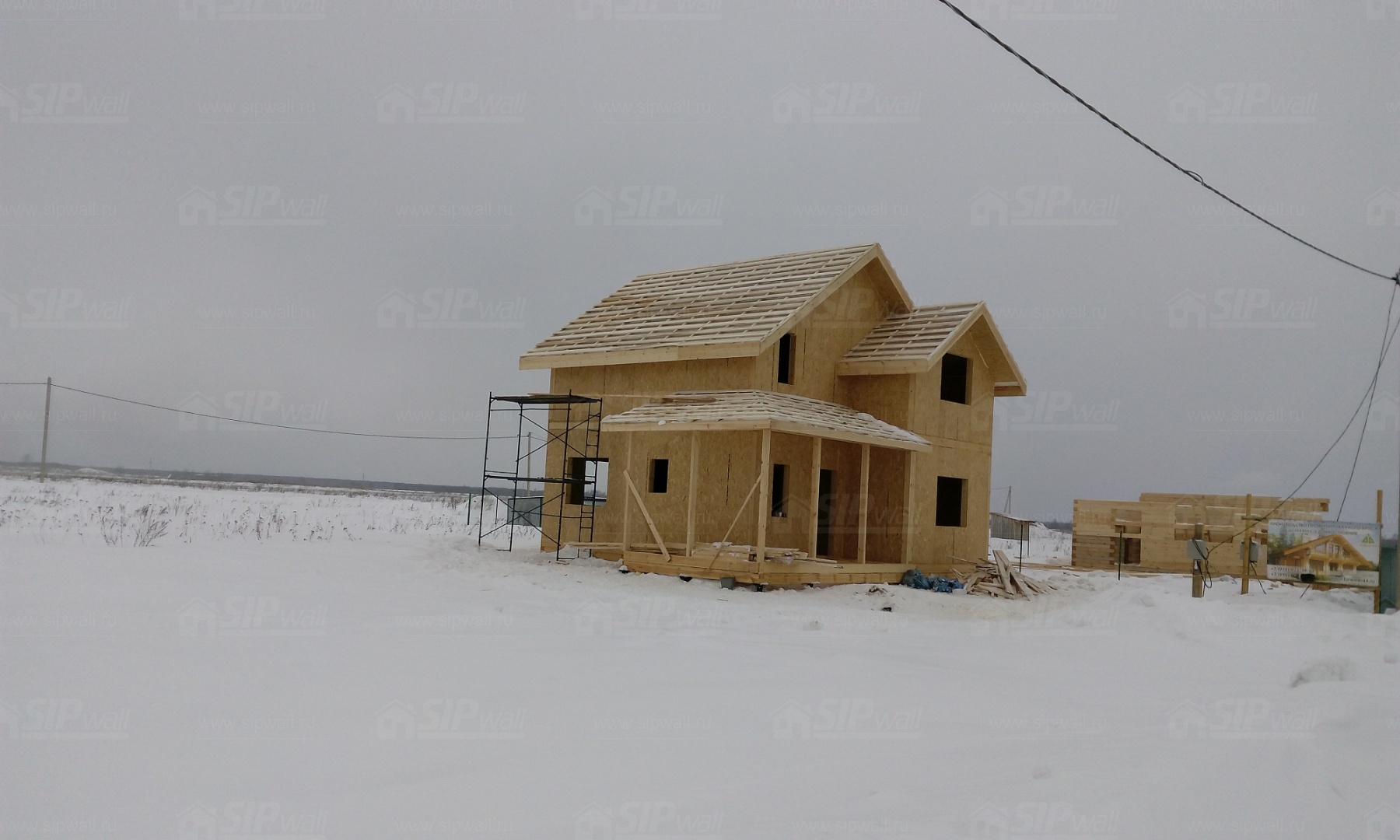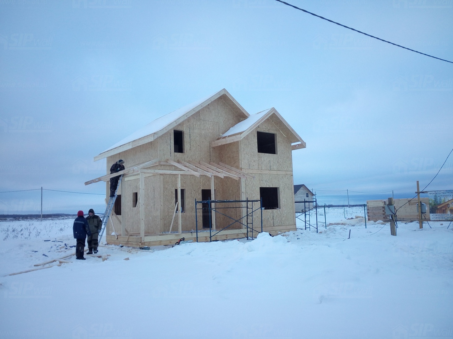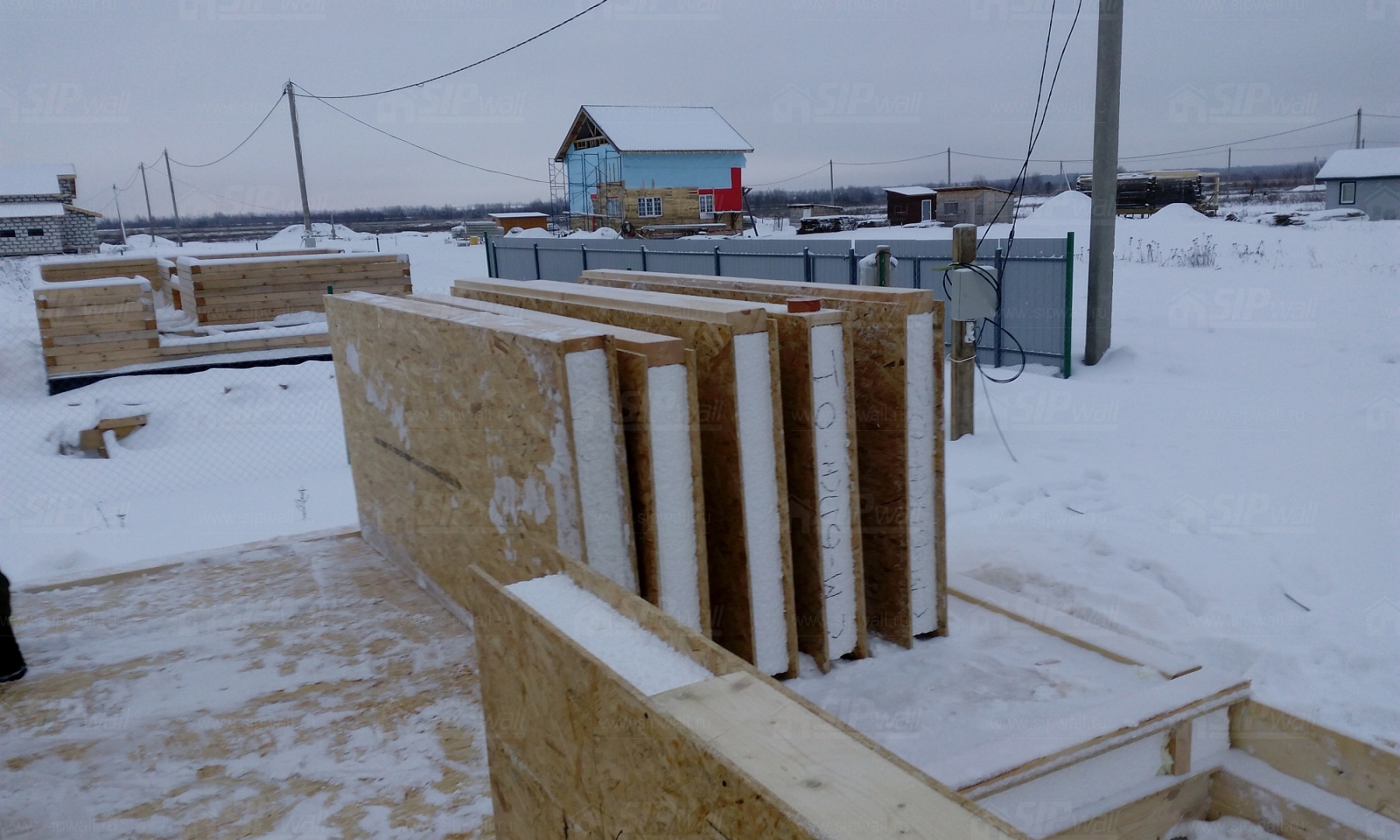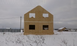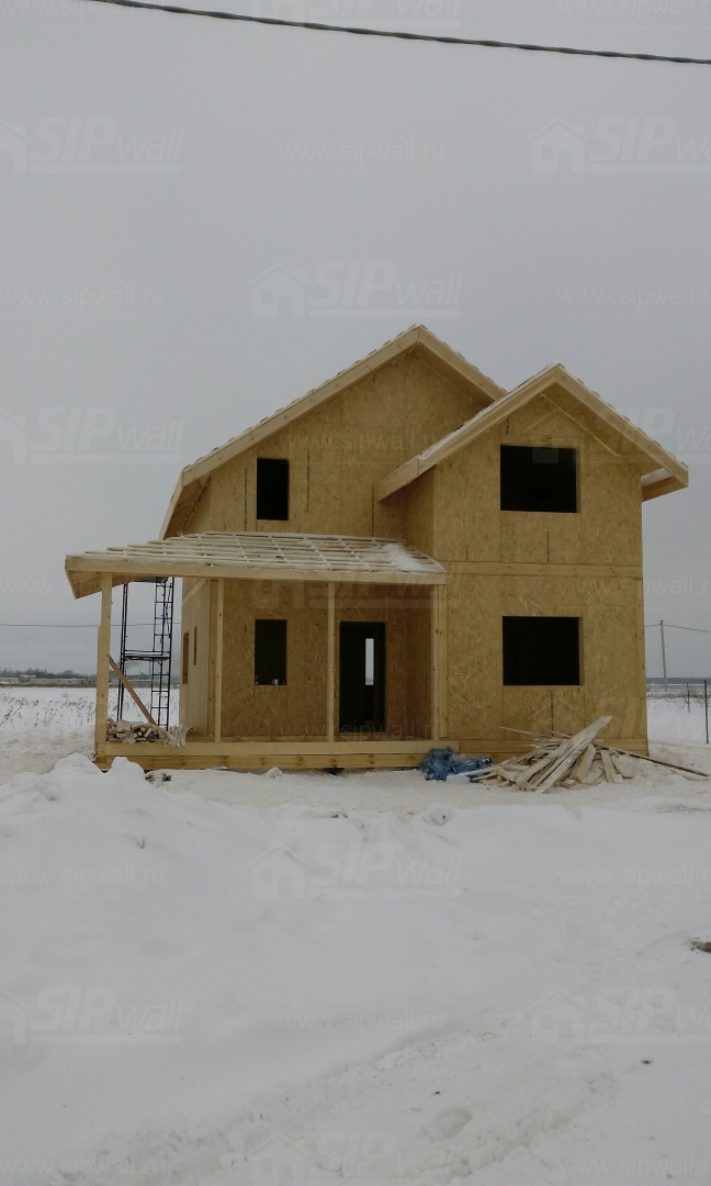 Все СИП панели SIPwall толщиной 224/174/124 мм (плиты OSB-3 толщиной 12 мм "Калевала" Россия и фасадный пенополистирол ПСБ-С 25 по ГОСТ 15588-14 толщиной 200/150/100 мм производства завода "PolarPlast", Россия) нарезаны и обрусованы сухим строганным брусом в соответствии с проектной документацией.