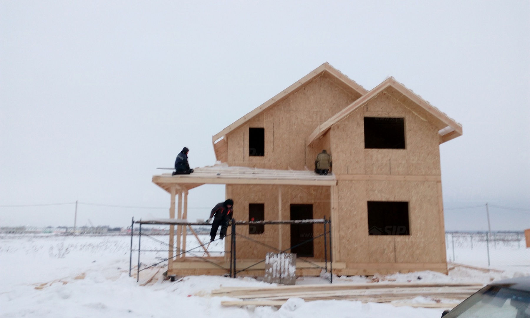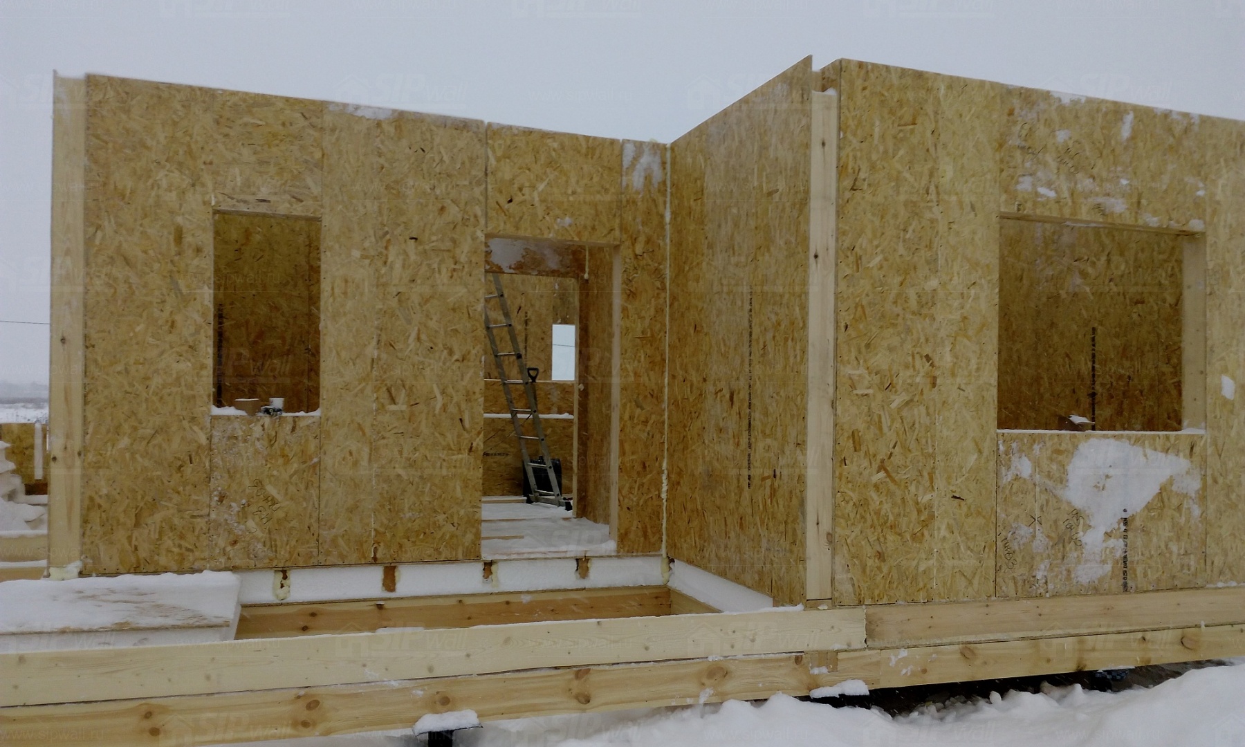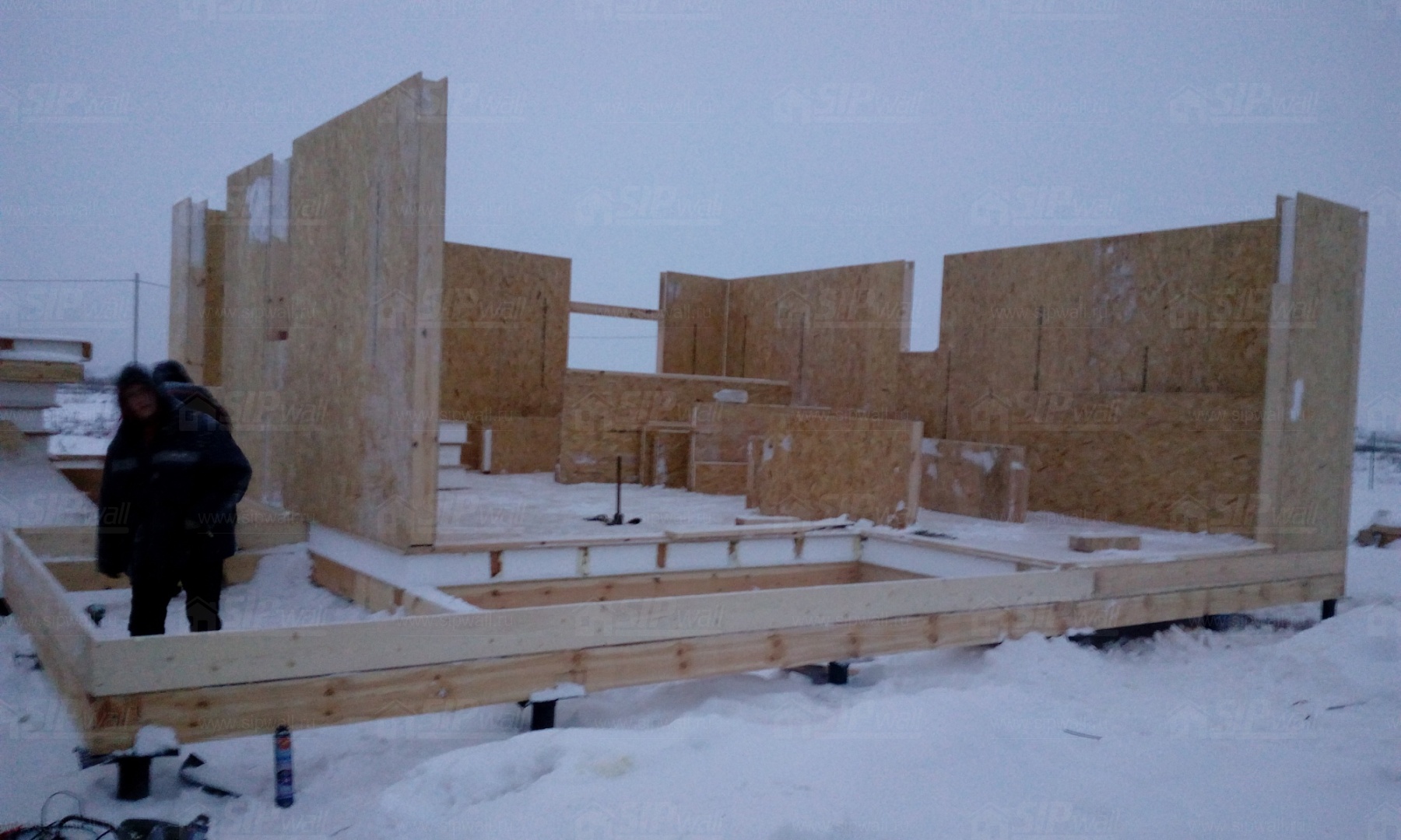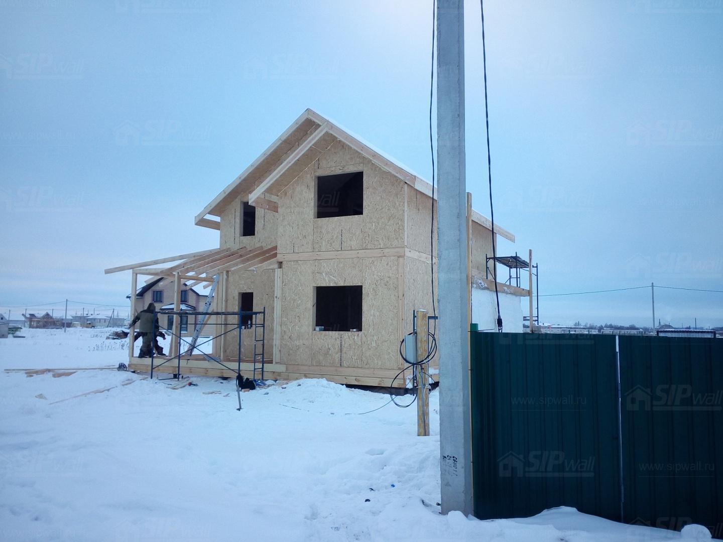 Все СИП панели SIPwall толщиной 224/174/124 мм (плиты OSB-3 толщиной 12 мм "Калевала" Россия и фасадный пенополистирол ПСБ-С 25 по ГОСТ 15588-14 толщиной 200/150/100 мм производства завода "PolarPlast", Россия) нарезаны и обрусованы сухим строганным брусом в соответствии с проектной документацией.