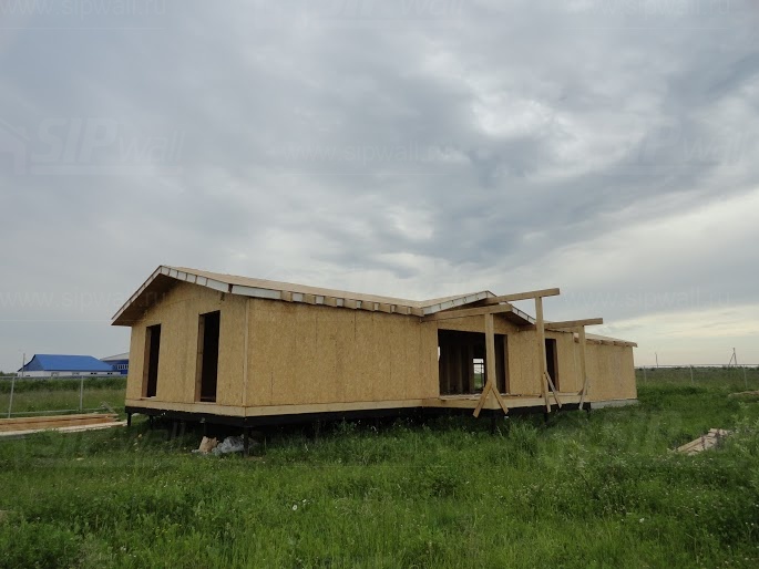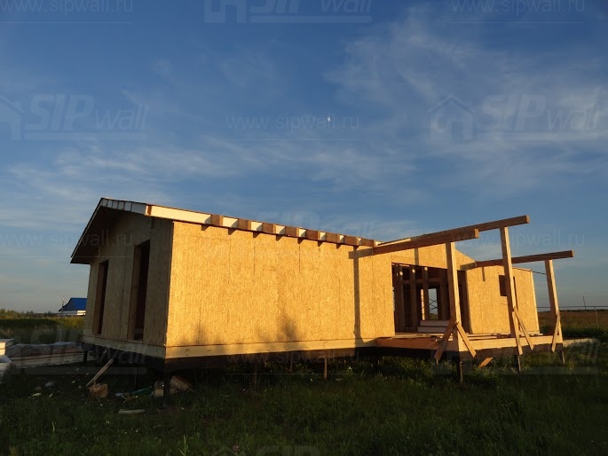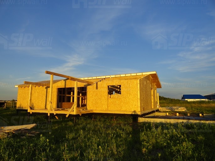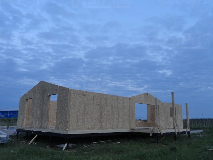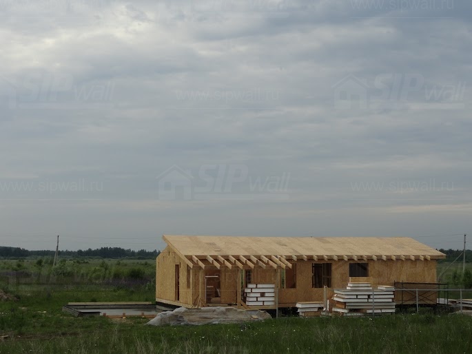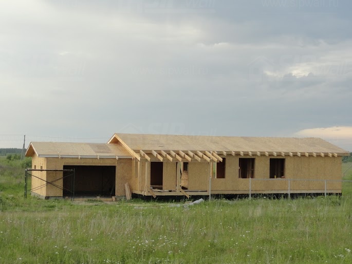 Комплектация домокомплекта: нулевое перекрытие -выполнены из СИП панелей 174 мм, несущие стены дома выполнены из СИП панелей 174 мм., внутренние несущие стены и внутренние не несущие перегородки - в каркасном исполнении. Кровля - из СИП панелей - 174 мм производства компании СИПВОЛЛ.