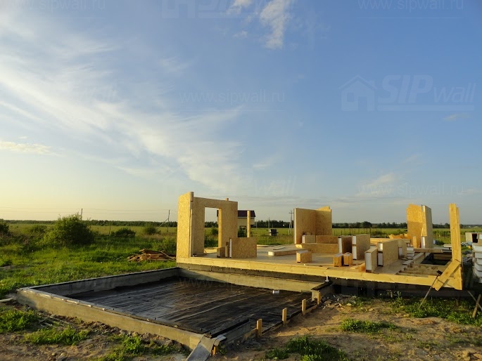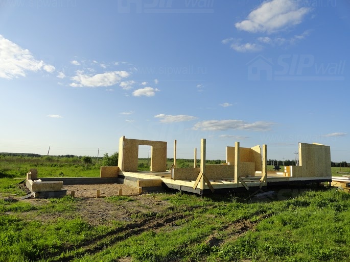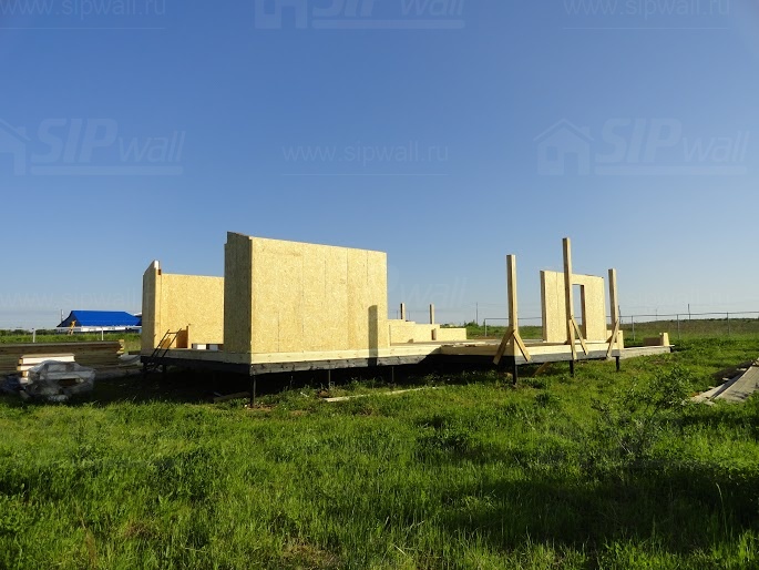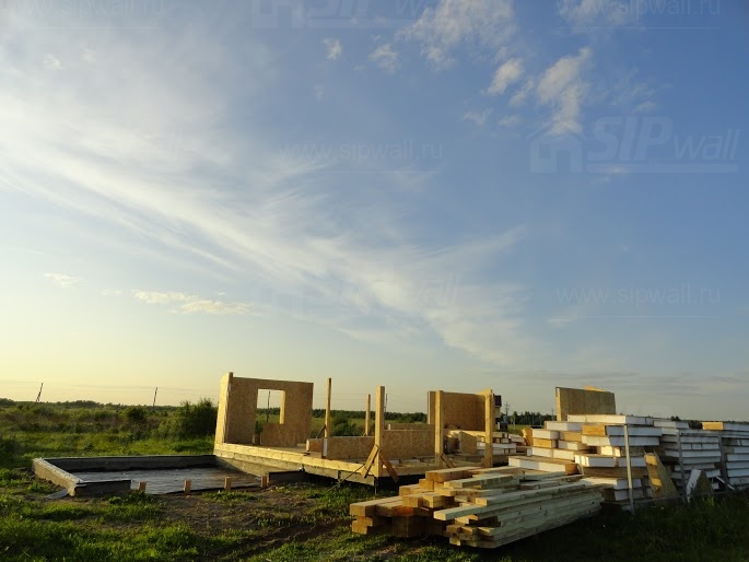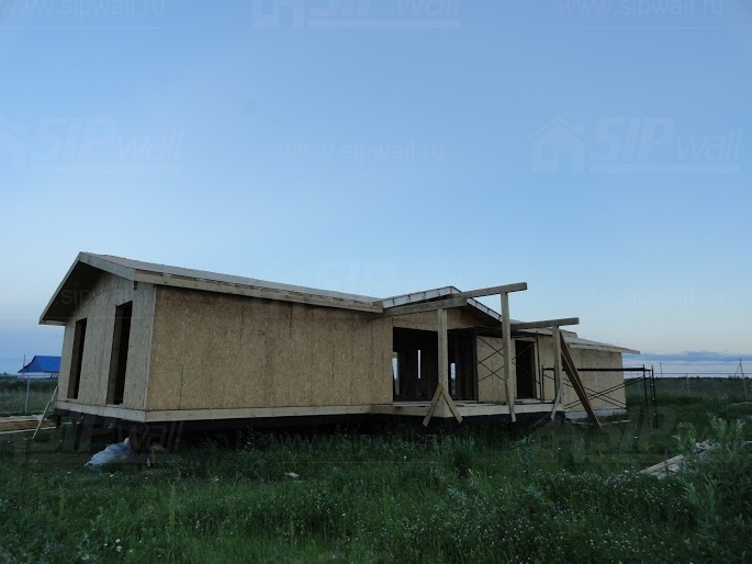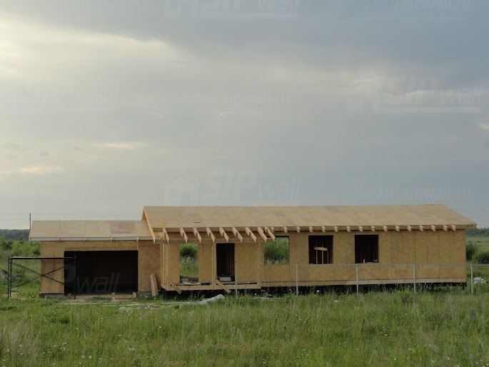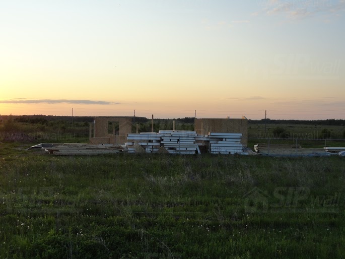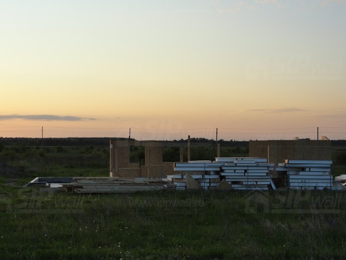 Все СИП панели SIPwall толщиной 224/174/124 мм (плиты OSB-3 толщиной 12 мм "Калевала" Россия и фасадный пенополистирол ПСБ-С 25 по ГОСТ 15588-14 толщиной 200/150/100 мм производства завода "PolarPlast", Россия) нарезаны и обрусованы сухим строганным брусом в соответствии с проектной документацией.