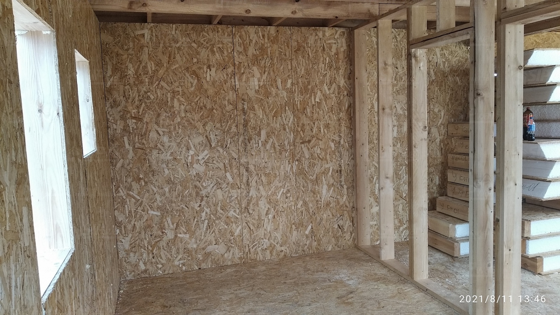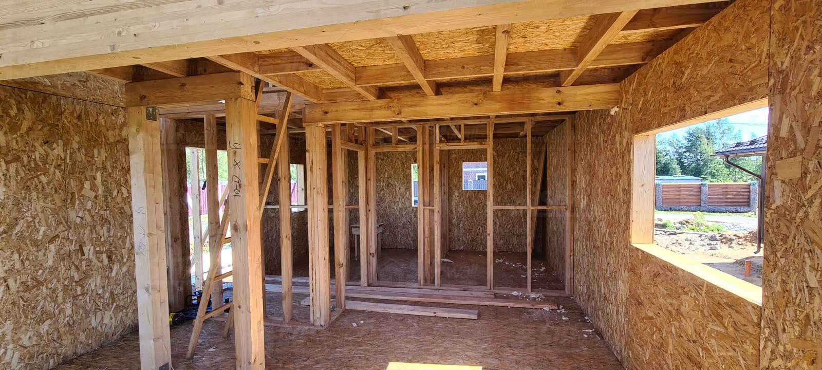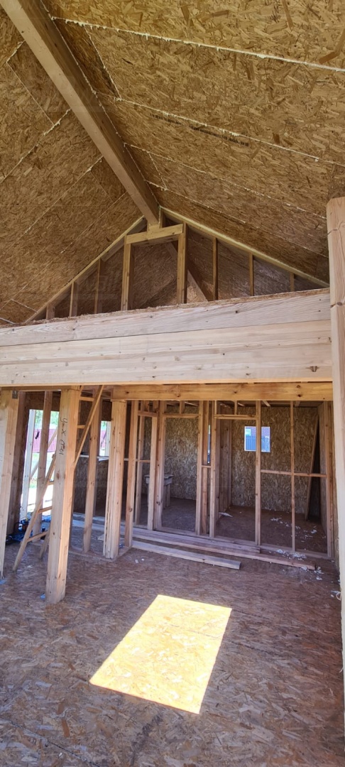 Все СИП панели SIPwall толщиной 224/174/124 мм (плиты OSB-3 толщиной 12 мм "Калевала" Россия и фасадный пенополистирол ППС-14 толщиной 200/150/100 мм производства, Россия) нарезаны и обрусованы сухим строганным брусом камерной сушки в соответствии с проектной документацией.