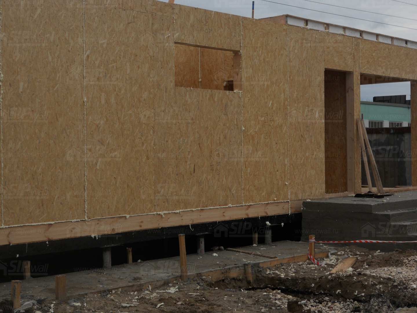Все СИП панели SIPwall толщиной 224/174/124 мм (плиты OSB-3 толщиной 12 мм "Калевала" Россия и фасадный пенополистирол ПСБ-С 25 по ГОСТ 15588-14 толщиной 200/150/100 мм производства завода "PolarPlast", Россия) нарезаны и обрусованы сухим строганным брусом в соответствии с проектной документацией.