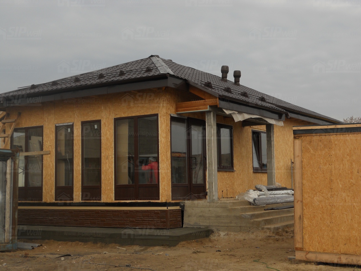 Все СИП панели домокомплекта нарезаны и обрусованы сухим строганным брусом в соответствии с проектной документацией, разработанной собственным проектным отдел компании "SIPwall".