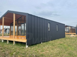 Домокомплект - изготовлен по проекту из СИП панелей произведенный по технологии SIPwall (ЭКОПАН) на собственном заводе расположенном в г. Шуя, Ивановской области. При изготовлении домокомплекта панельно каркасного дома используется только сухой строганный брус камерной сушки, обработанный огнебиозащитным составом.