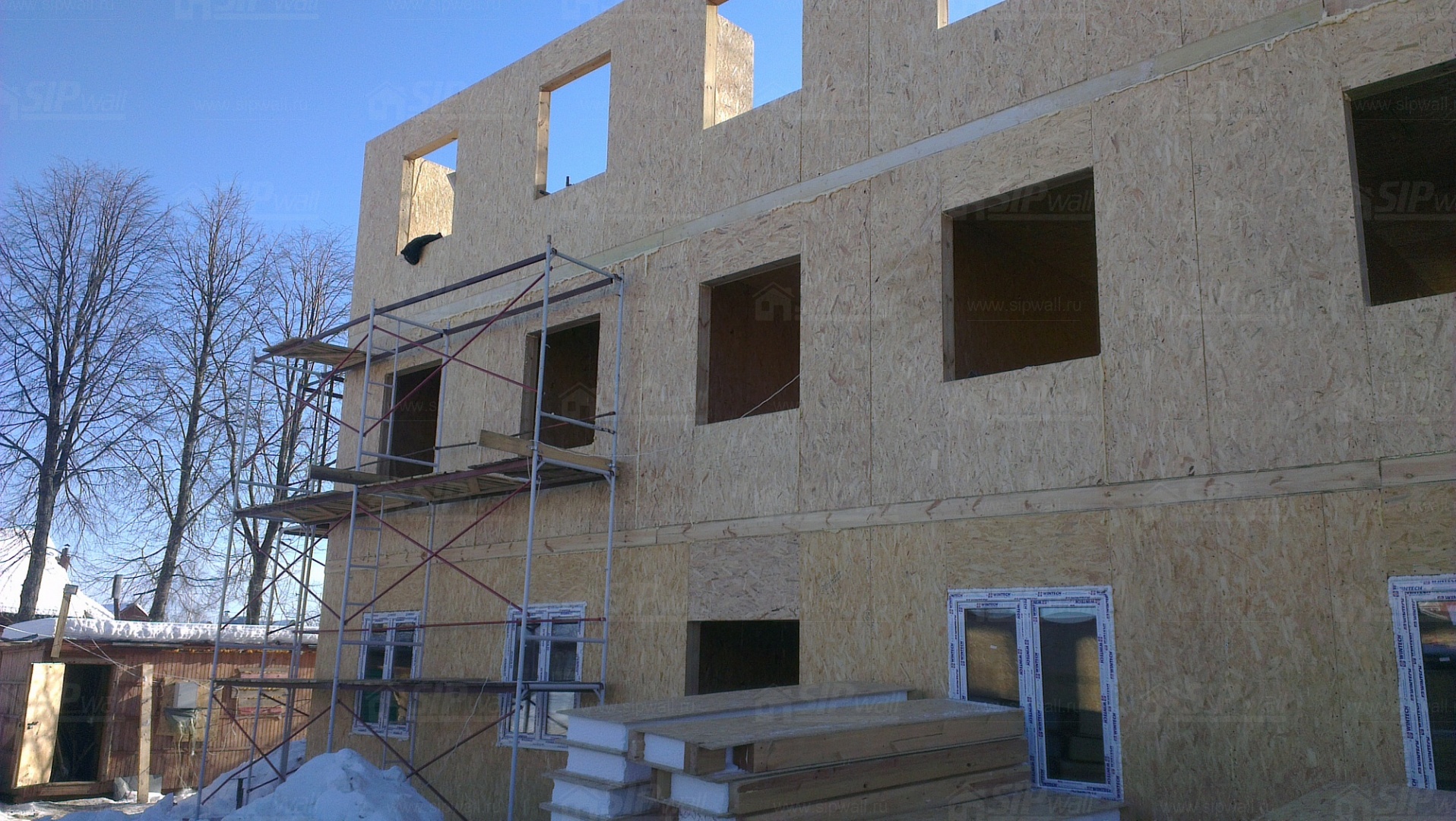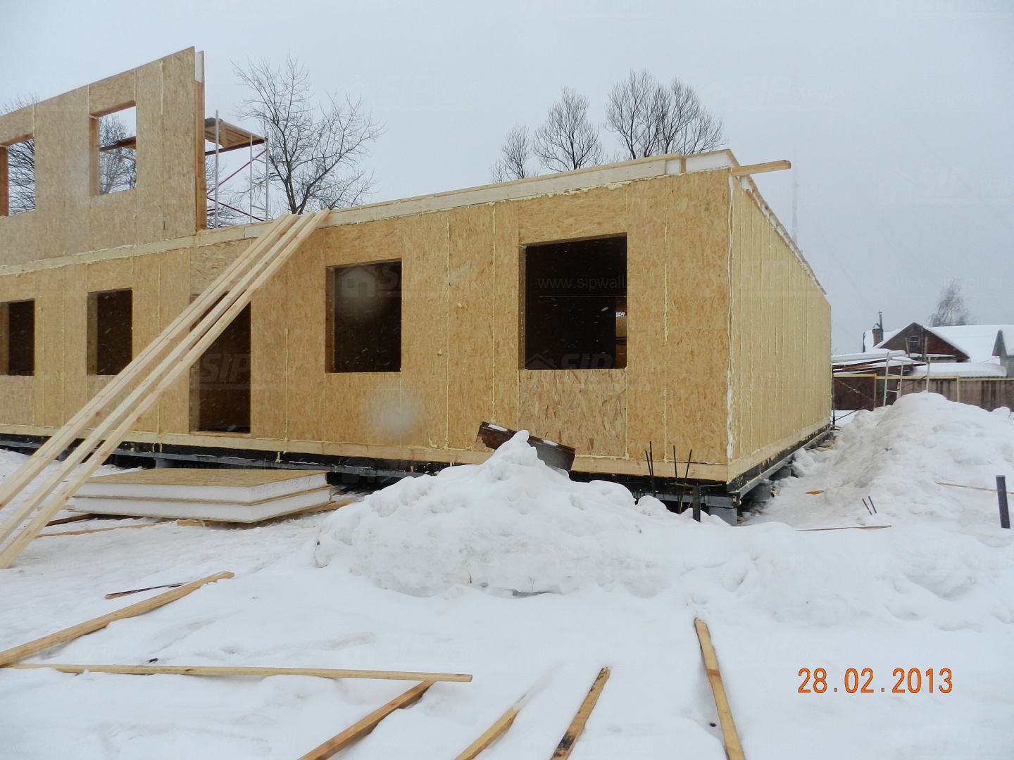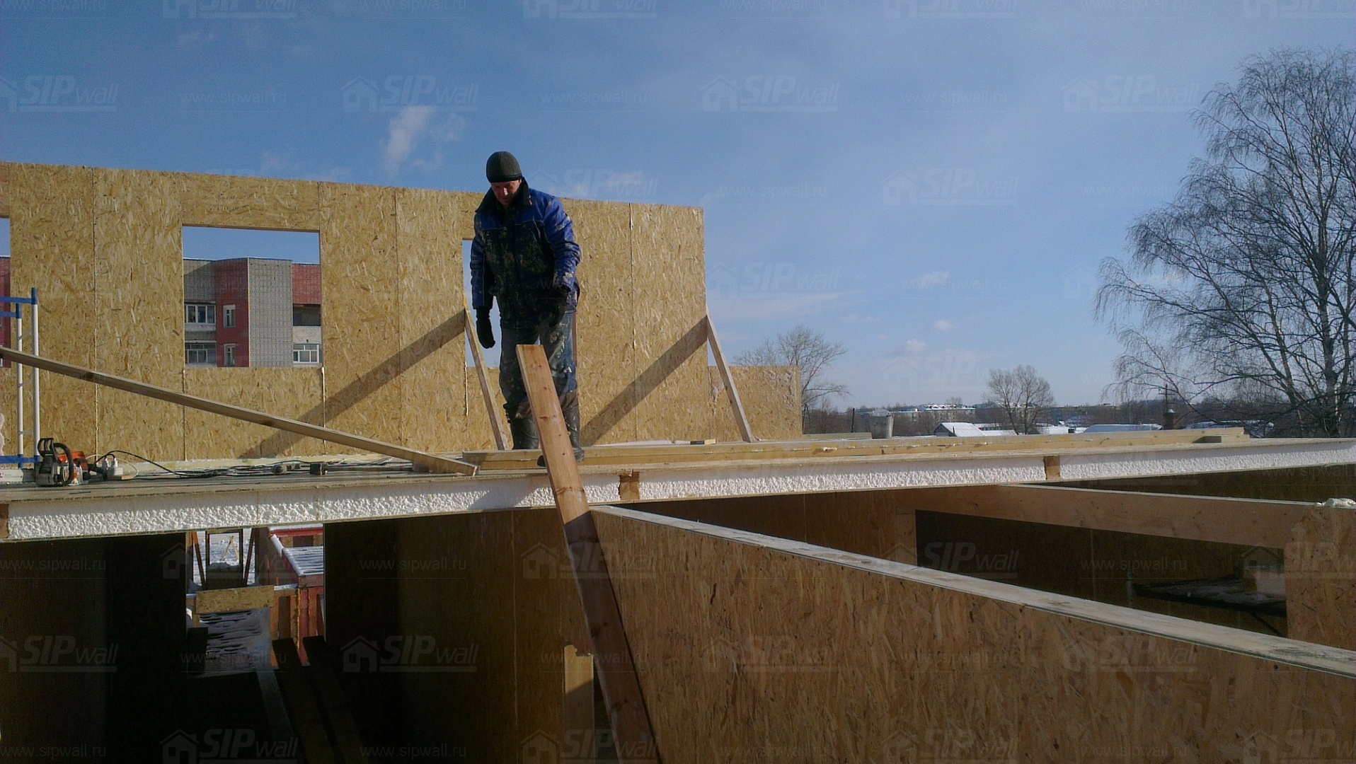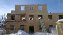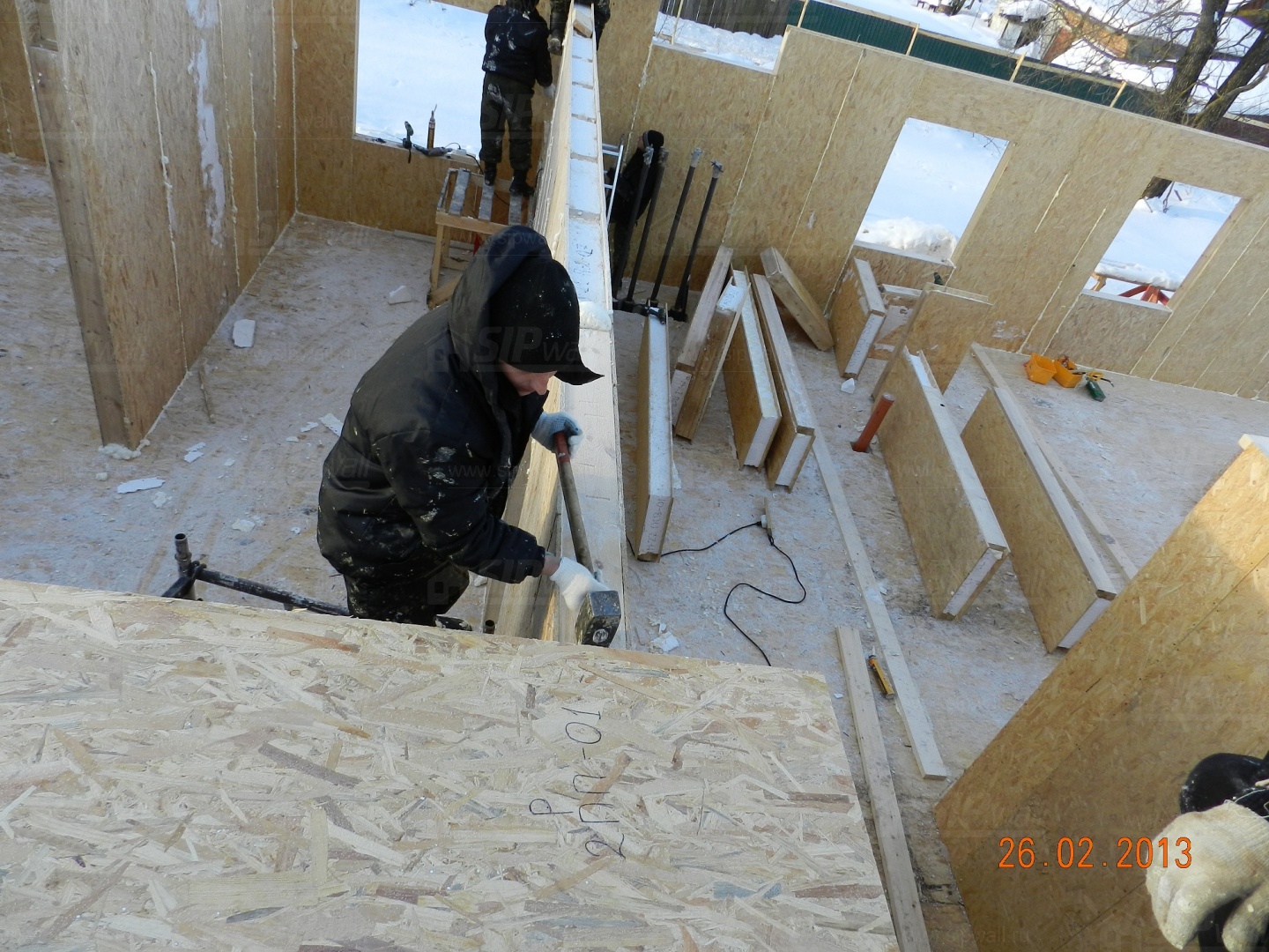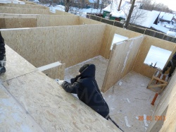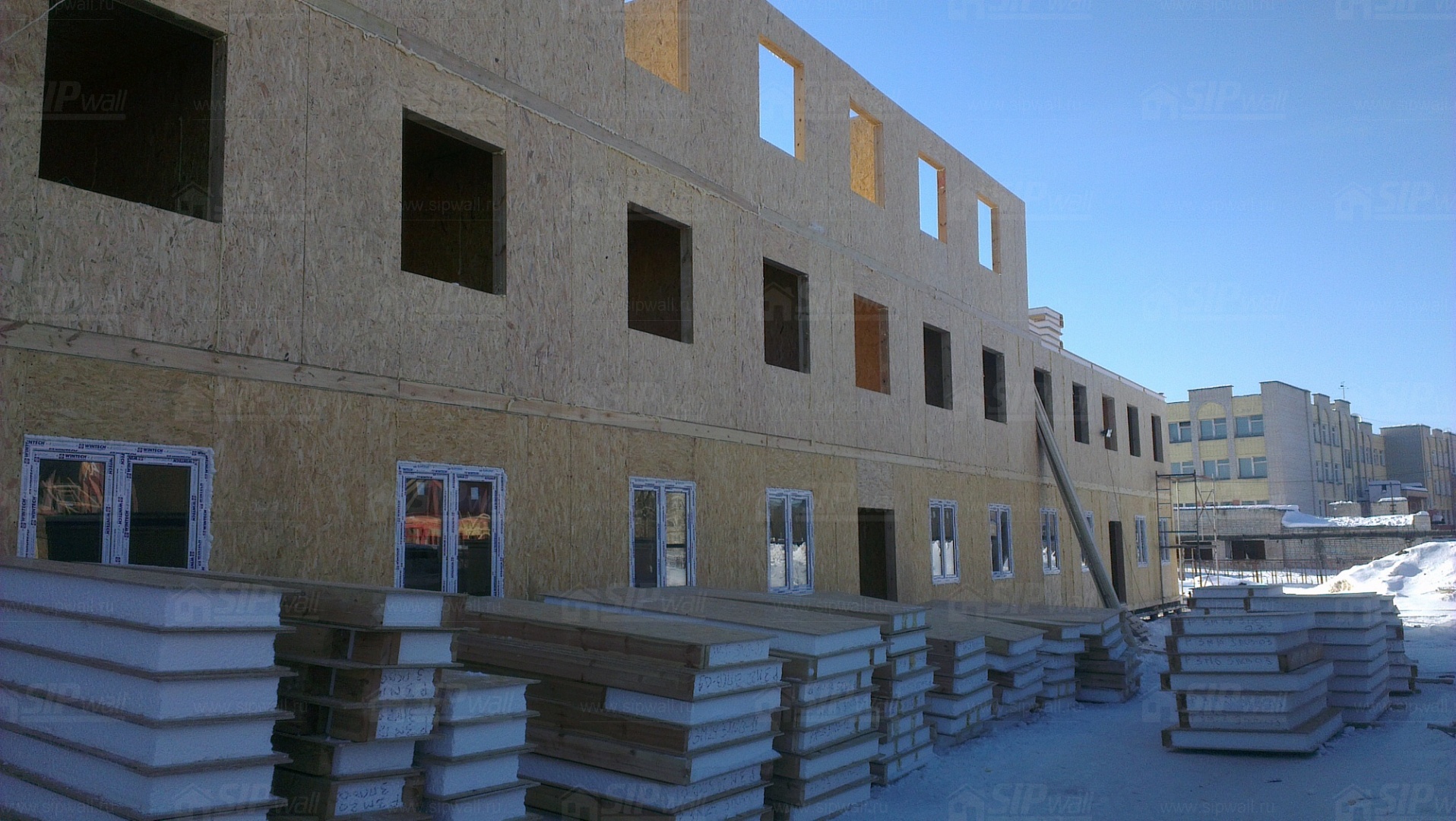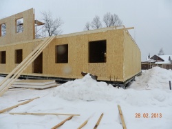 Все СИП панели SIPwall толщиной 224/174/124 мм (плиты OSB-3 толщиной 12 мм "Калевала" Россия, высшего класса экологической безопасности и фасадный пенополистирол ПСБ-С 25 высшей категории качества по ГОСТ 15588-06 толщиной 200/150/100 мм производства завода "PolarPlast" Россия) нарезаны и обрусованы сухим строганным брусом в соответствии с проектной документацией.