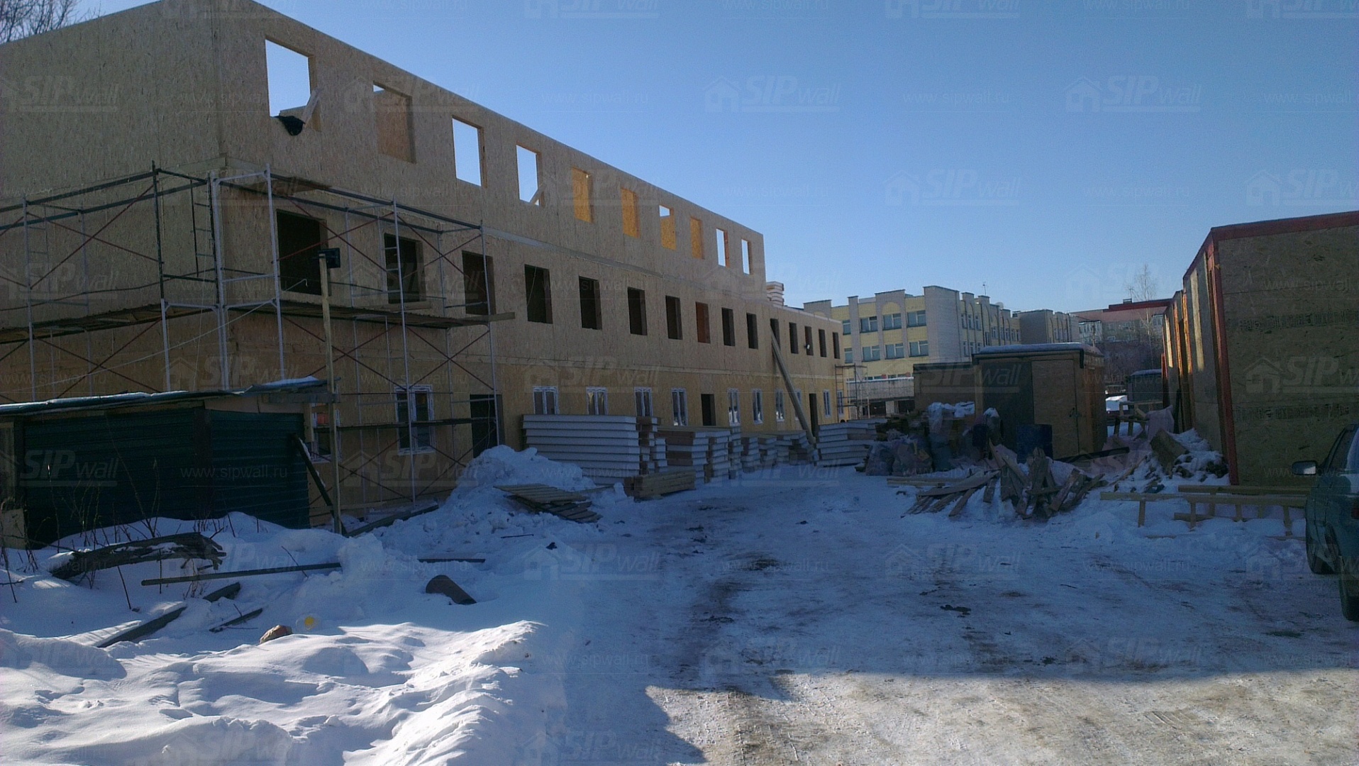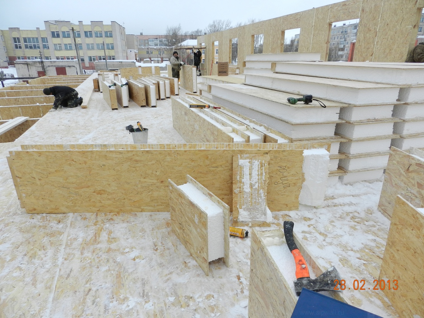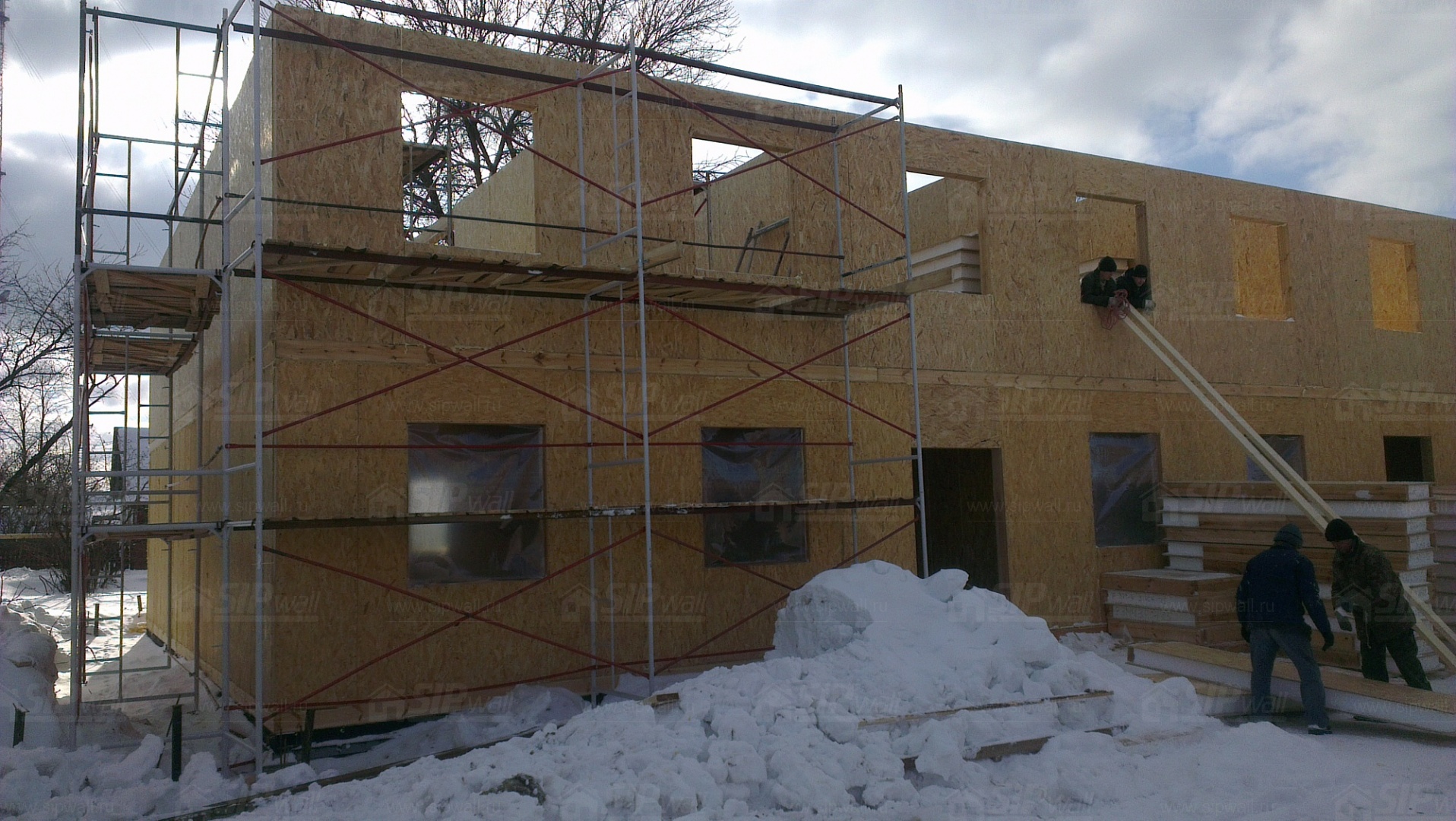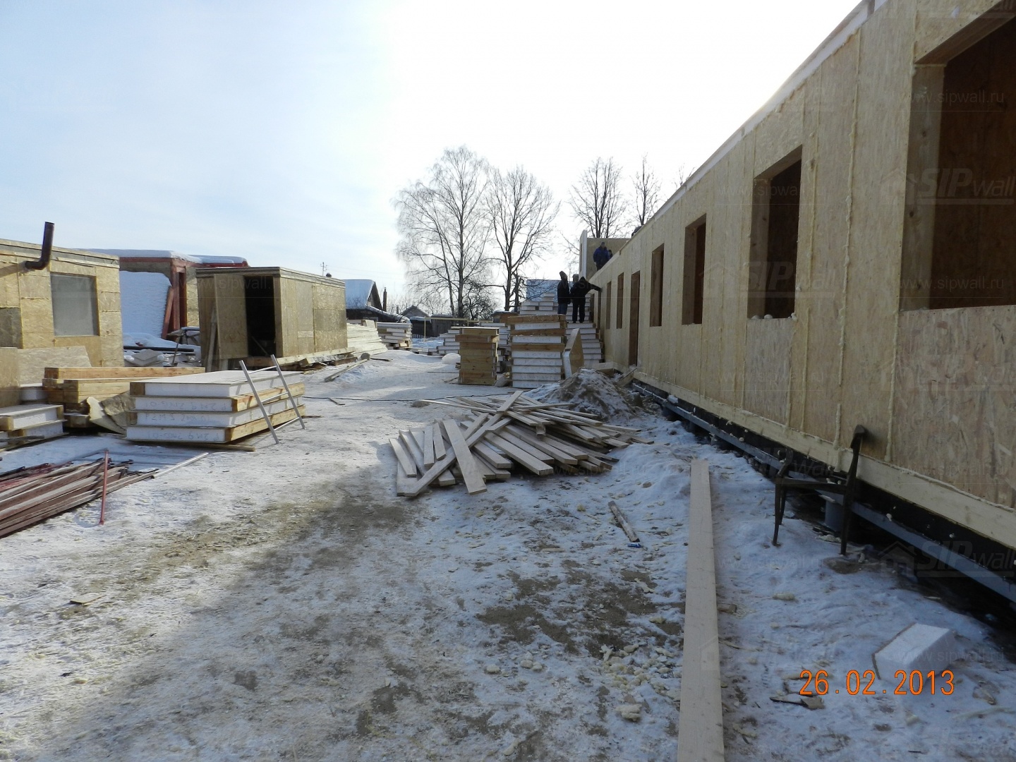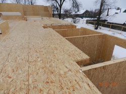 Все СИП панели SIPwall толщиной 224/174/124 мм (плиты OSB-3 толщиной 12 мм "Калевала" Россия, высшего класса экологической безопасности и фасадный пенополистирол ПСБ-С 25 высшей категории качества по ГОСТ 15588-06 толщиной 200/150/100 мм производства завода "PolarPlast" Россия) нарезаны и обрусованы сухим строганным брусом в соответствии с проектной документацией.