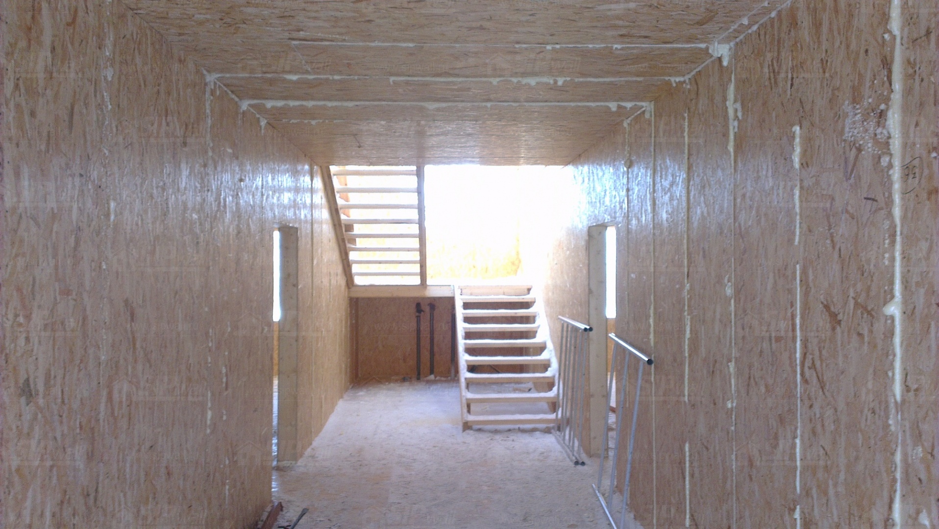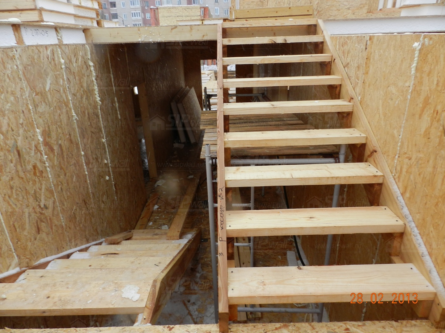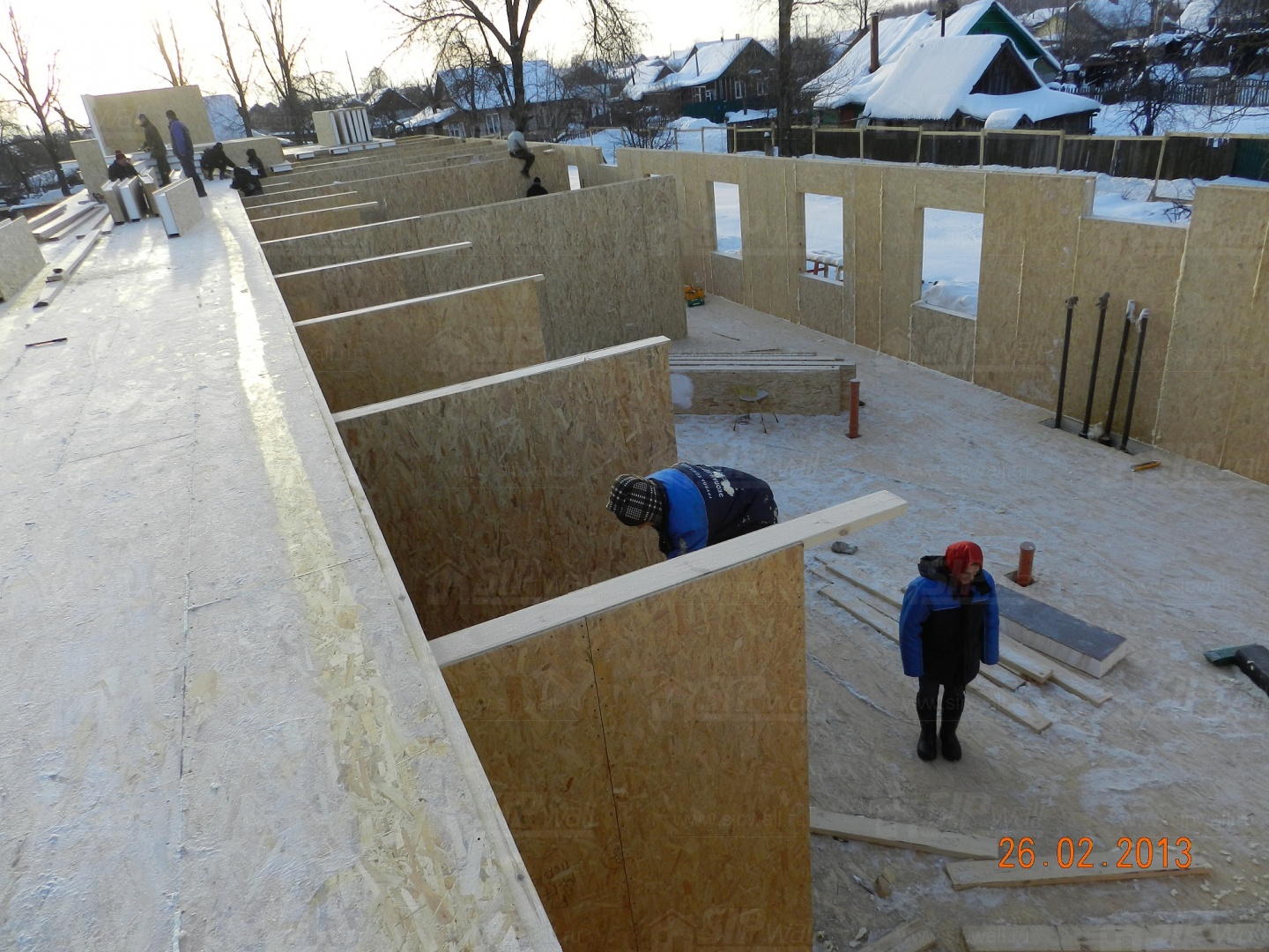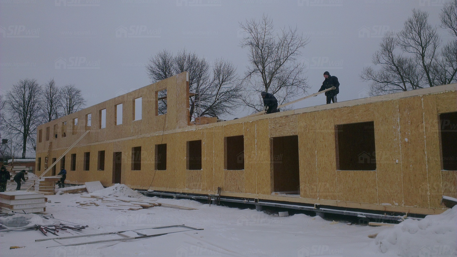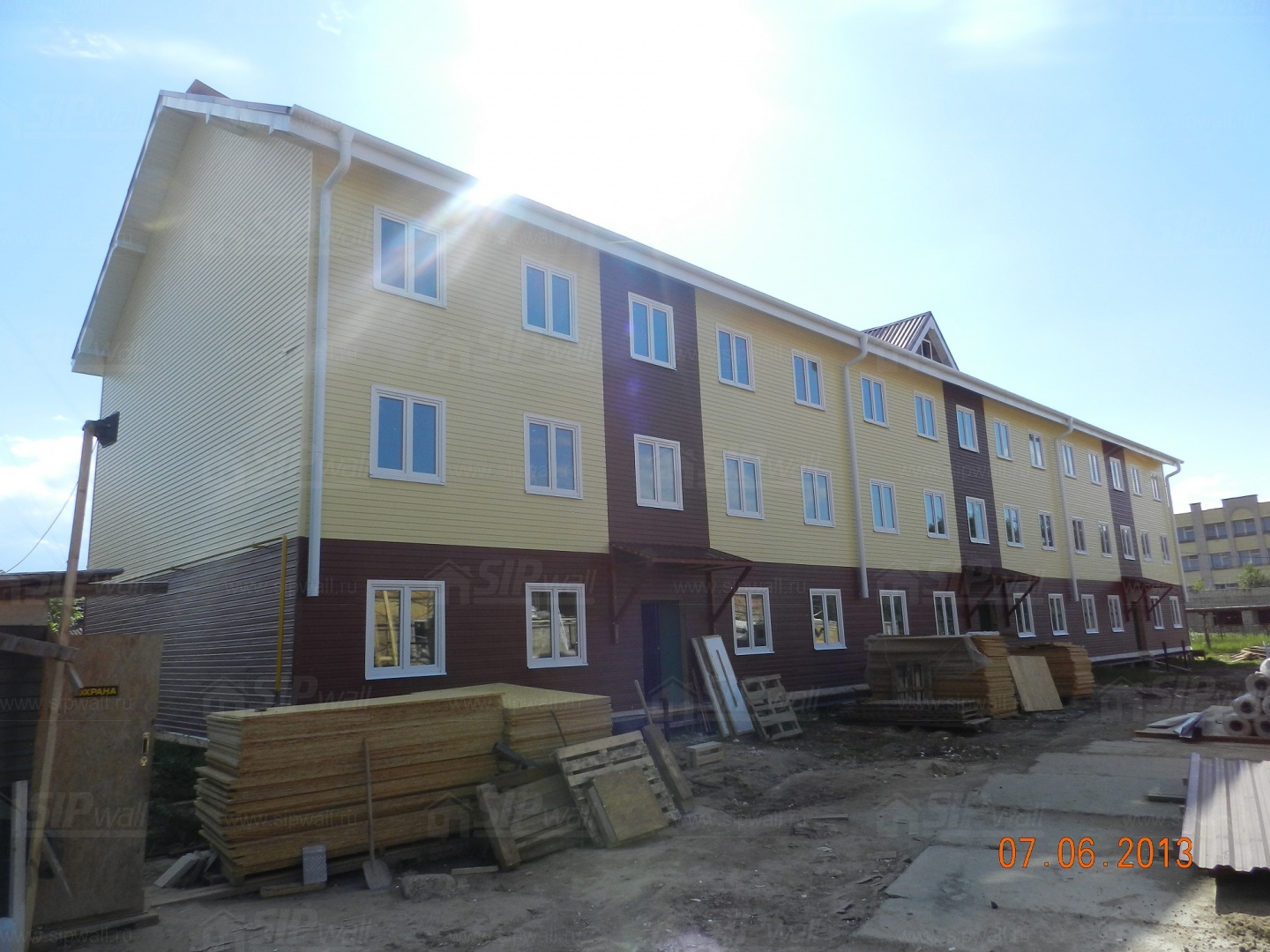 Все СИП панели SIPwall толщиной 224/174/124 мм (плиты OSB-3 толщиной 12 мм "Калевала" Россия, высшего класса экологической безопасности и фасадный пенополистирол ПСБ-С 25 высшей категории качества по ГОСТ 15588-06 толщиной 200/150/100 мм производства завода "PolarPlast" Россия) нарезаны и обрусованы сухим строганным брусом в соответствии с проектной документацией.