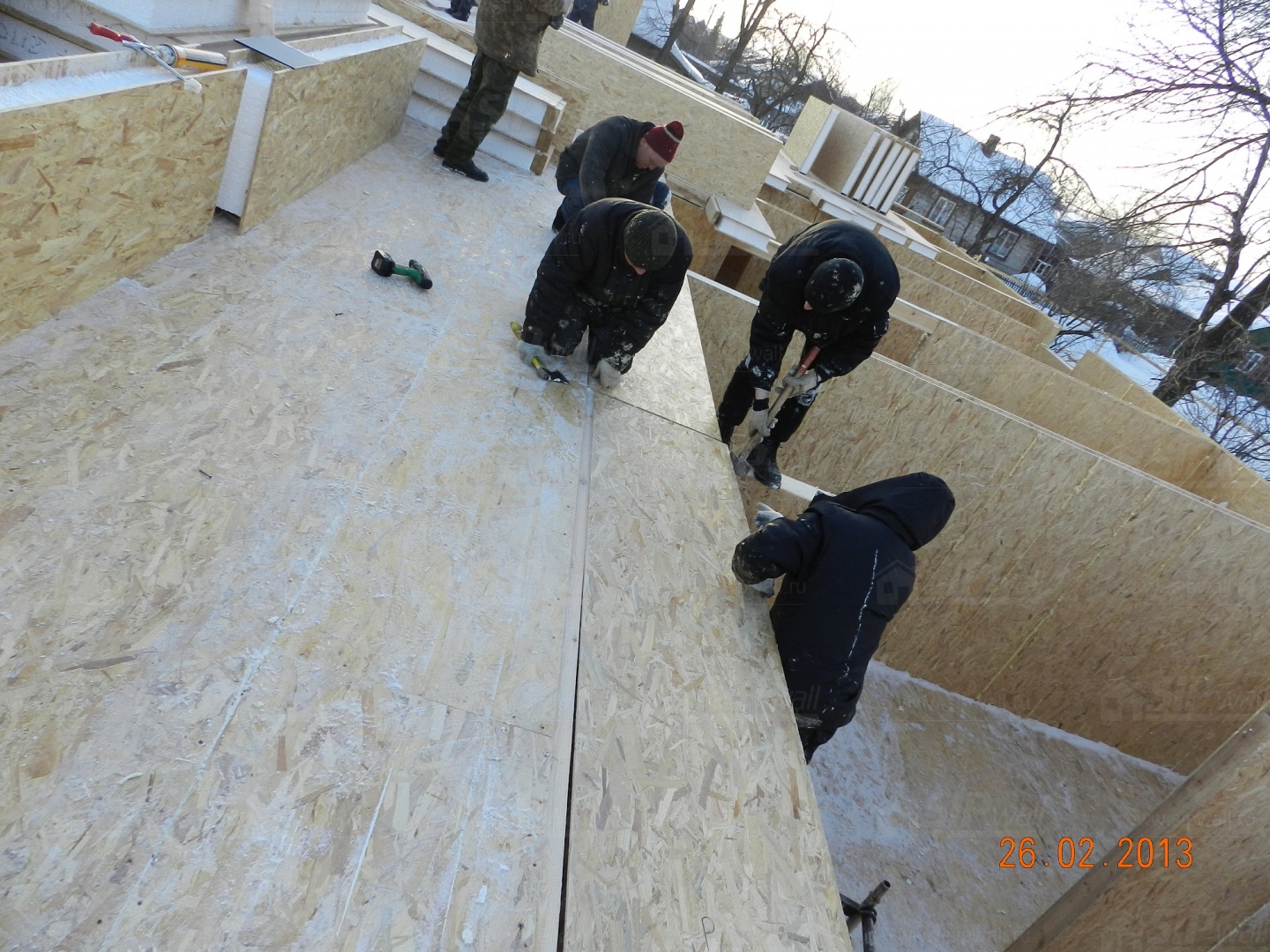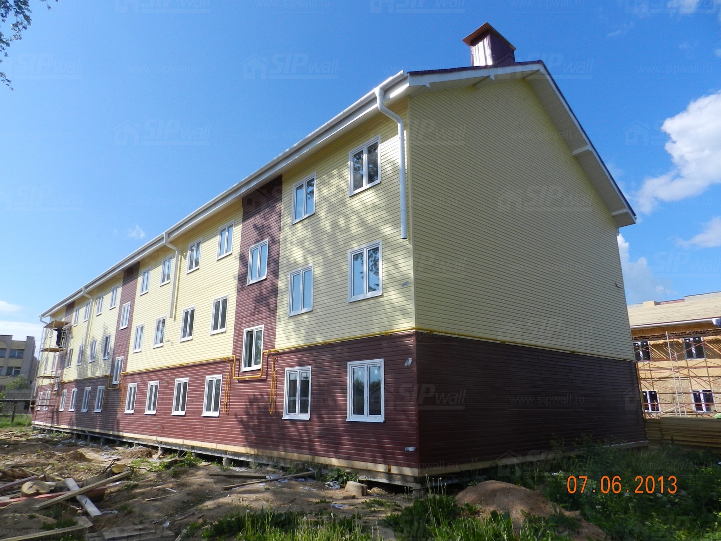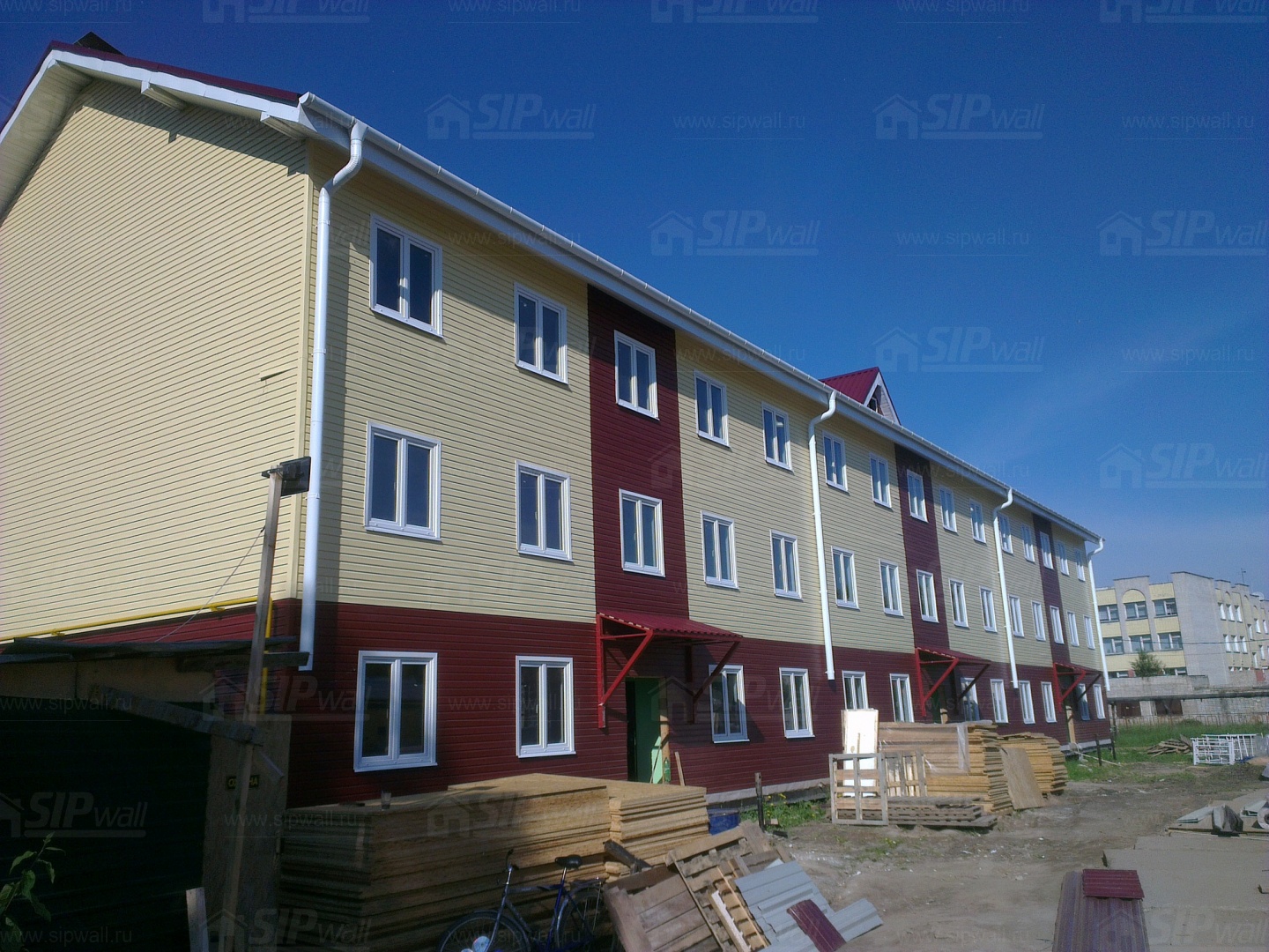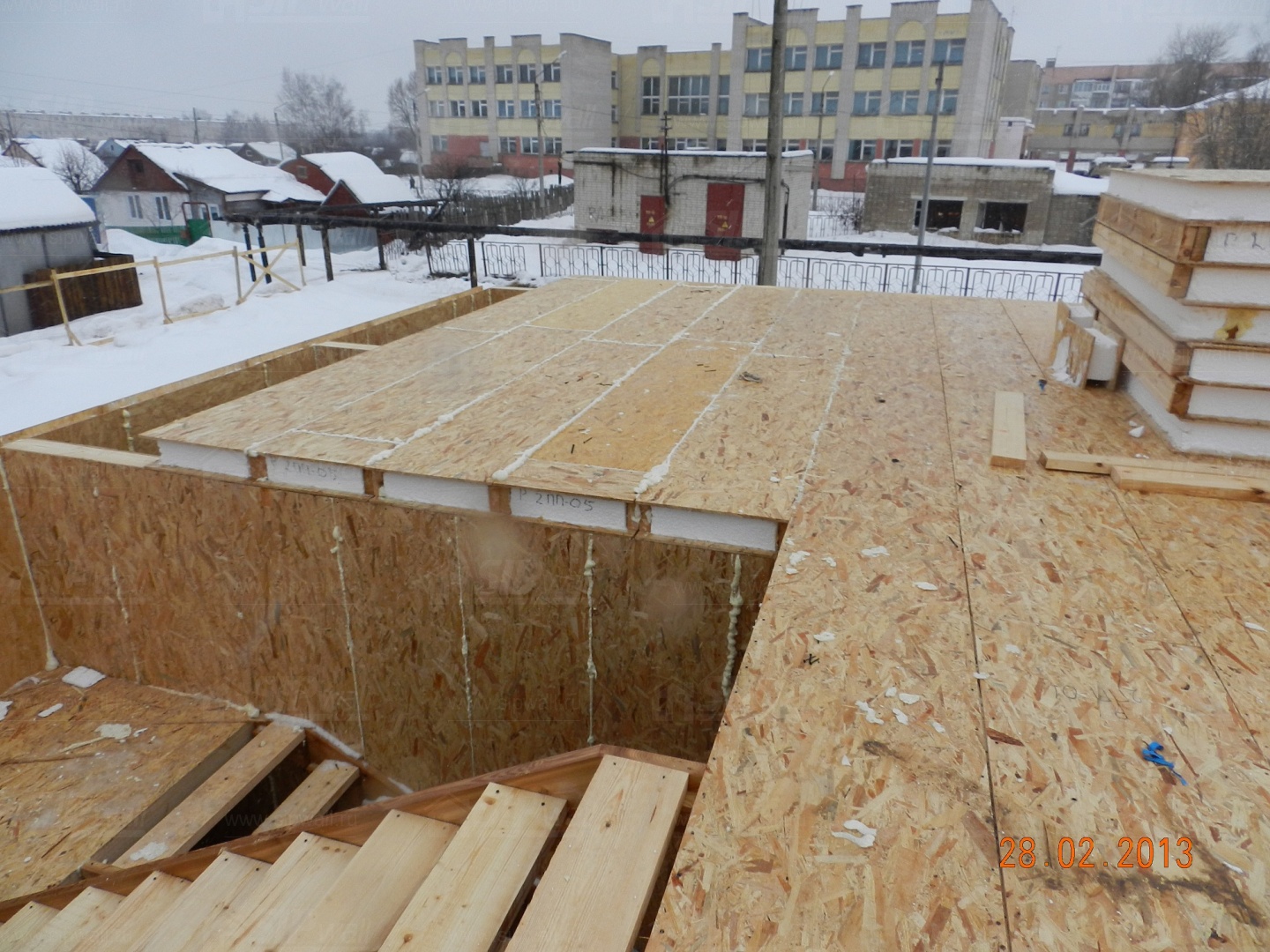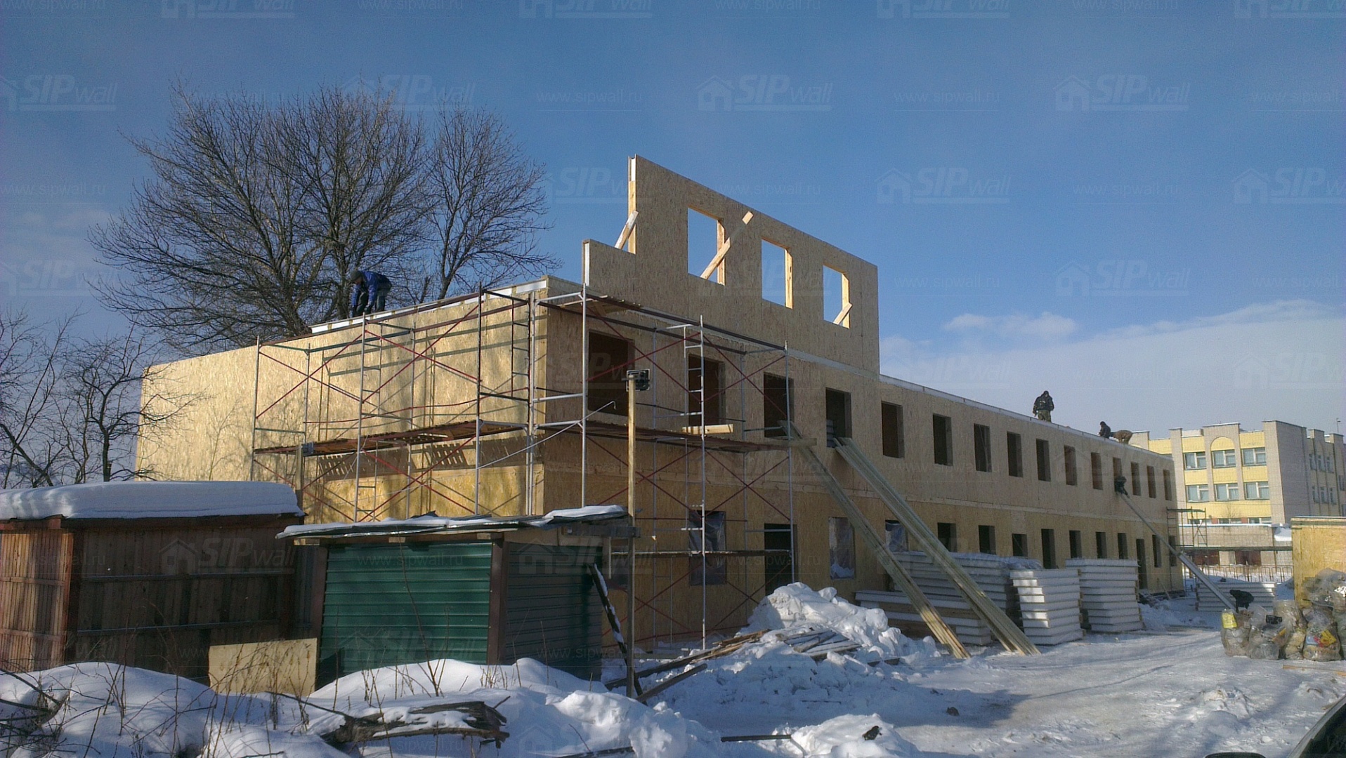 Все СИП панели SIPwall толщиной 224/174/124 мм (плиты OSB-3 толщиной 12 мм "Калевала" Россия, высшего класса экологической безопасности и фасадный пенополистирол ПСБ-С 25 высшей категории качества по ГОСТ 15588-06 толщиной 200/150/100 мм производства завода "PolarPlast" Россия) нарезаны и обрусованы сухим строганным брусом в соответствии с проектной документацией.