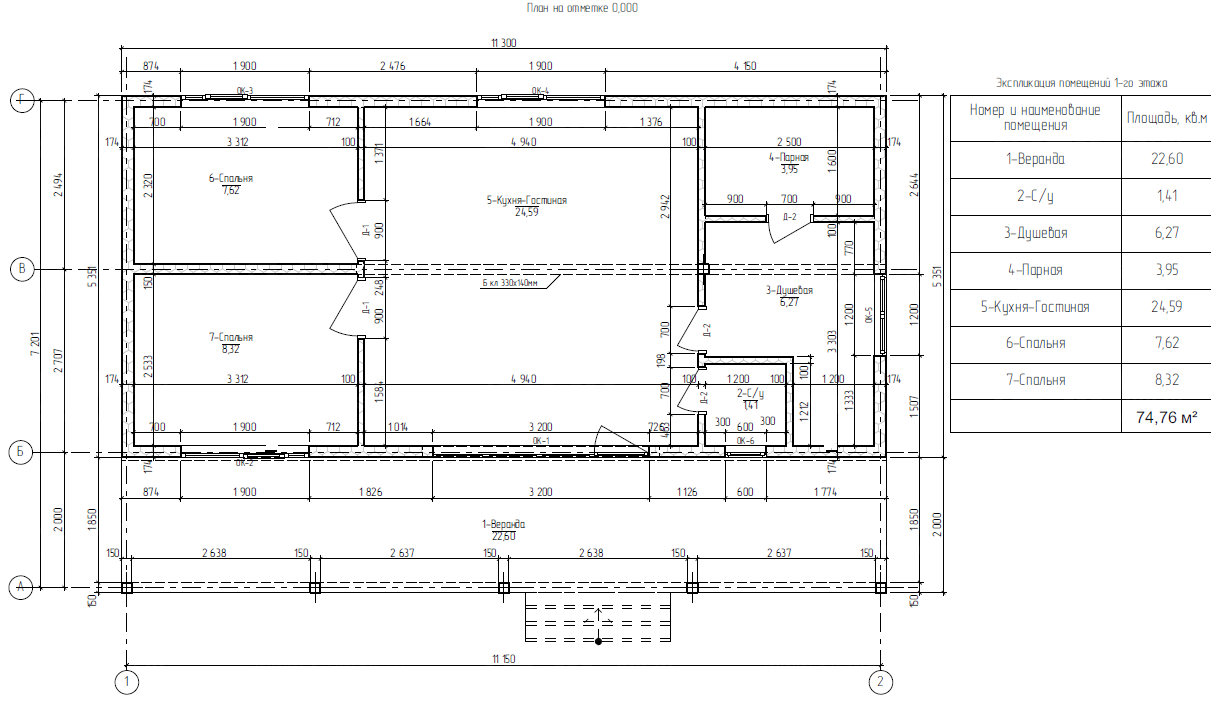 Общая площадь дома: 74,76 м²