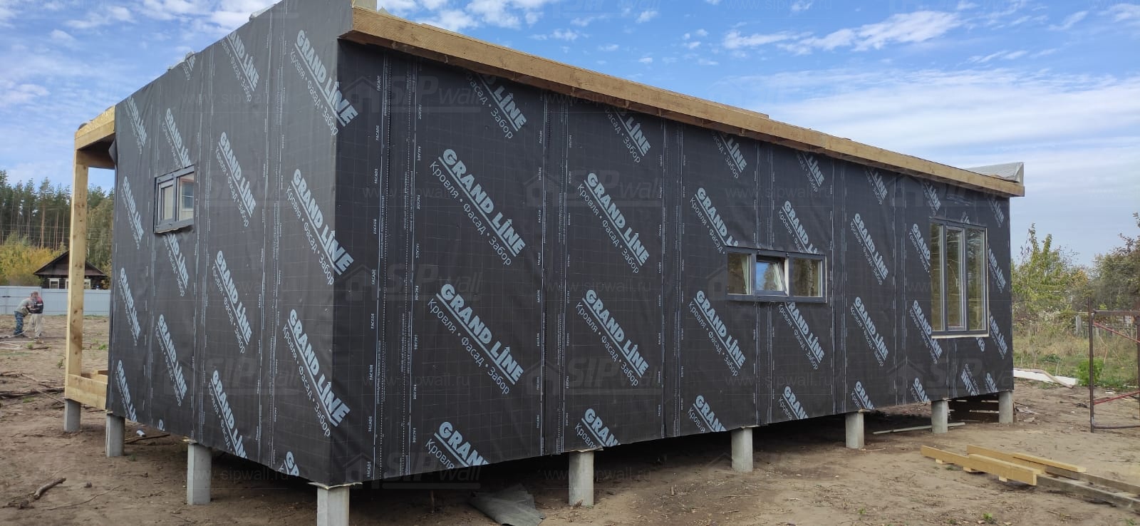 - Сборка домокомплекта: Монтаж стен и перекрытий из СИП панелей, которые обеспечат дому высокую теплоизоляцию и прочность.