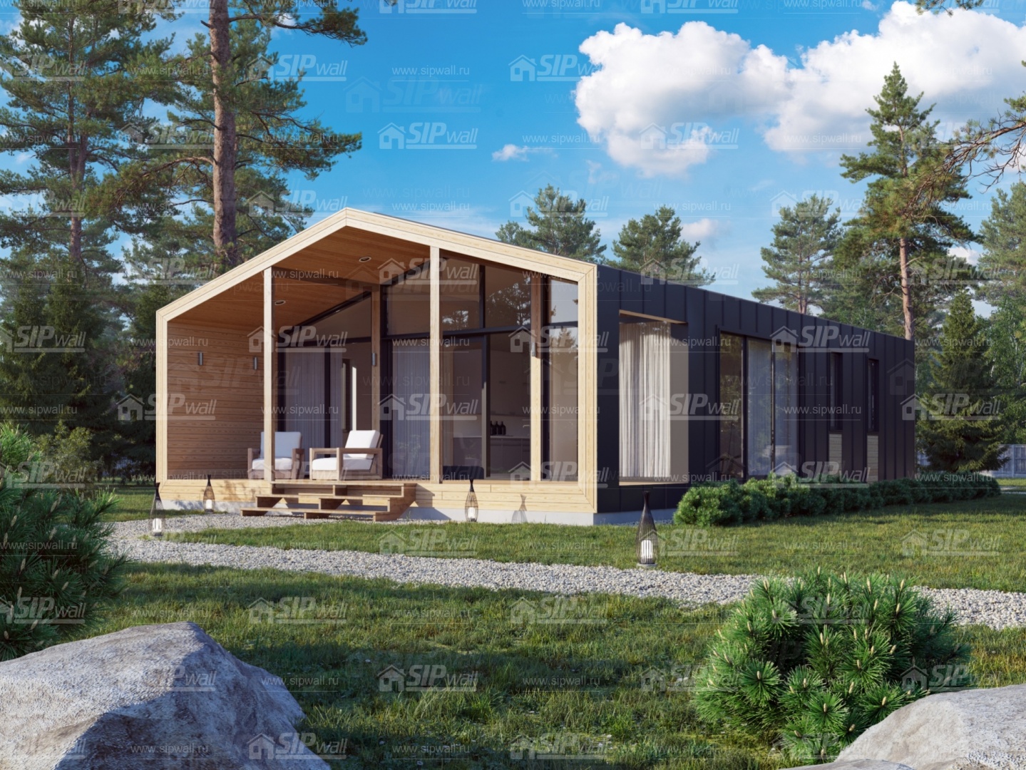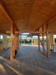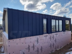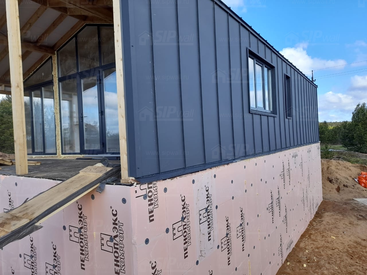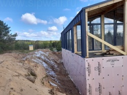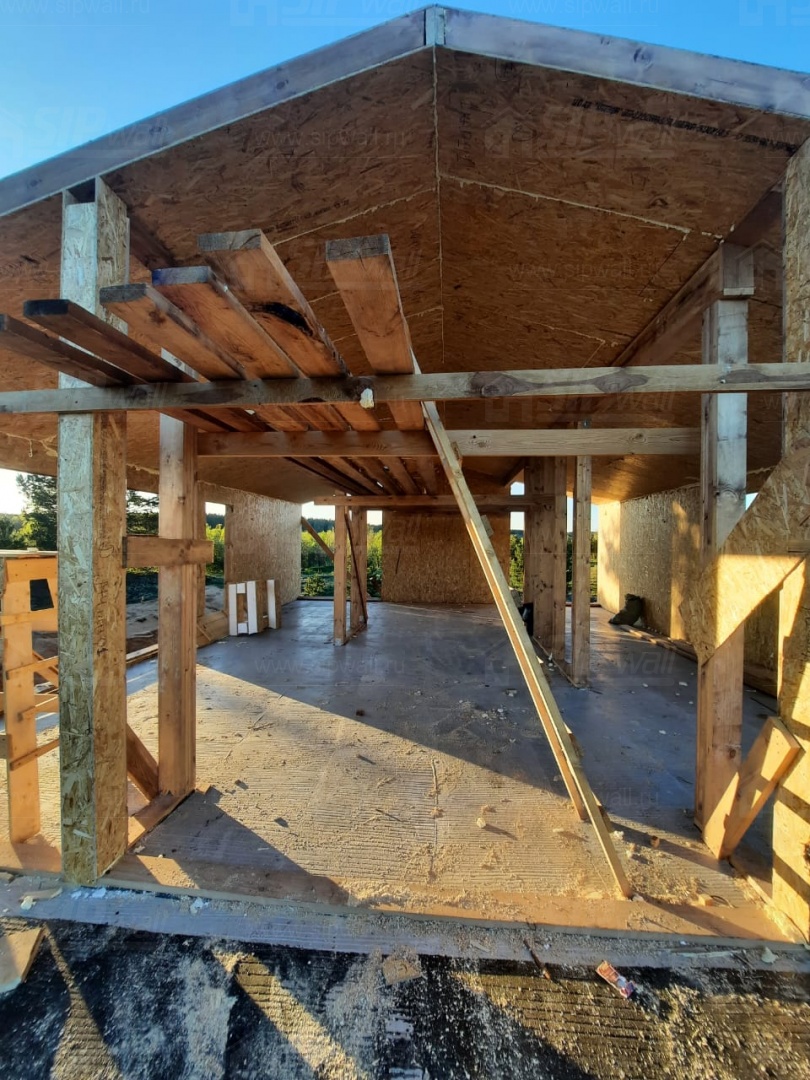 Все СИП панели SIPwall толщиной 224/174/124 мм (плиты OSB-3 толщиной 12 мм "Калевала" Россия и фасадный пенополистирол ППС-14 толщиной 200/150/100 мм производства, Россия) нарезаны и обрусованы сухим строганным брусом камерной сушки в соответствии с проектной документацией.
