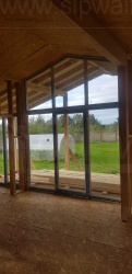 Все СИП панели SIPwall толщиной 224/174/124 мм (плиты OSB-3 толщиной 12 мм "Калевала" Россия и фасадный пенополистирол ППС-14 толщиной 200/150/100 мм производства, Россия) нарезаны и обрусованы сухим строганным брусом камерной сушки в соответствии с проектной документацией.
