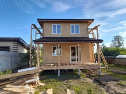 Все СИП панели SIPwall толщиной 224/174/124 мм (плиты OSB-3 толщиной 12 мм "Калевала" Россия и фасадный пенополистирол ППС-14 толщиной 200/150/100 мм производства, Россия) нарезаны и обрусованы сухим строганным брусом камерной сушки в соответствии с проектной документацией.