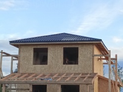 Домокомплект - изготовлен по проекту из СИП панелей произведенный по технологии SIPwall (ЭКОПАН) на собственном заводе расположенном в г. Шуя, Ивановской области. При изготовлении домокомплекта панельно каркасного дома используется только сухой строганный брус камерной сушки, обработанный огнебиозащитным составом.