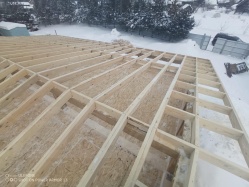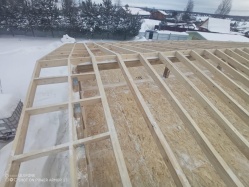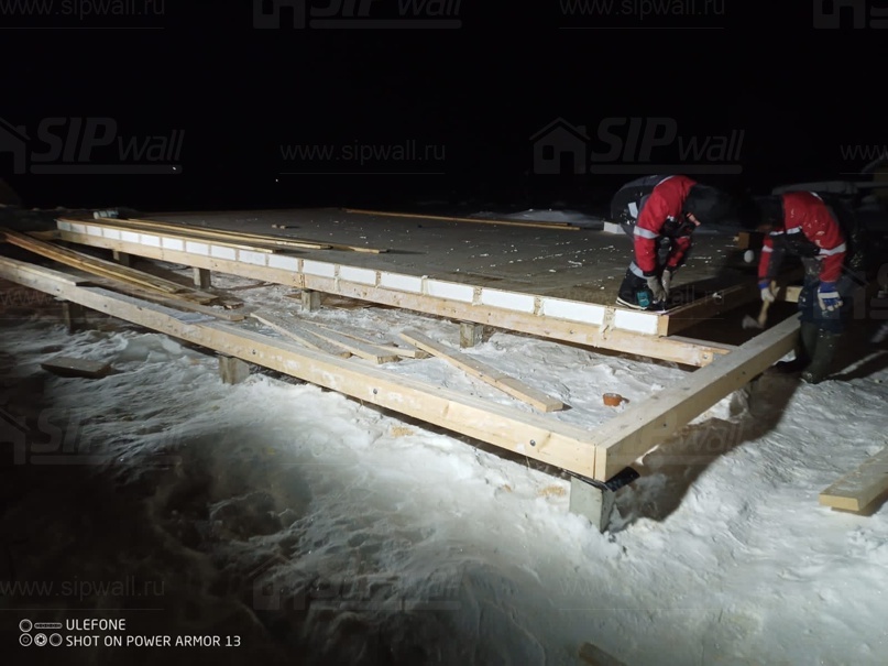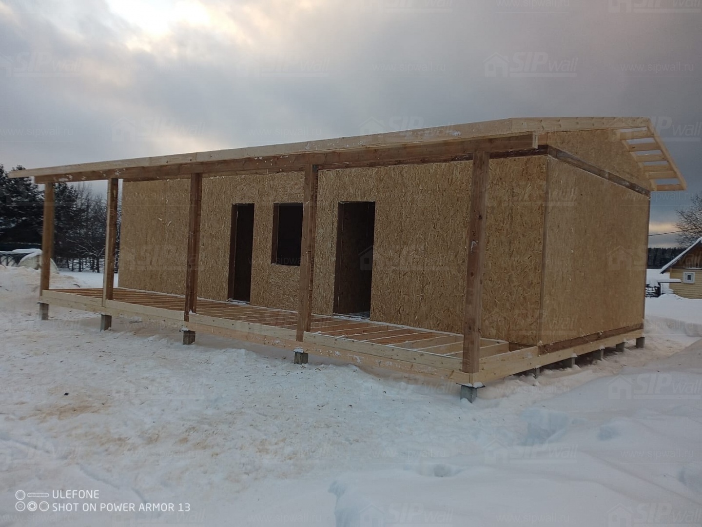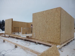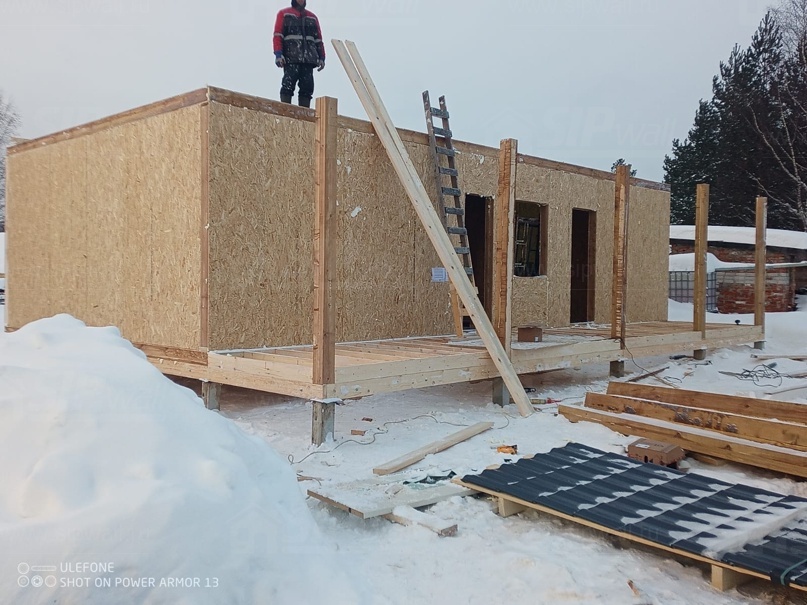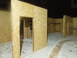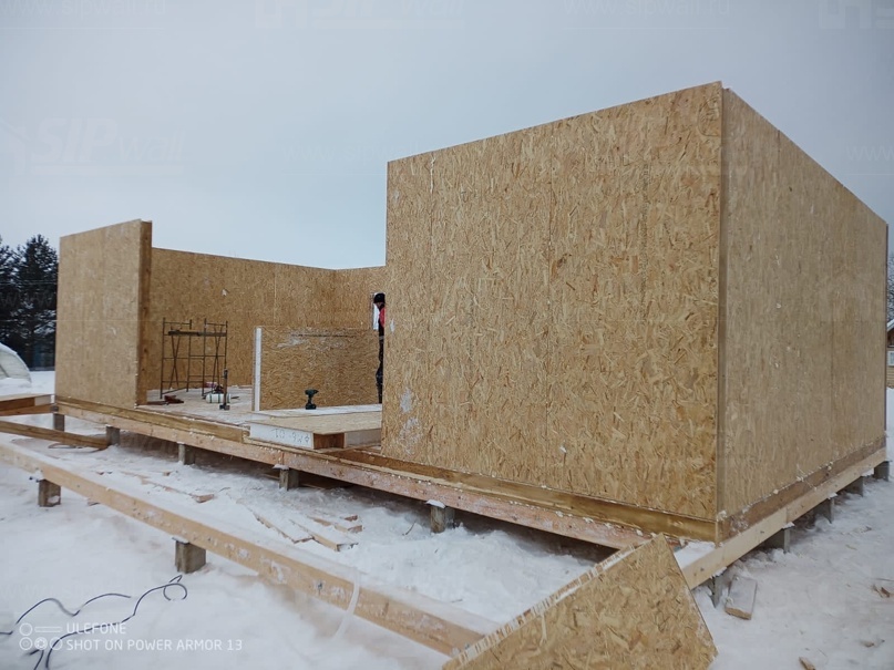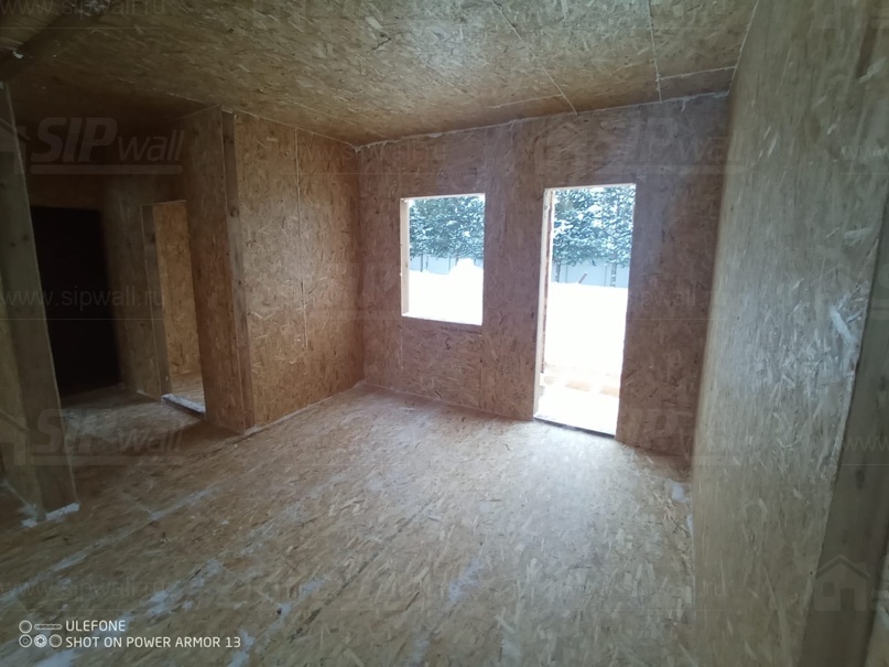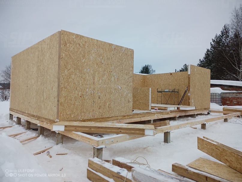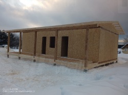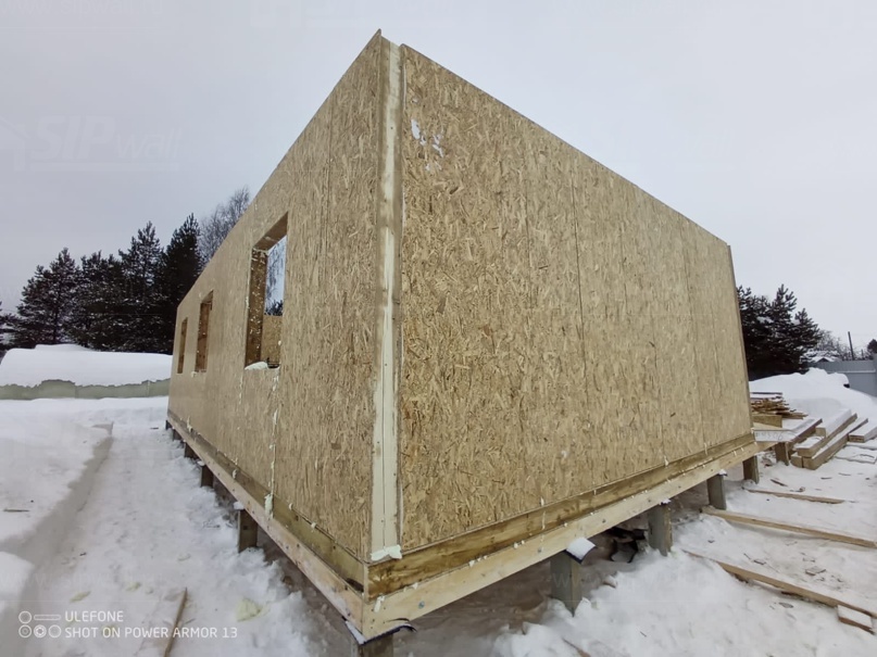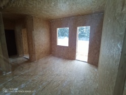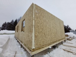 Все СИП панели SIPwall толщиной 224/174/124 мм (плиты OSB-3 толщиной 12 мм "Калевала" Россия и фасадный пенополистирол ППС-14 толщиной 200/150/100 мм производства, Россия) нарезаны и обрусованы сухим строганным брусом камерной сушки в соответствии с проектной документацией.