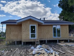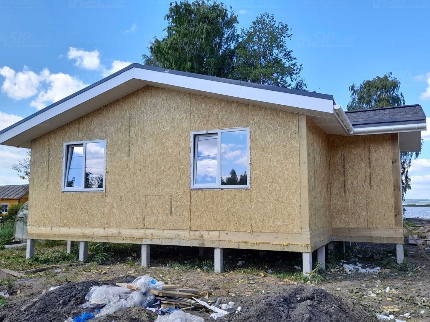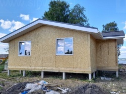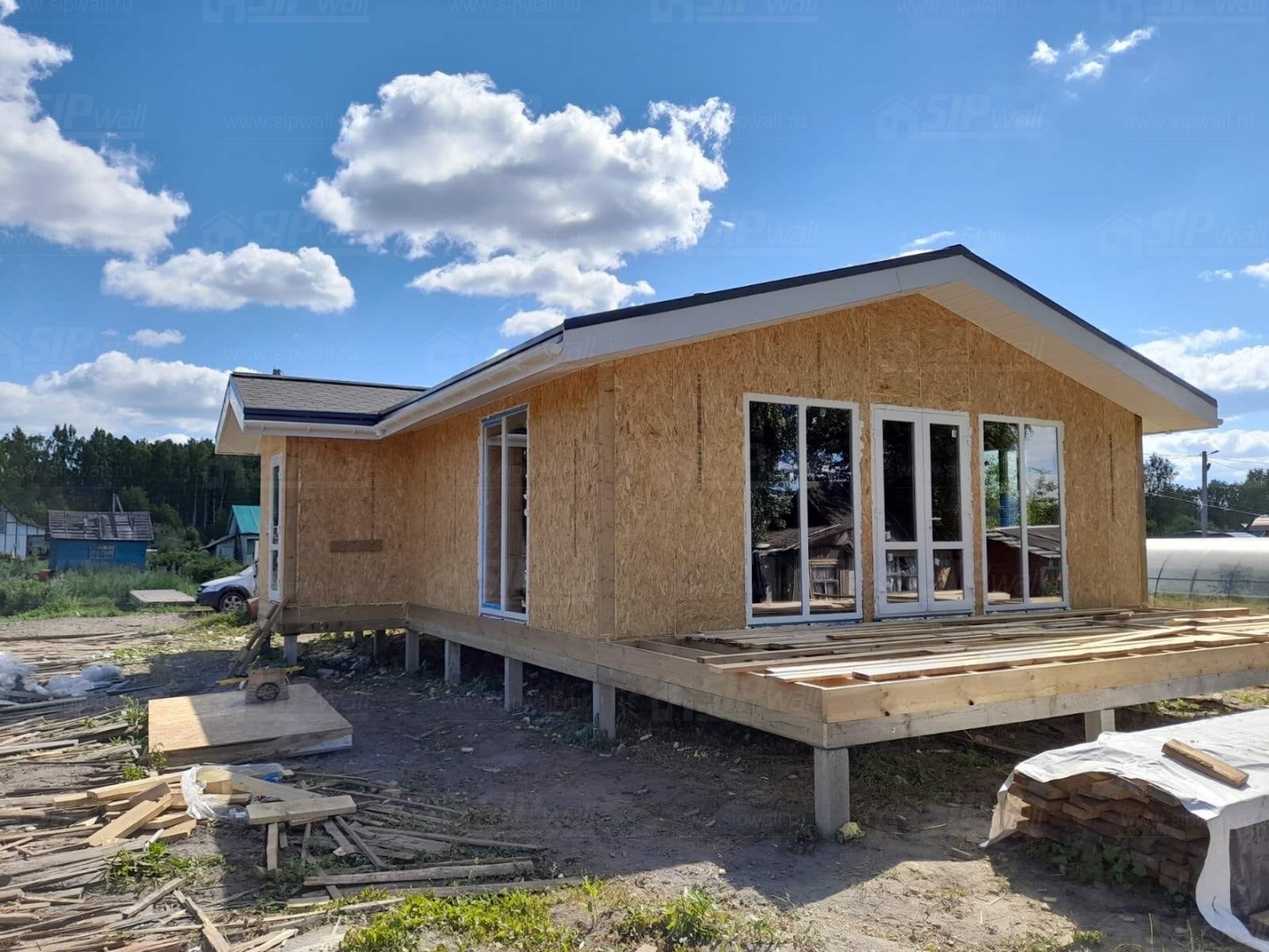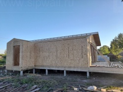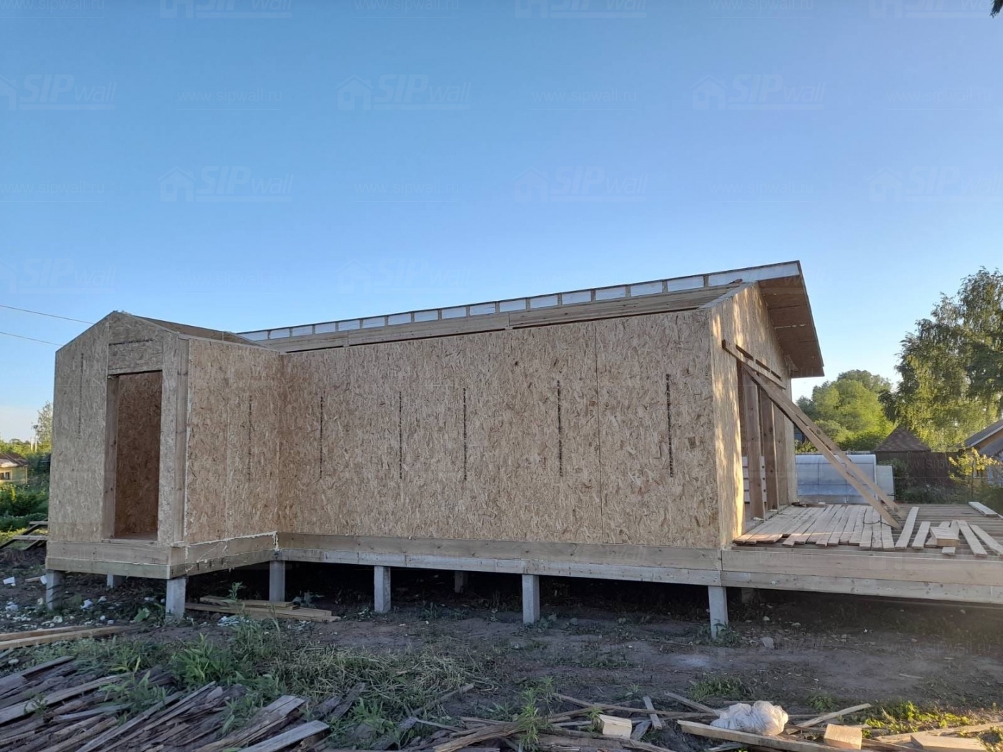Все СИП панели SIPwall толщиной 224/174/124 мм (плиты OSB-3 толщиной 12 мм "Калевала" Россия и фасадный пенополистирол ППС-14 толщиной 200/150/100 мм производства, Россия) нарезаны и обрусованы сухим строганным брусом камерной сушки в соответствии с проектной документацией.