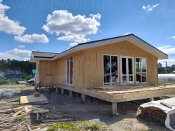 Домокомплект - изготовлен по проекту из СИП панелей произведенный по технологии SIPwall (ЭКОПАН) на собственном заводе расположенном в г. Шуя, Ивановской области. При изготовлении домокомплекта панельно каркасного дома используется только сухой строганный брус камерной сушки, обработанный огнебиозащитным составом.