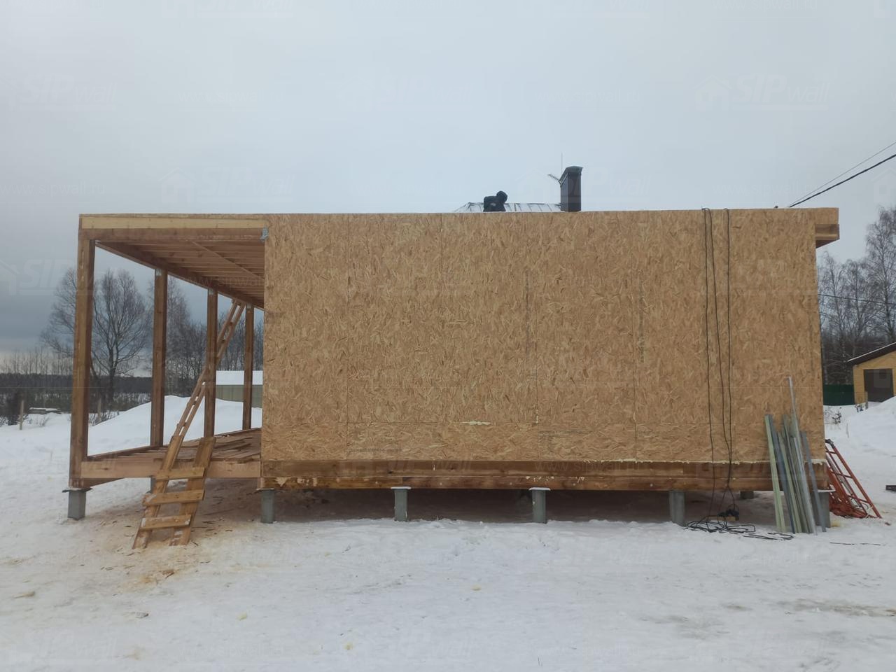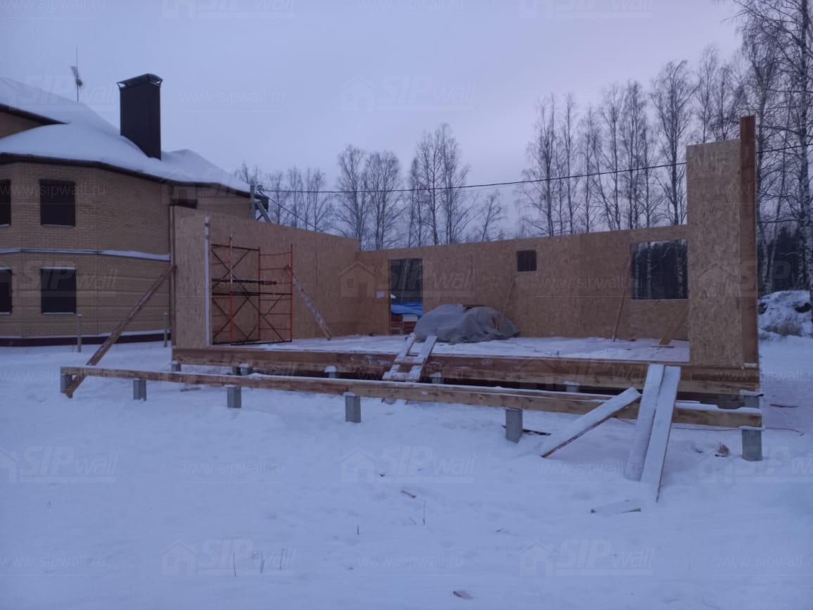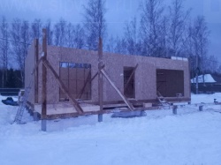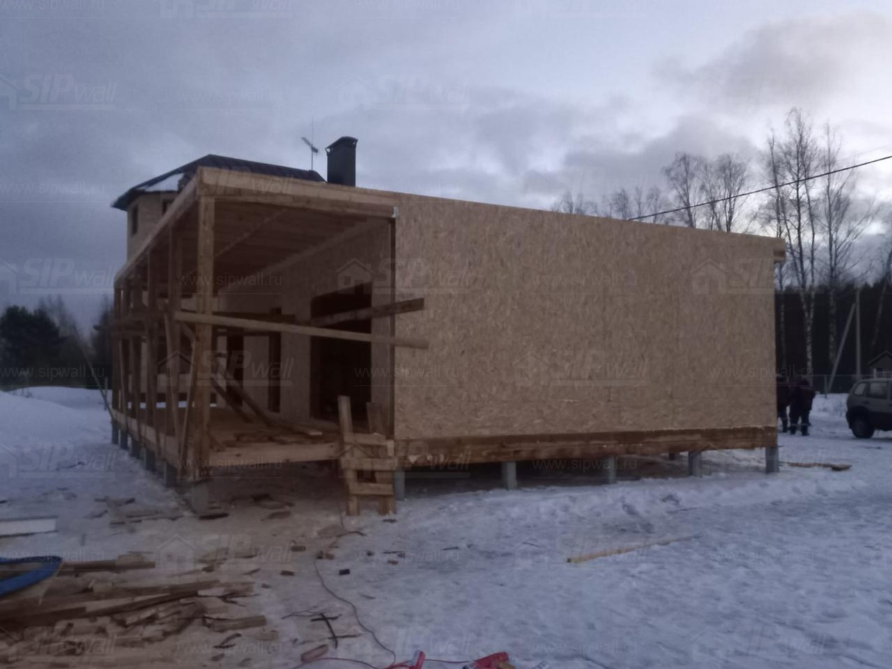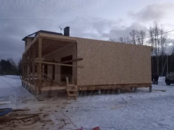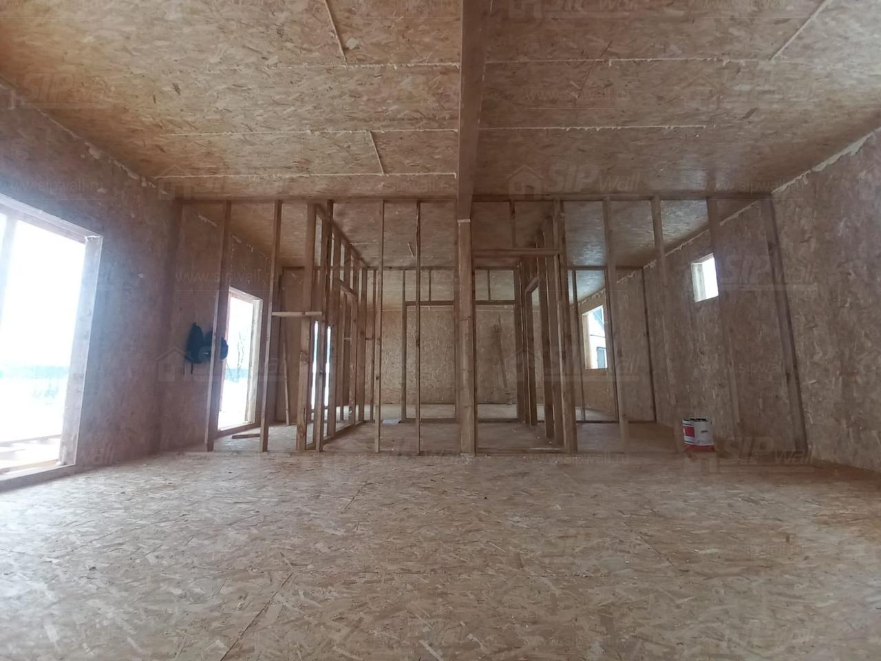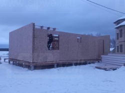 Все СИП панели SIPwall толщиной 224/174/124 мм (плиты OSB-3 толщиной 12 мм "Калевала" Россия и фасадный пенополистирол ППС-14 толщиной 200/150/100 мм производства, Россия) нарезаны и обрусованы сухим строганным брусом камерной сушки в соответствии с проектной документацией.