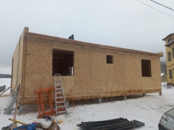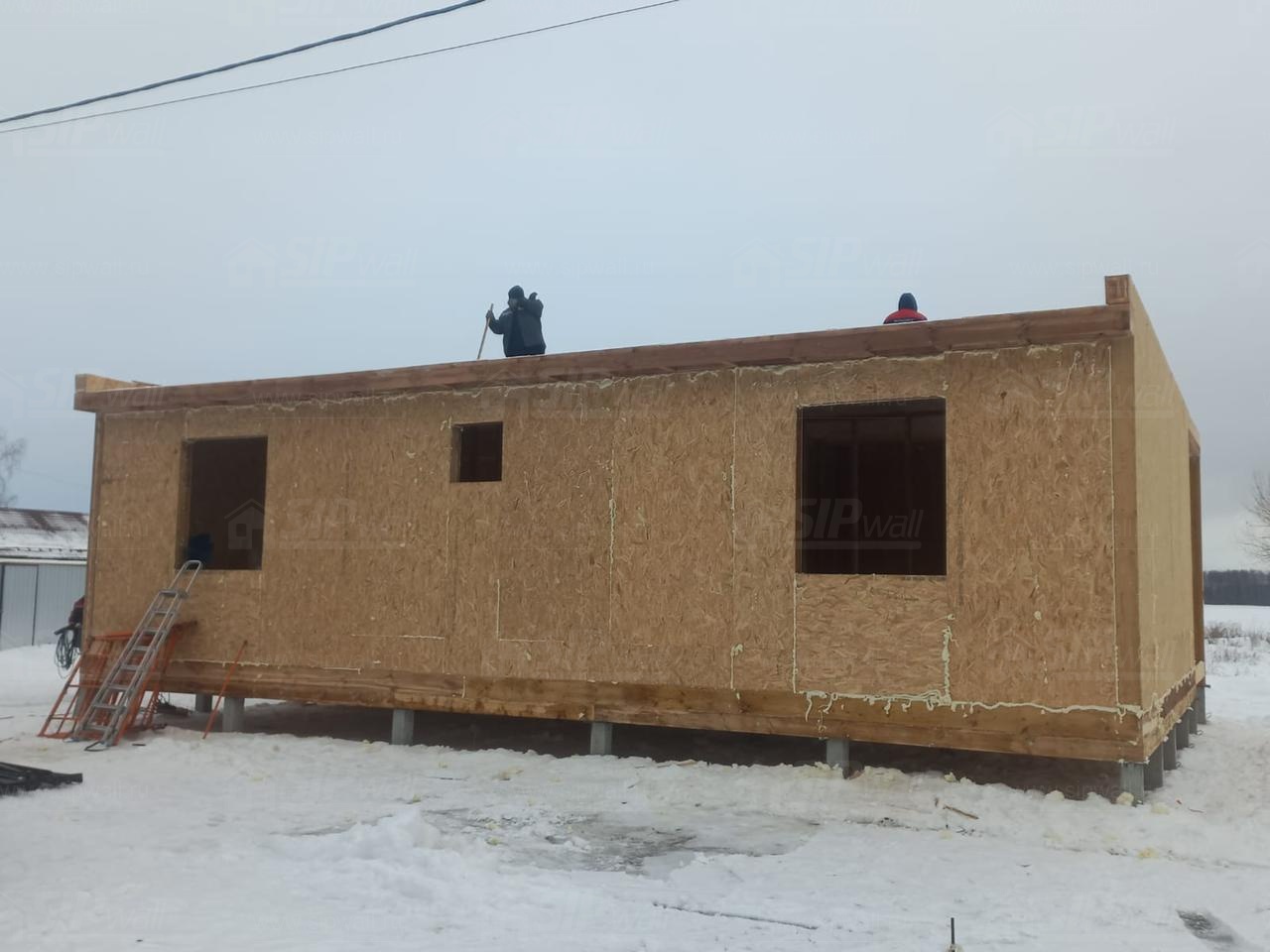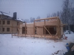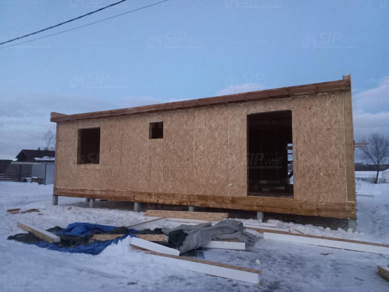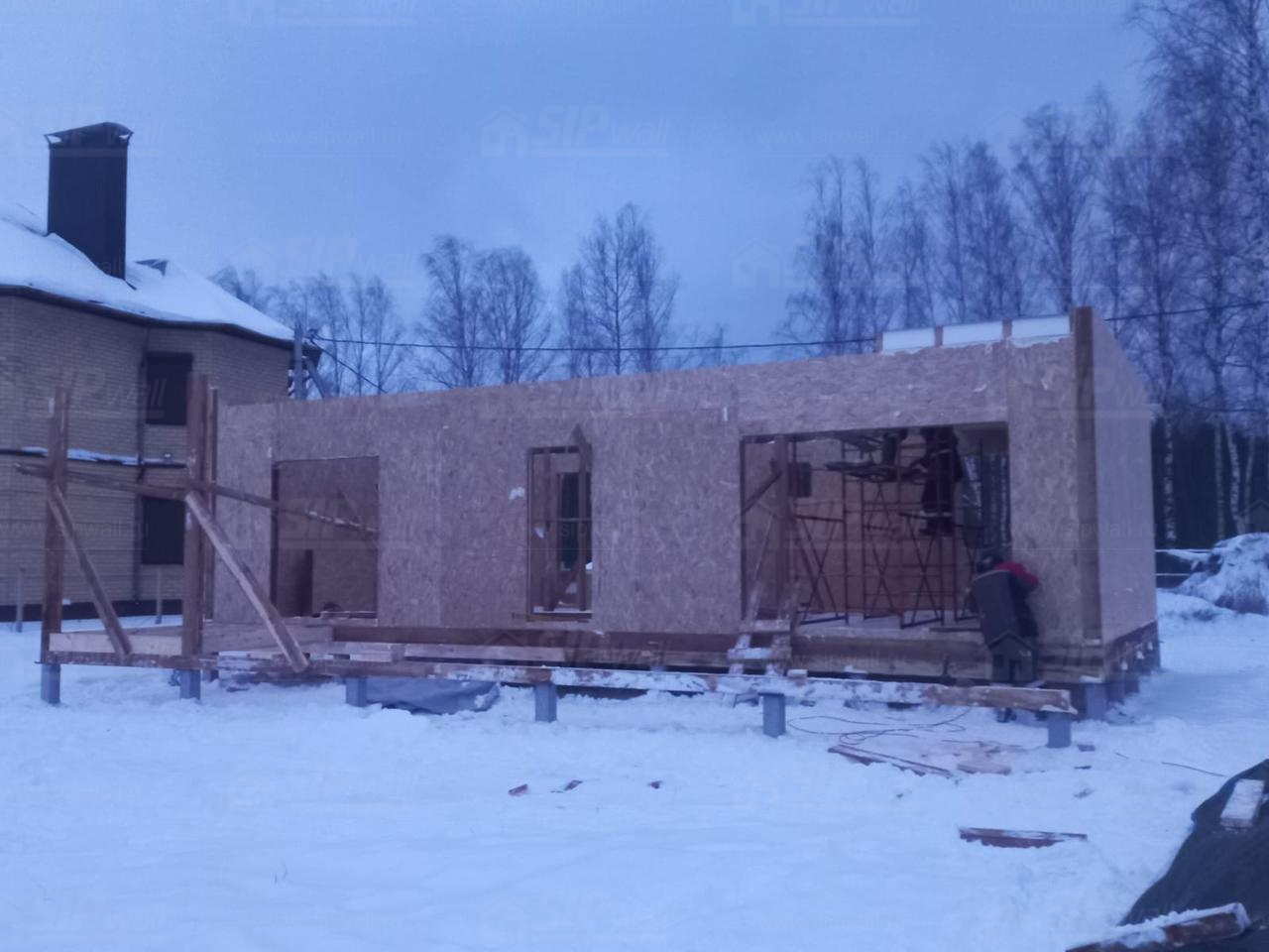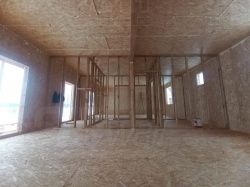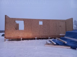 Все СИП панели SIPwall толщиной 224/174/124 мм (плиты OSB-3 толщиной 12 мм "Калевала" Россия и фасадный пенополистирол ППС-14 толщиной 200/150/100 мм производства, Россия) нарезаны и обрусованы сухим строганным брусом камерной сушки в соответствии с проектной документацией.