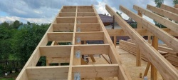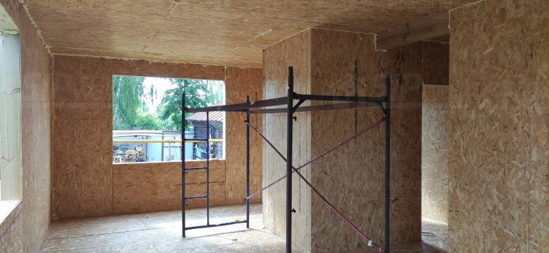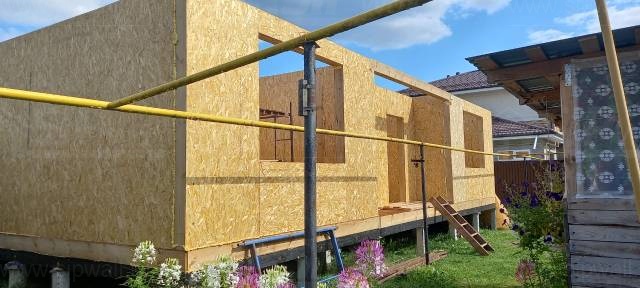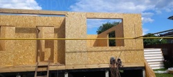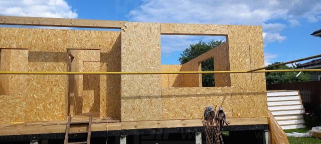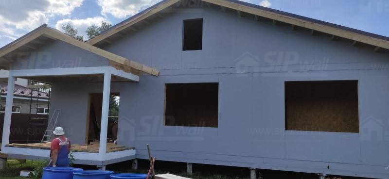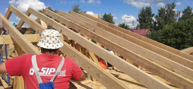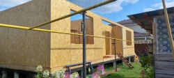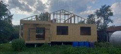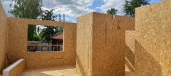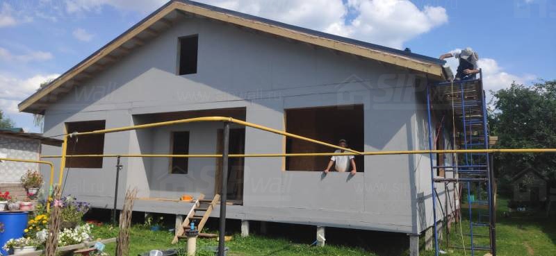 Все СИП панели SIPwall толщиной 224/174/124 мм (плиты OSB-3 толщиной 12 мм "Калевала" Россия и фасадный пенополистирол ППС-14 толщиной 200/150/100 мм производства, Россия) нарезаны и обрусованы сухим строганным брусом камерной сушки в соответствии с проектной документацией.