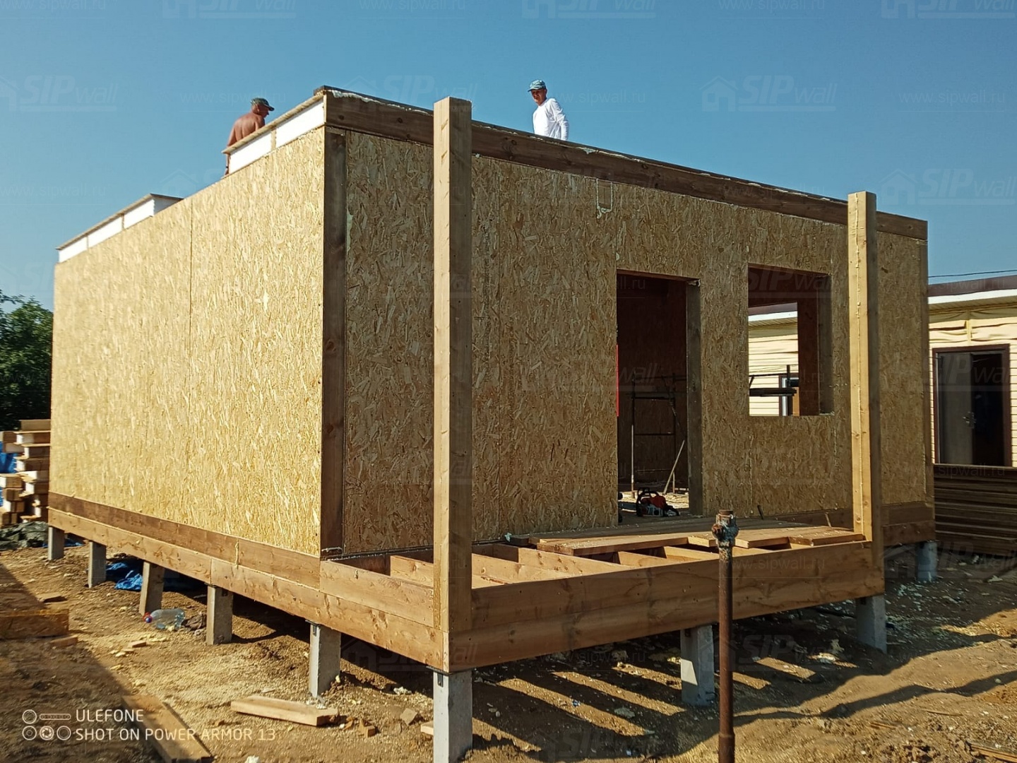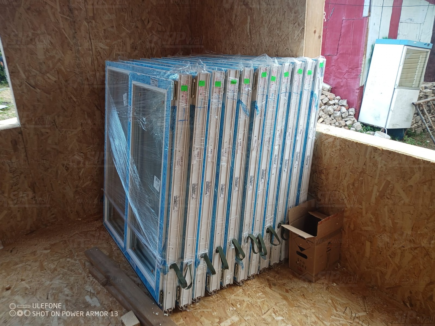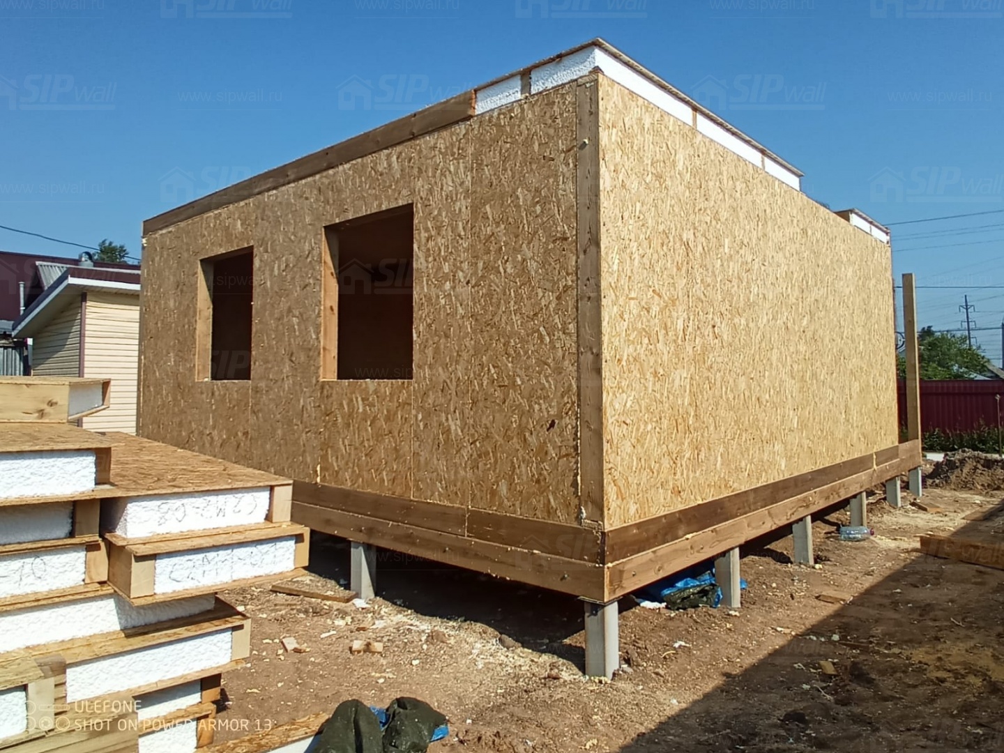Все СИП панели SIPwall толщиной 224/174/124 мм изготовлены из плит OSB-3 толщиной 12 мм производства компании "Калевала" (Россия) и фасадного пенополистирола ППС-14 толщиной 200/150/100 мм (Россия). Панели нарезаны и обрусованы сухим строганным брусом камерной сушки в соответствии с проектной документацией.