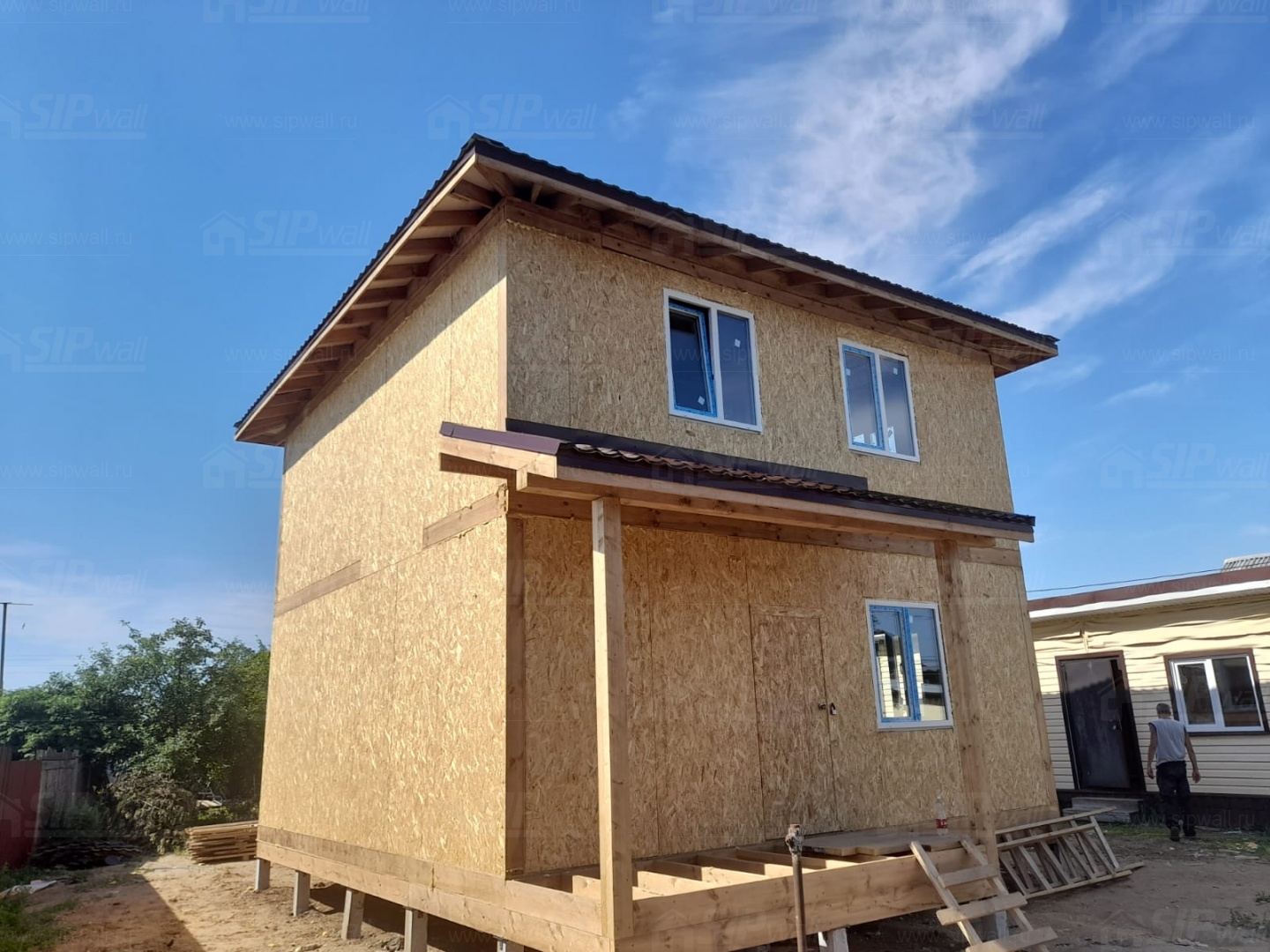 - Несущие стены: СИП панели толщиной 174 мм