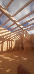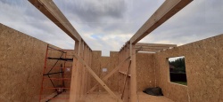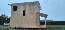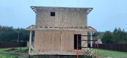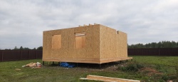 Все СИП панели SIPwall толщиной 224/174/124 мм (плиты OSB-3 толщиной 12 мм "Калевала" Россия и фасадный пенополистирол ППС-14 толщиной 200/150/100 мм производства, Россия) нарезаны и обрусованы сухим строганным брусом камерной сушки в соответствии с проектной документацией.