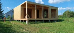 Домокомплект - изготовлен по проекту из СИП панелей произведенный по технологии SIPwall (ЭКОПАН) на собственном заводе расположенном в г. Шуя, Ивановской области. При изготовлении домокомплекта панельно каркасного дома используется только сухой строганный брус камерной сушки, обработанный огнебиозащитным составом.