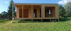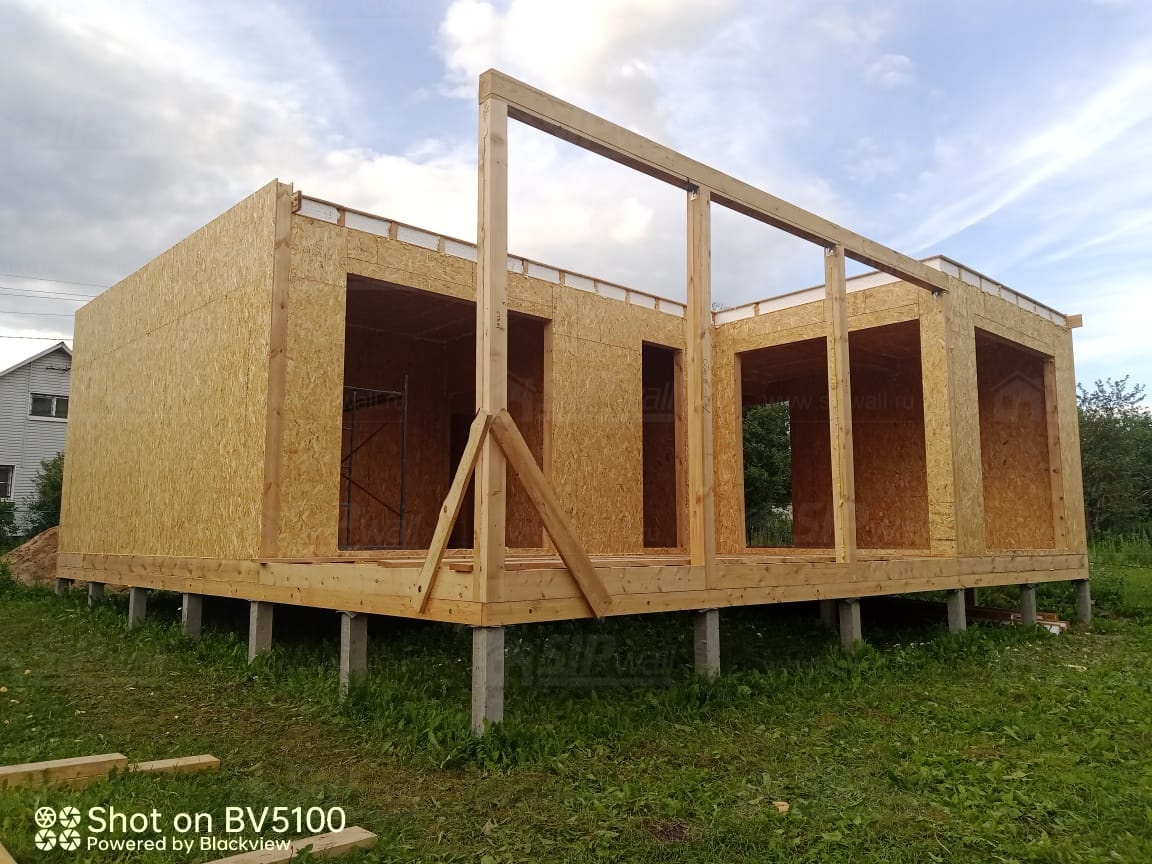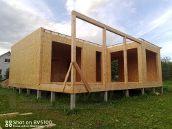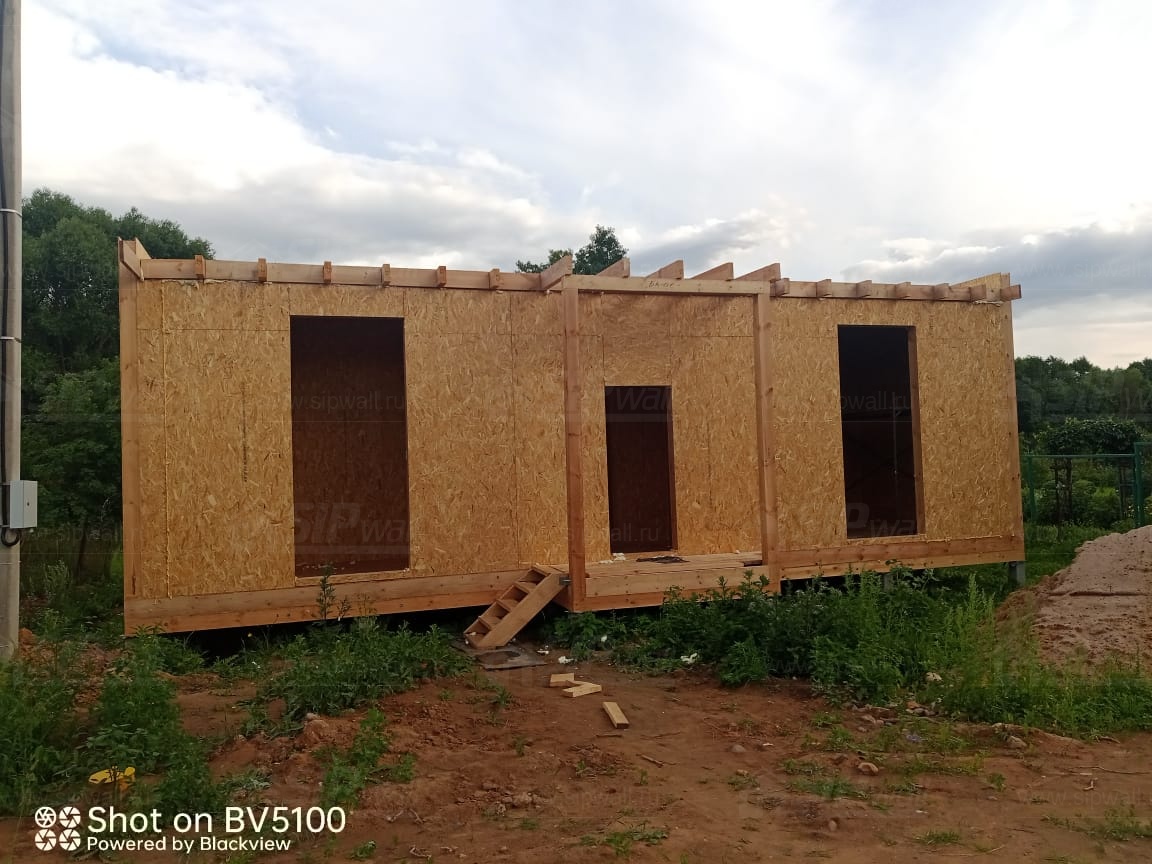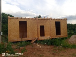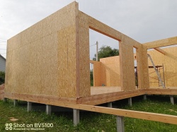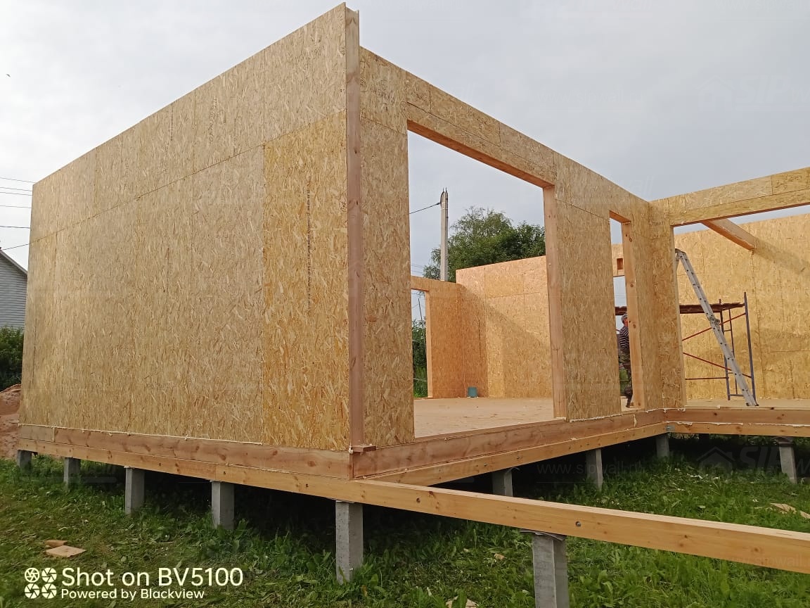 Все СИП панели SIPwall толщиной 224/174/124 мм (плиты OSB-3 толщиной 12 мм "Калевала" Россия и фасадный пенополистирол ППС-14 толщиной 200/150/100 мм производства, Россия) нарезаны и обрусованы сухим строганным брусом камерной сушки в соответствии с проектной документацией.