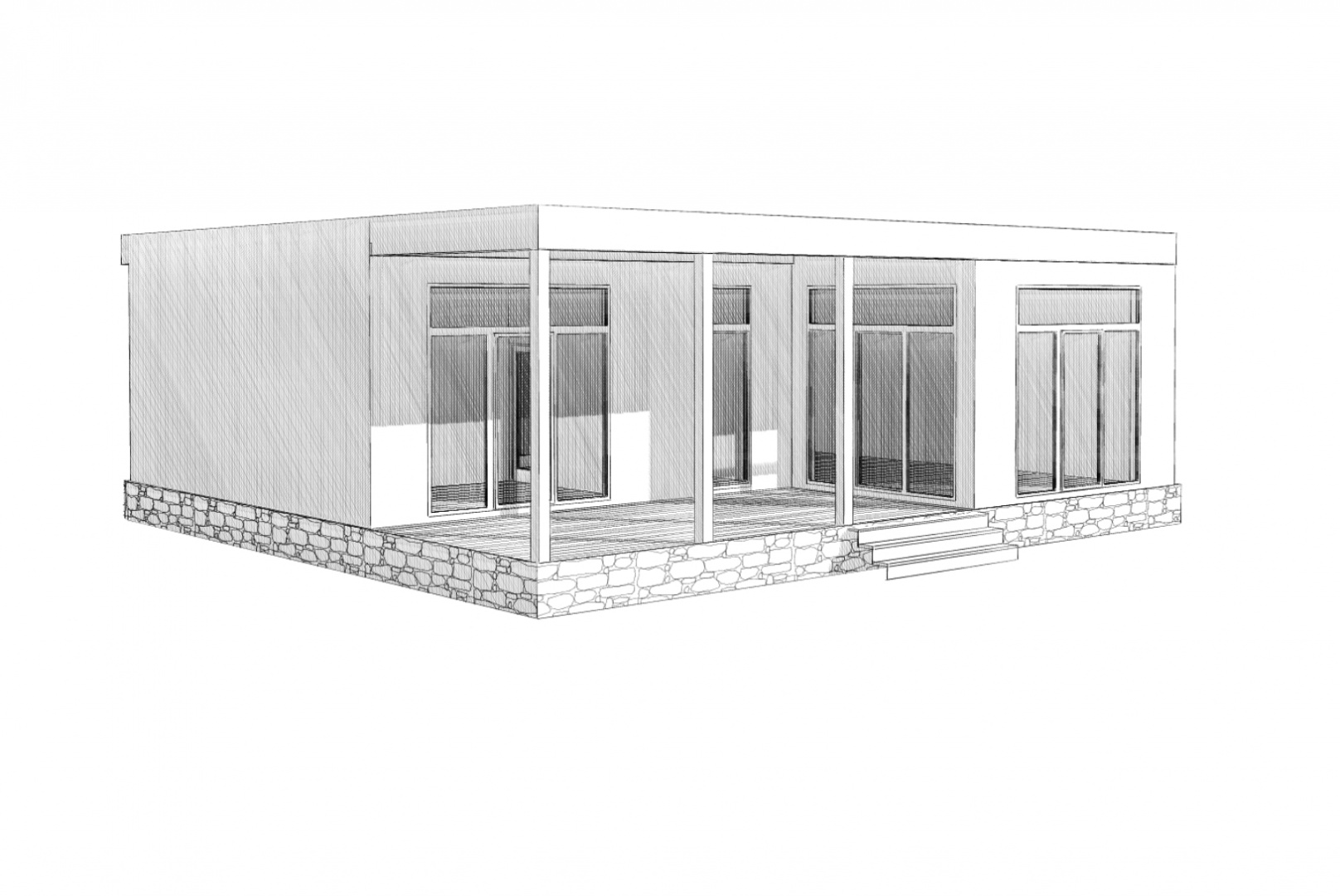 Комплектация домокомплекта: перекрытие на отметке +0.000 - СИП - 174У мм, несущие стены дома выполнены из СИП панелей 174 мм, внутренние несущие стены - СИП 174 мм, не несущие стены - СИП 124 мм Кровля - СИП 174У.