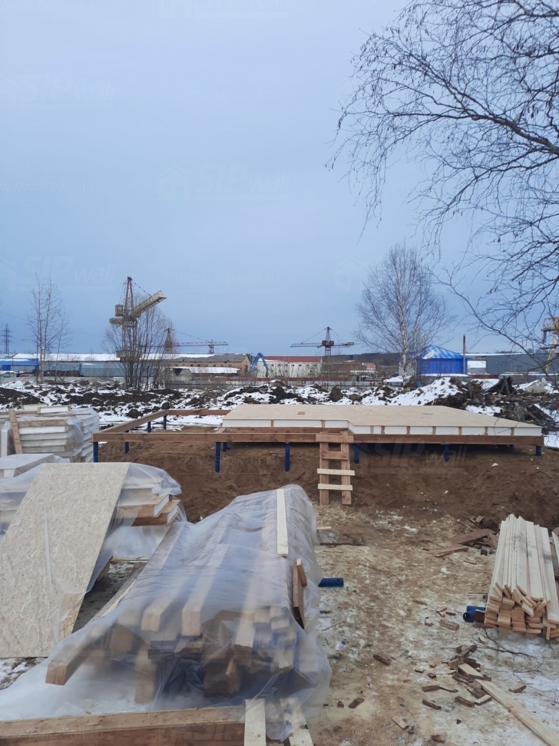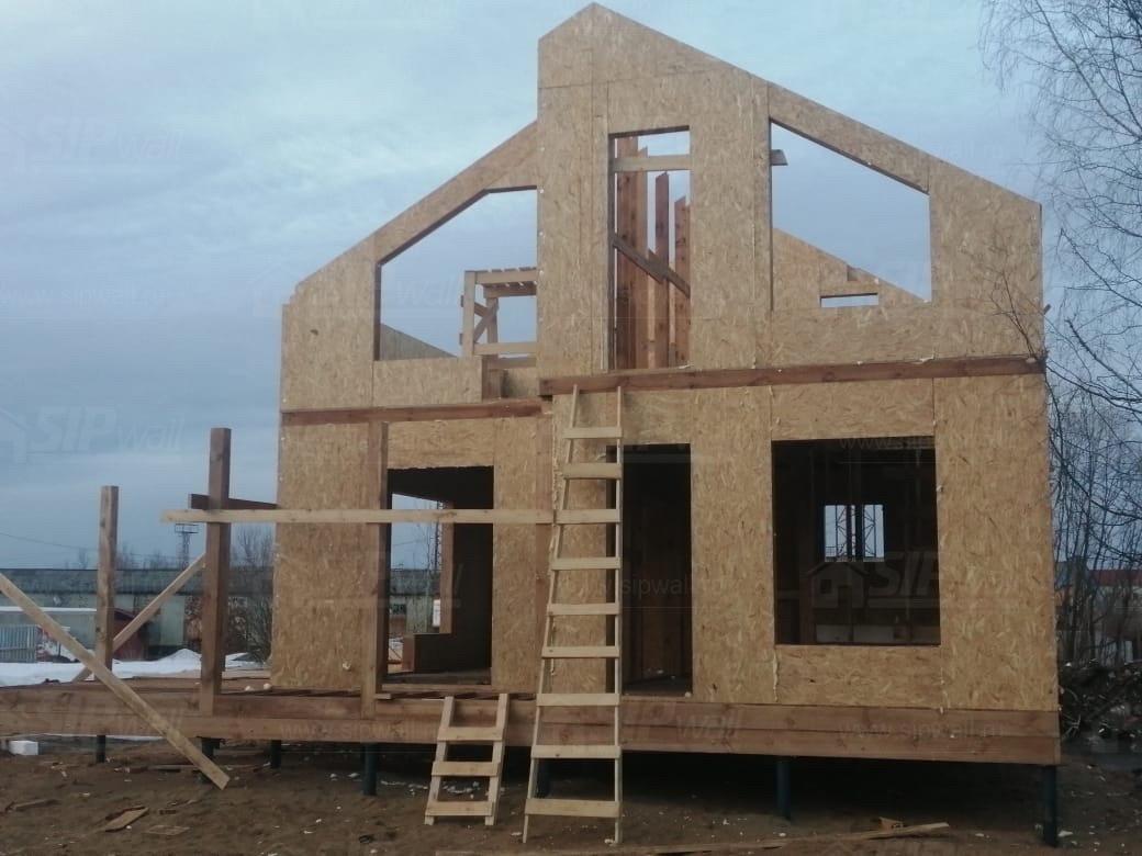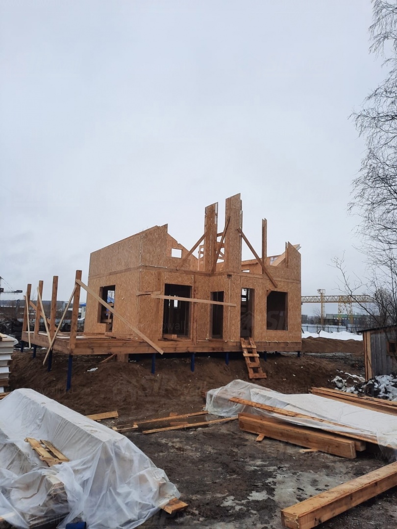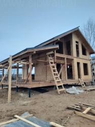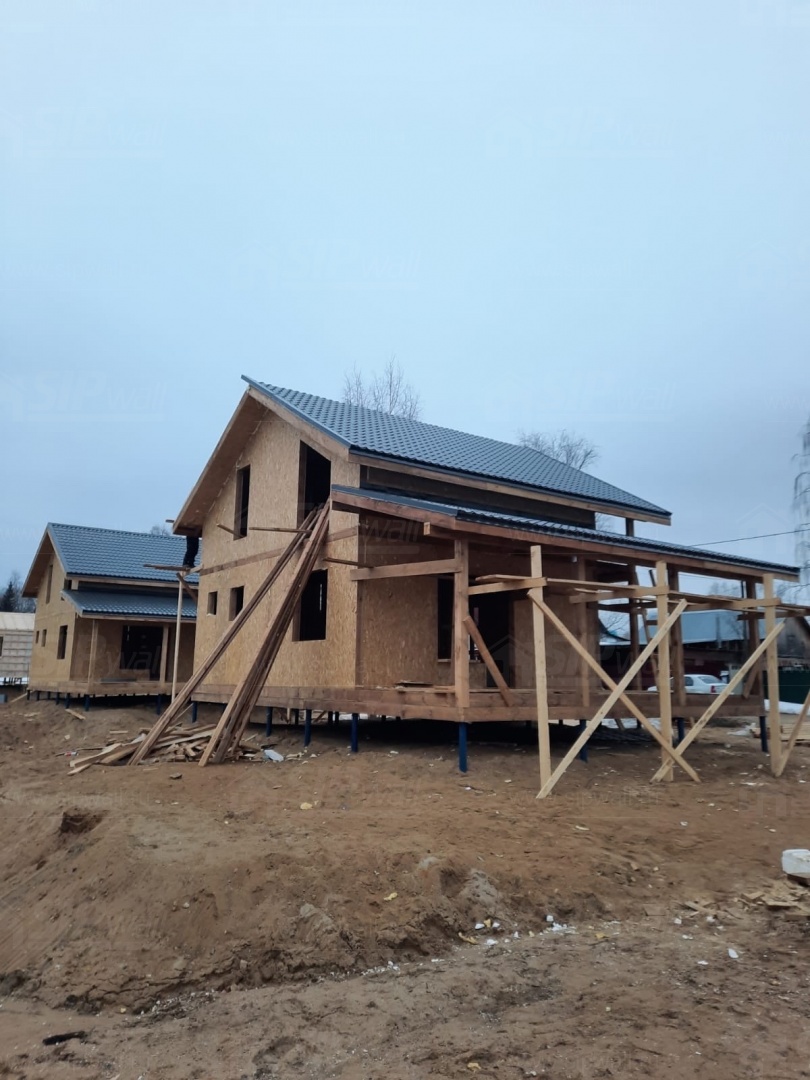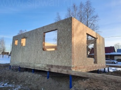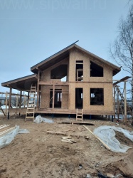 Все СИП панели SIPwall толщиной 224/174/124 мм (плиты OSB-3 толщиной 12 мм "Калевала" Россия и фасадный пенополистирол ППС-14 толщиной 200/150/100 мм производства, Россия) нарезаны и обрусованы сухим строганным брусом камерной сушки в соответствии с проектной документацией.