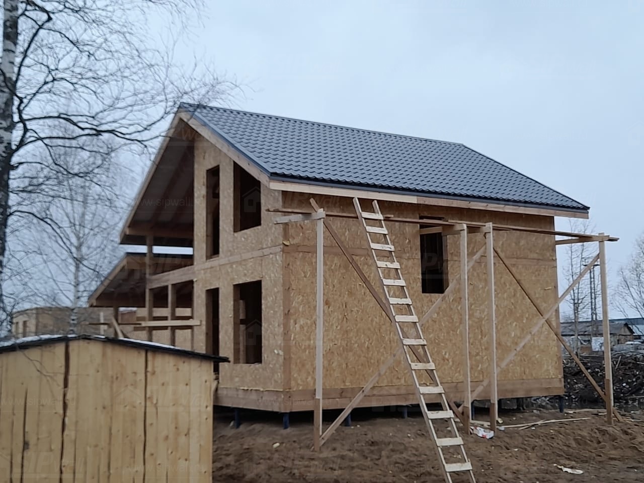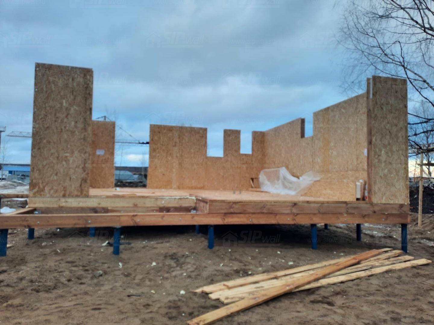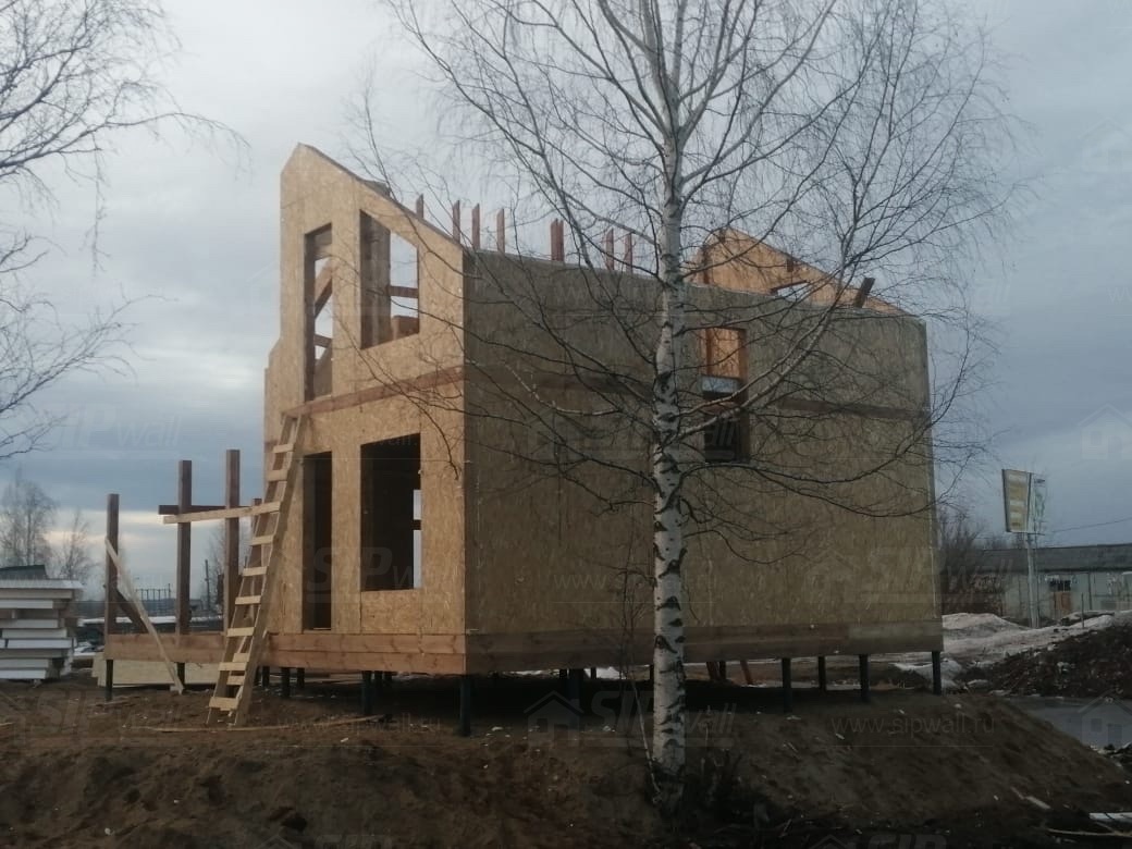 Все СИП панели SIPwall толщиной 224/174/124 мм (плиты OSB-3 толщиной 12 мм "Калевала" Россия и фасадный пенополистирол ППС-14 толщиной 200/150/100 мм производства, Россия) нарезаны и обрусованы сухим строганным брусом камерной сушки в соответствии с проектной документацией.