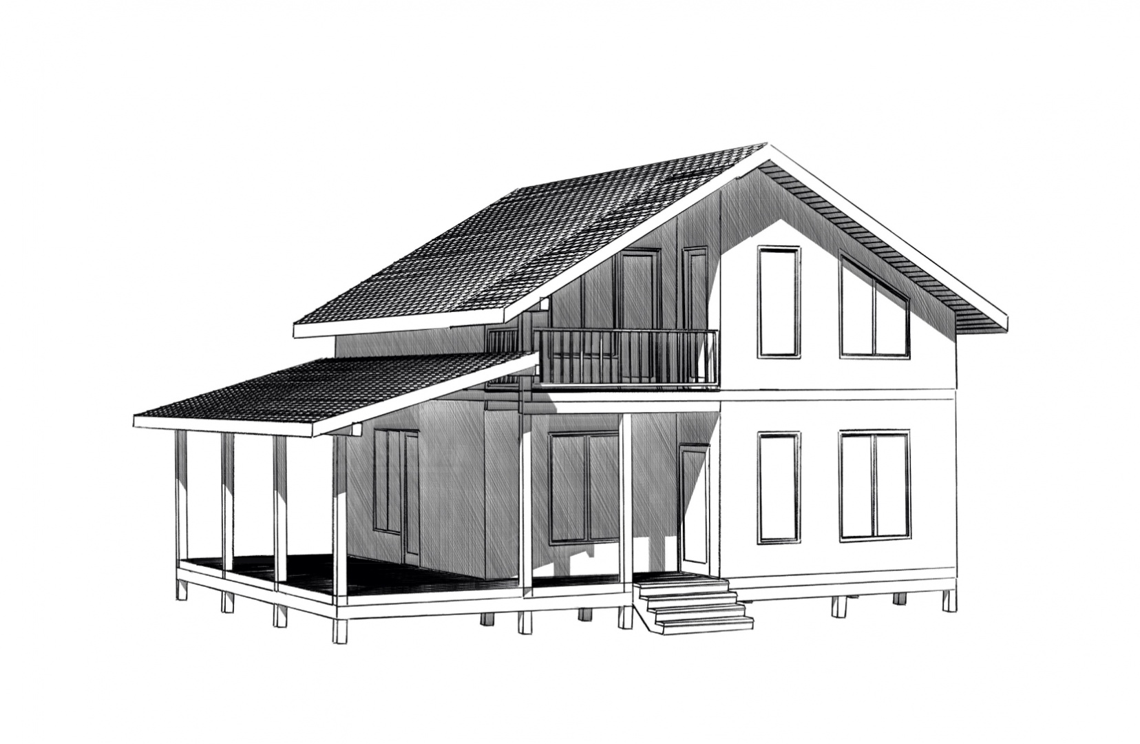 Домокомплект - изготовлен по проекту из СИП панелей произведенный по технологии SIPwall (ЭКОПАН) на собственном заводе расположенном в г. Шуя, Ивановской области. При изготовлении домокомплекта панельно каркасного дома используется только сухой строганный брус камерной сушки, обработанный огнебиозащитным составом.