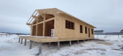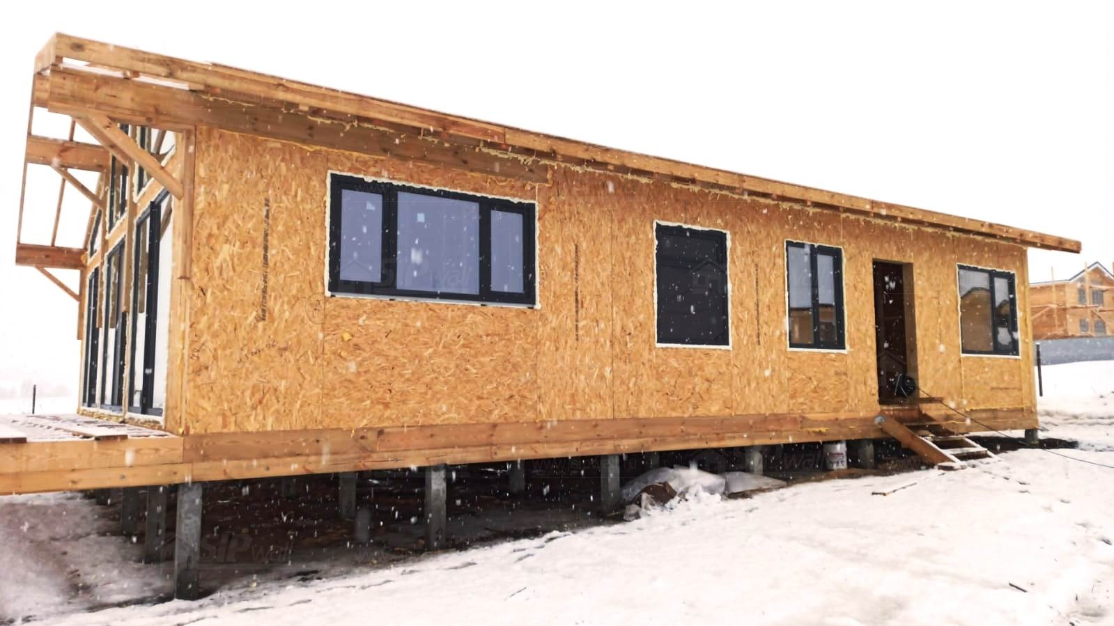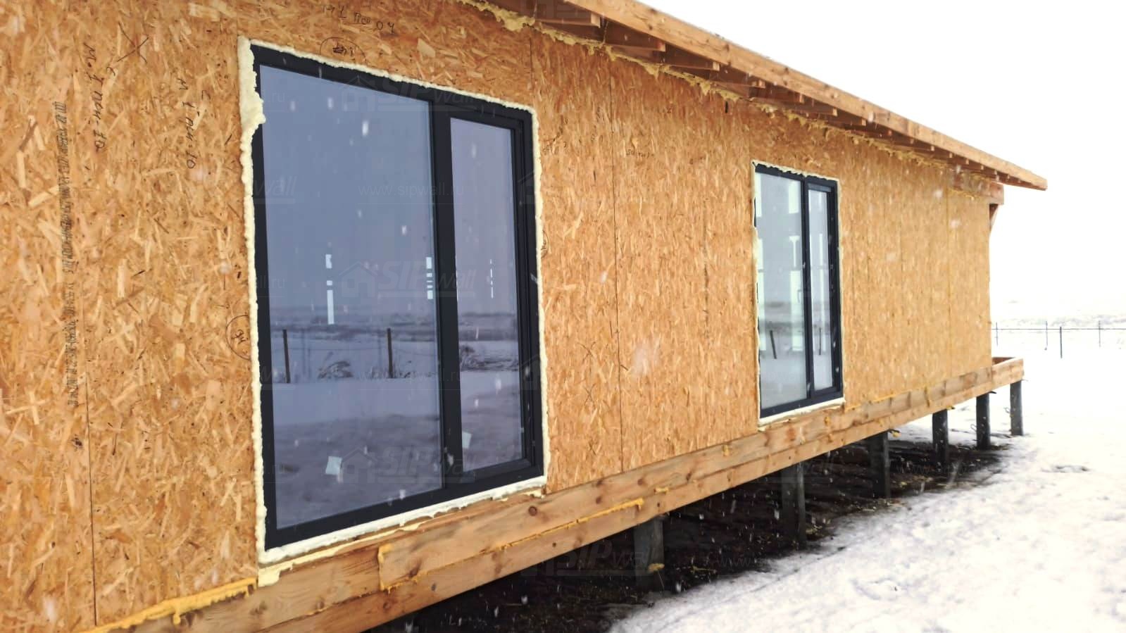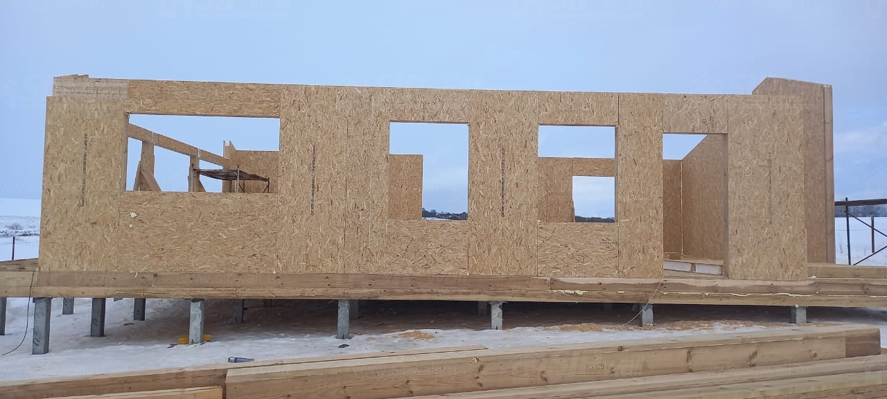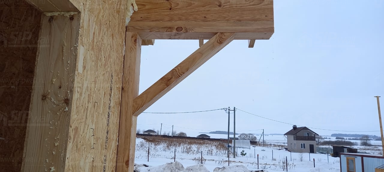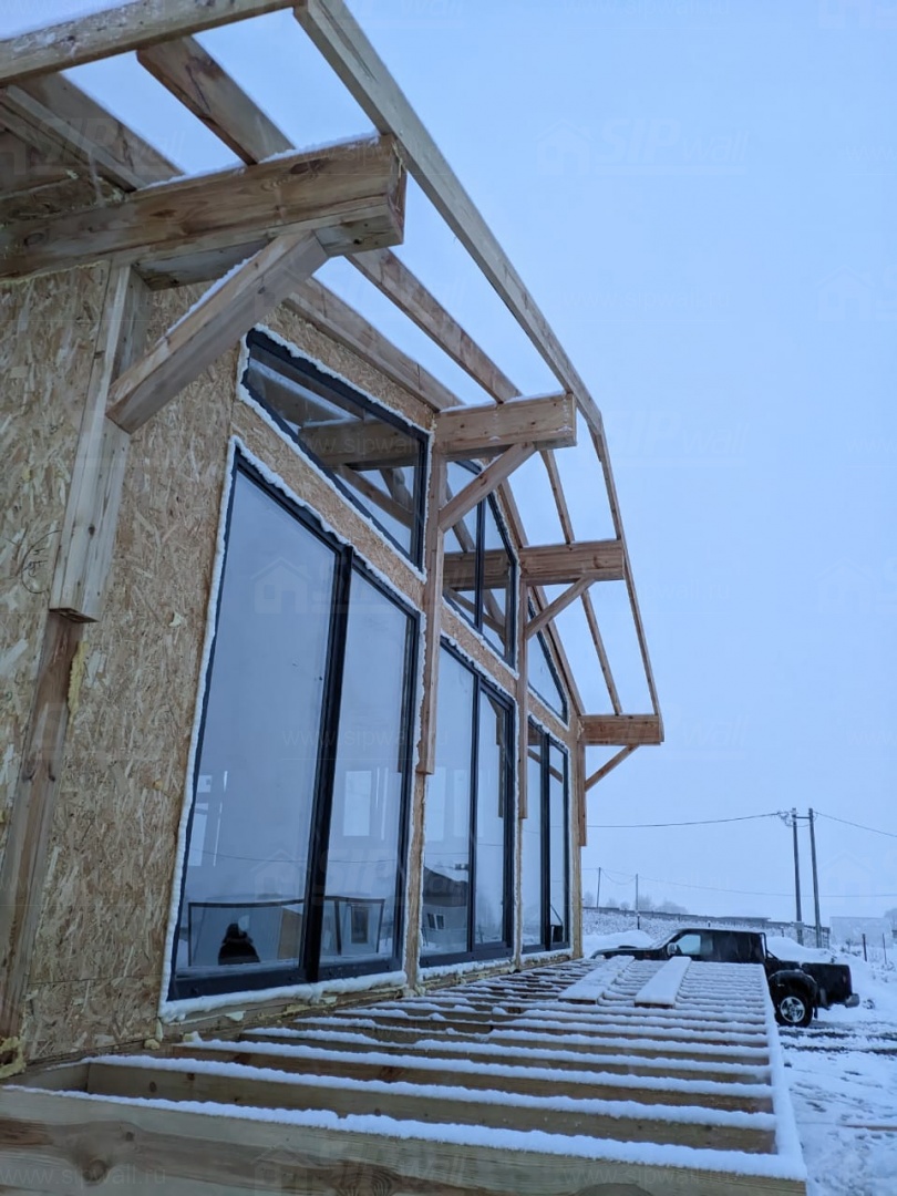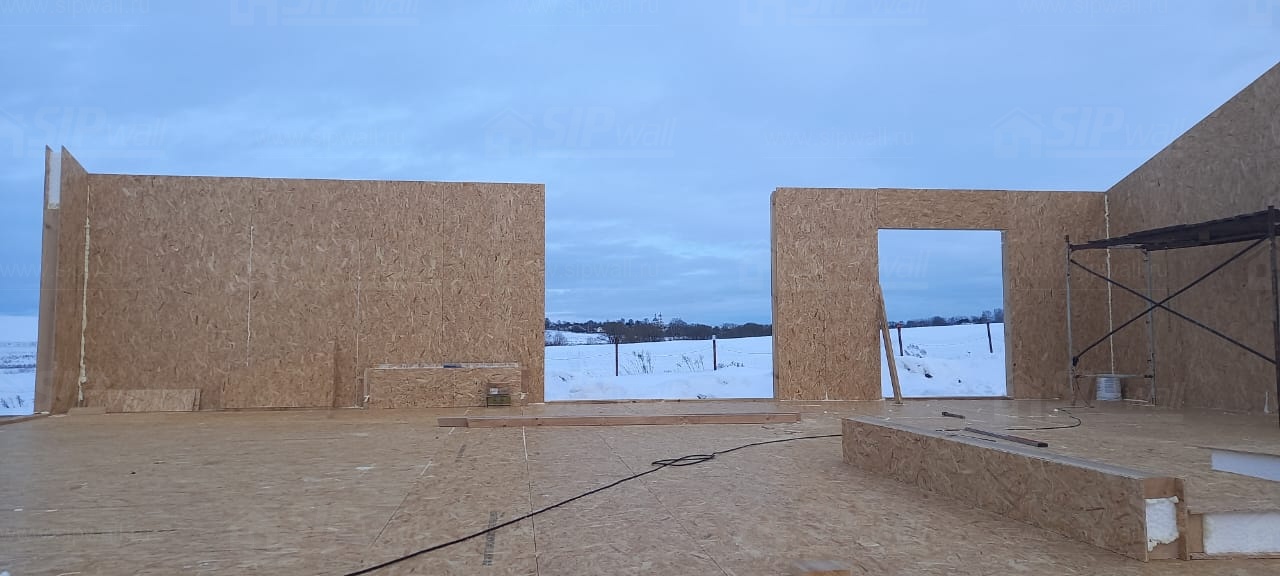 Все СИП панели SIPwall толщиной 224/174/124 мм (плиты OSB-3 толщиной 12 мм "Калевала" Россия и фасадный пенополистирол ППС-14 толщиной 200/150/100 мм производства, Россия) нарезаны и обрусованы сухим строганным брусом камерной сушки в соответствии с проектной документацией.