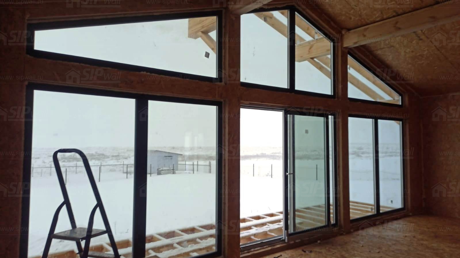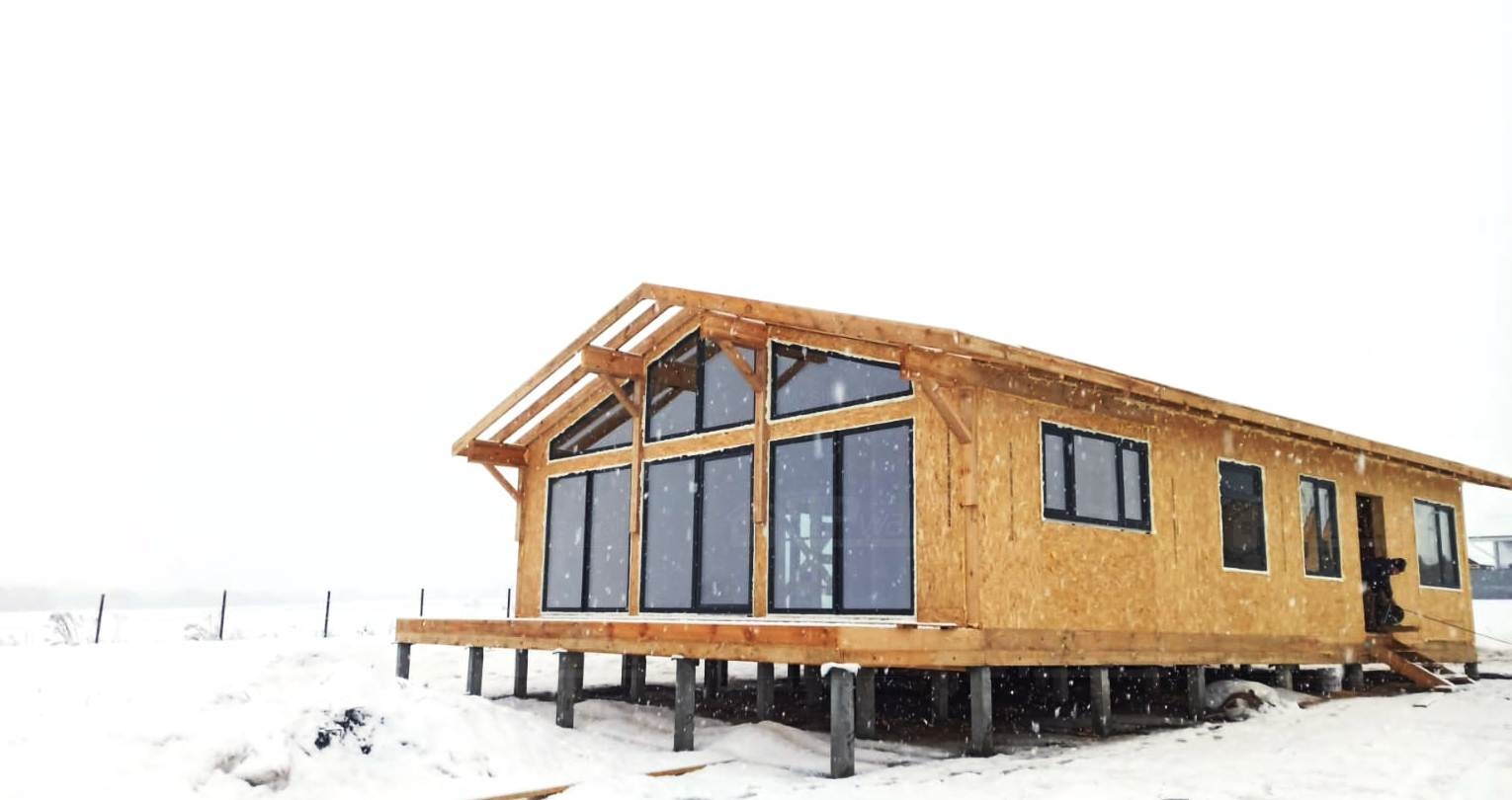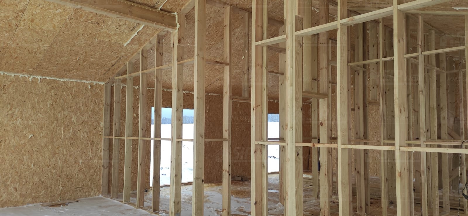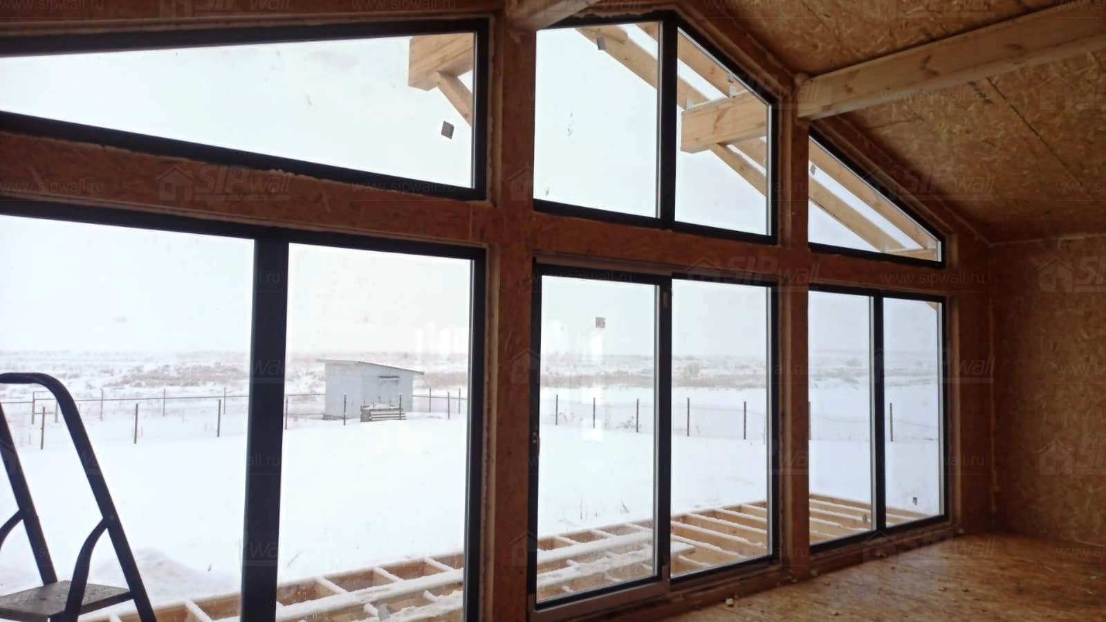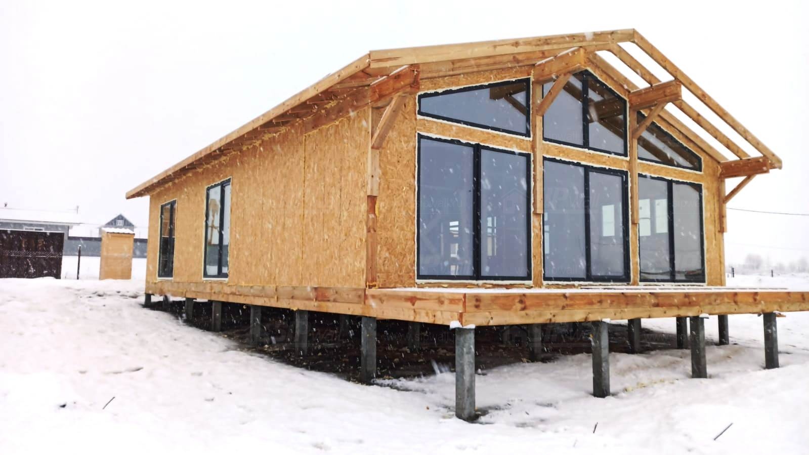 Все СИП панели SIPwall толщиной 224/174/124 мм (плиты OSB-3 толщиной 12 мм "Калевала" Россия и фасадный пенополистирол ППС-14 толщиной 200/150/100 мм производства, Россия) нарезаны и обрусованы сухим строганным брусом камерной сушки в соответствии с проектной документацией.