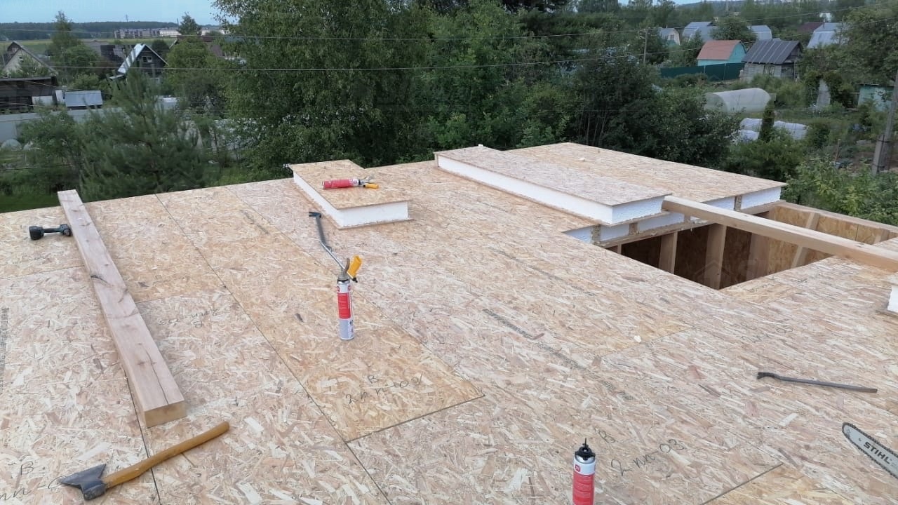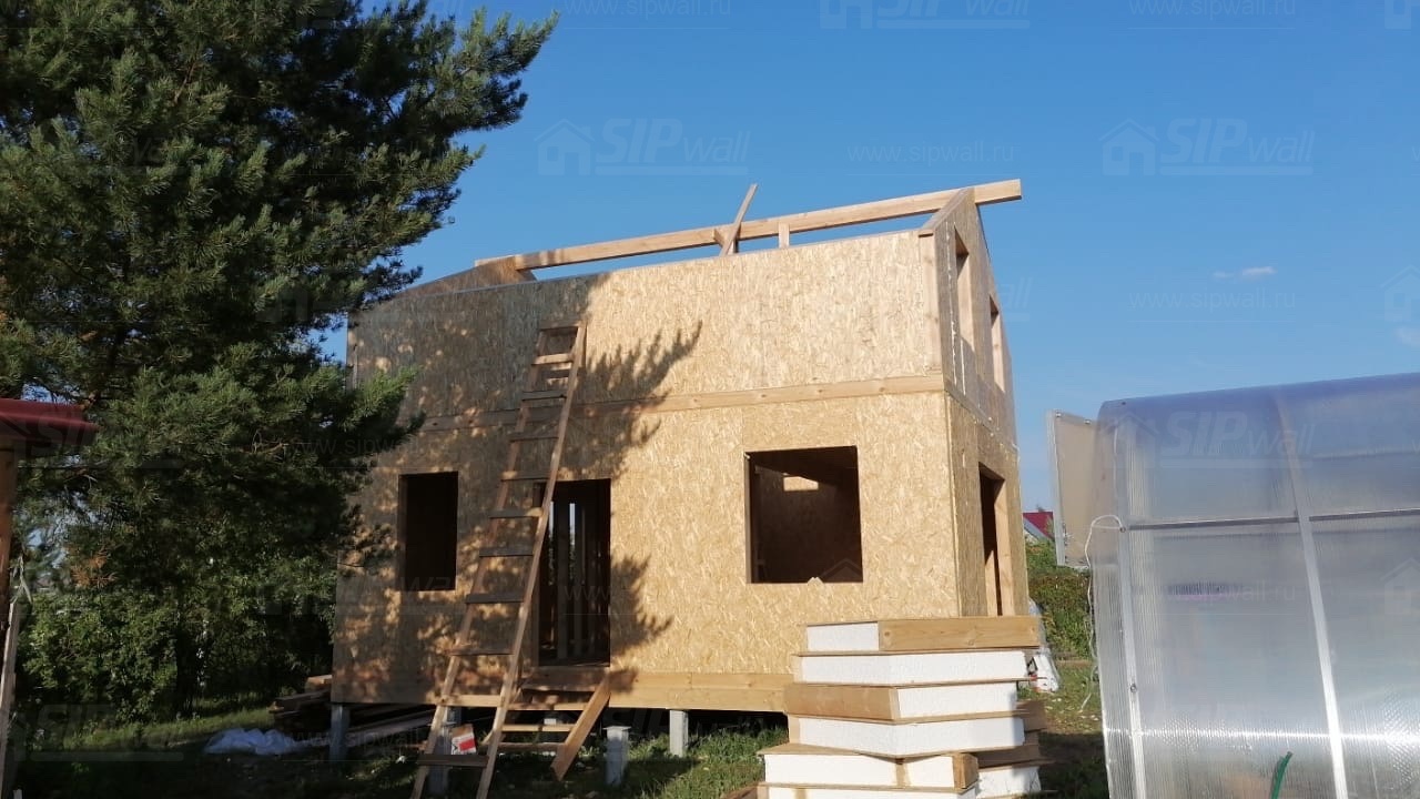 Все СИП панели SIPwall толщиной 224/174/124 мм (плиты OSB-3 толщиной 12 мм "Калевала" Россия и фасадный пенополистирол ППС-14 толщиной 200/150/100 мм производства, Россия) нарезаны и обрусованы сухим строганным брусом камерной сушки в соответствии с проектной документацией.