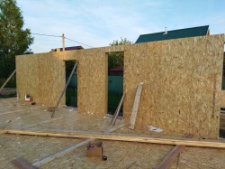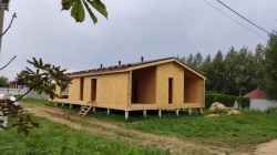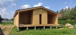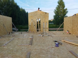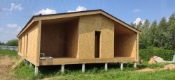 Все СИП панели SIPwall толщиной 224/174/124 мм (плиты OSB-3 толщиной 12 мм "Калевала" Россия и фасадный пенополистирол ППС-14 толщиной 200/150/100 мм производства, Россия) нарезаны и обрусованы сухим строганным брусом камерной сушки в соответствии с проектной документацией.