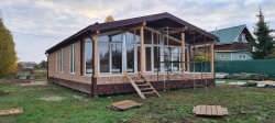 Домокомплект - изготовлен по проекту из СИП панелей произведенный по технологии SIPwall (ЭКОПАН) на собственном заводе расположенном в г. Шуя, Ивановской области. При изготовлении домокомплекта панельно каркасного дома используется только сухой строганный брус камерной сушки, обработанный огнебиозащитным составом.
