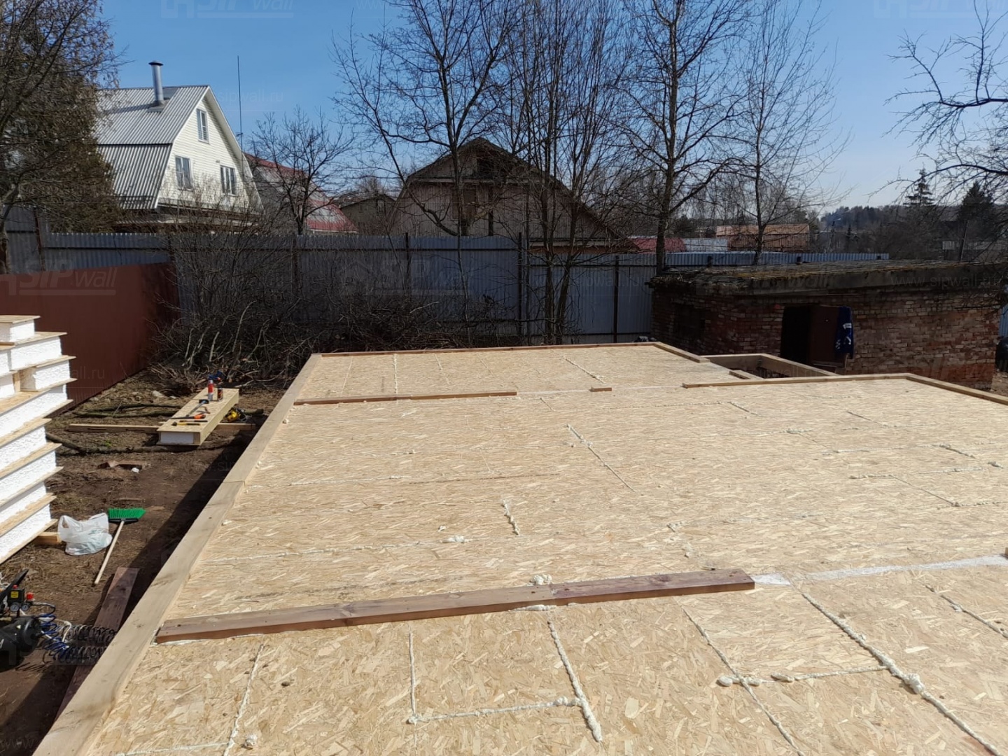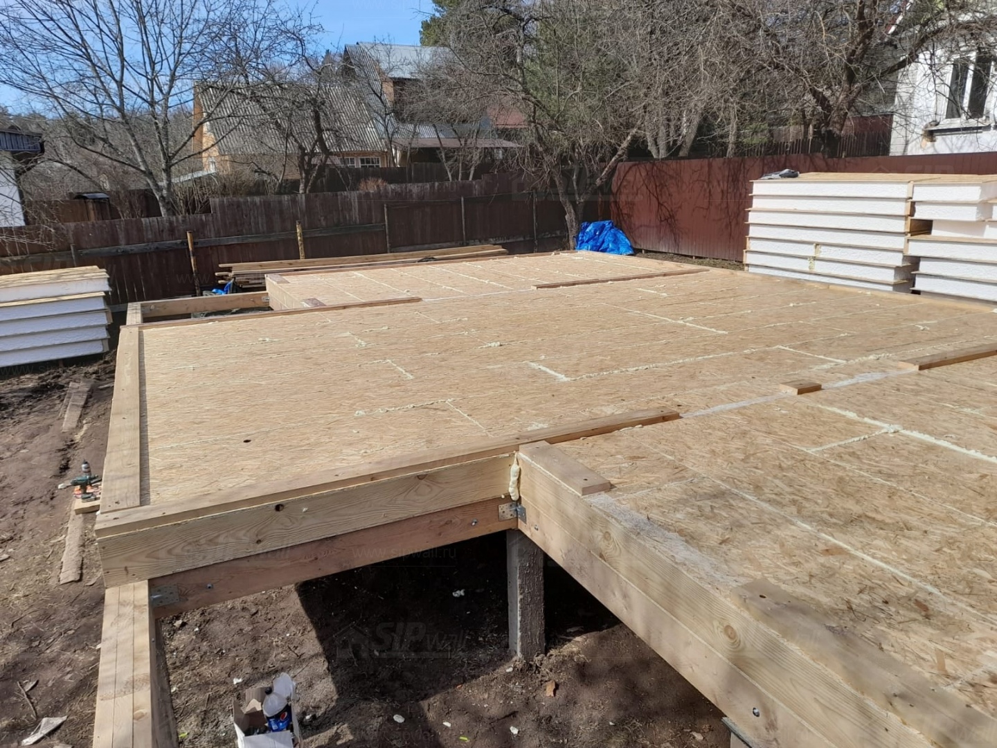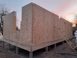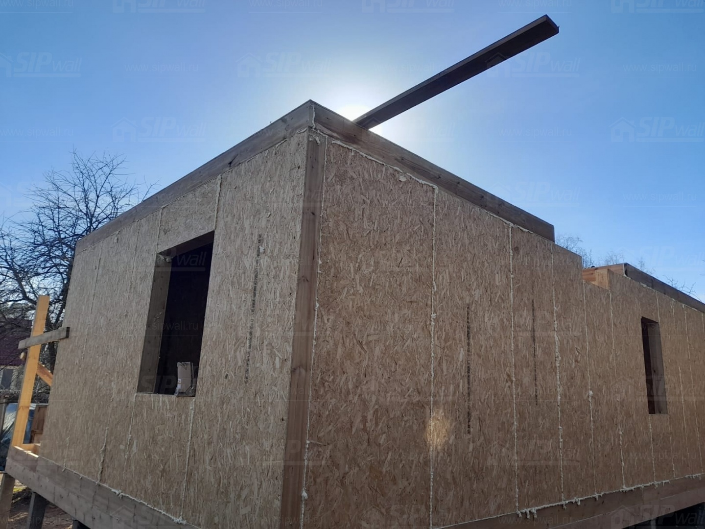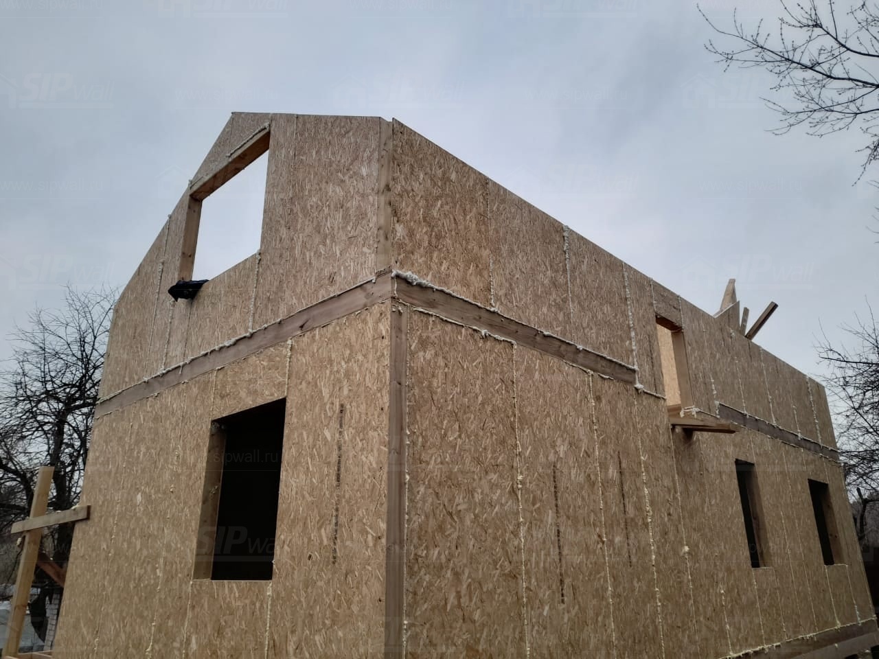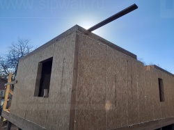 Все СИП панели SIPwall толщиной 224/174/124 мм (плиты OSB-3 толщиной 12 мм "Калевала" Россия и фасадный пенополистирол ППС-14 толщиной 200/150/100 мм производства, Россия) нарезаны и обрусованы сухим строганным брусом камерной сушки в соответствии с проектной документацией.