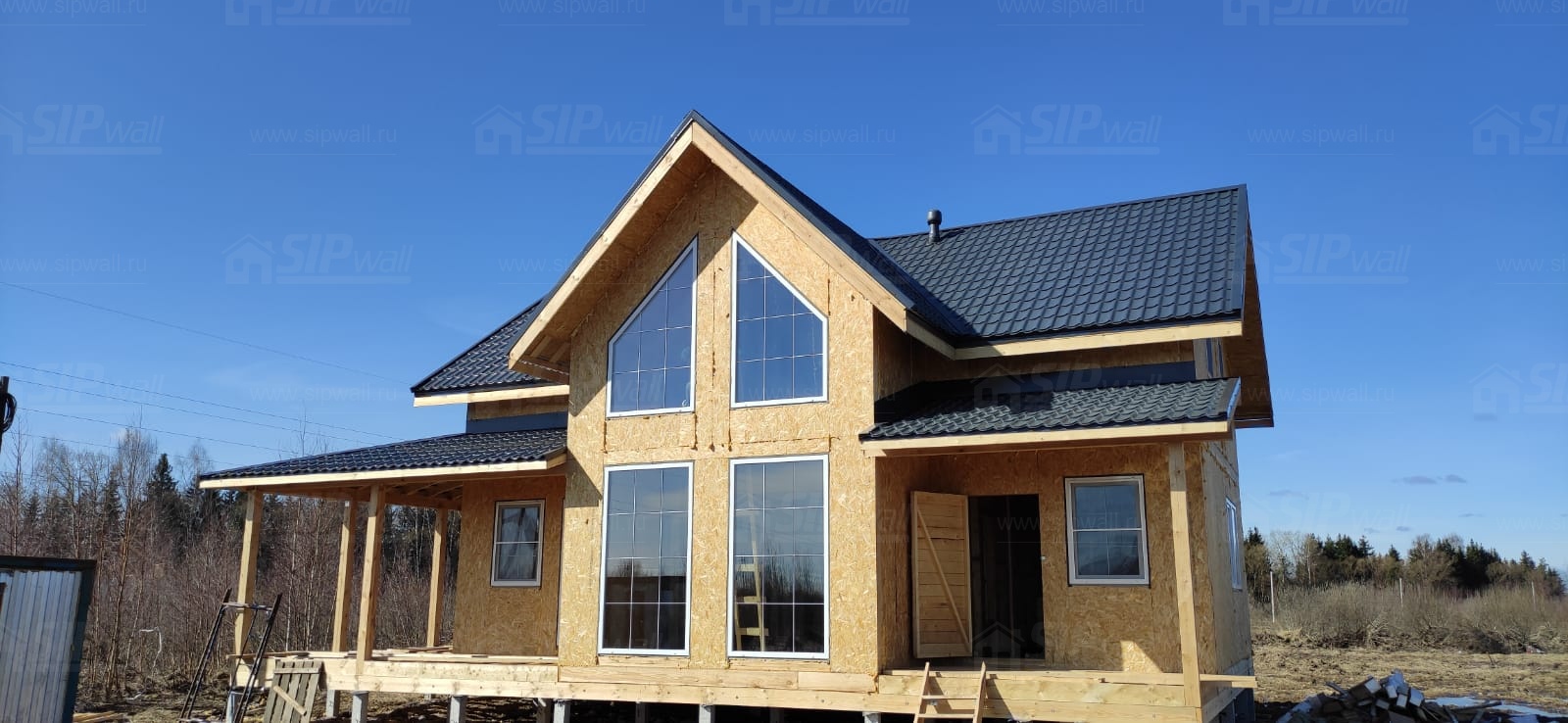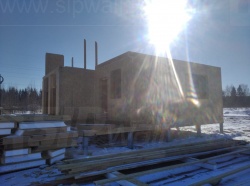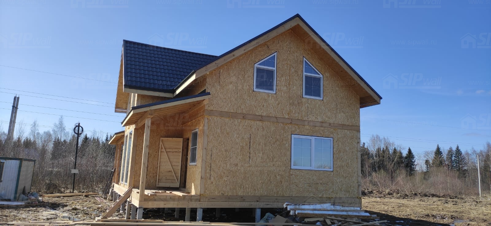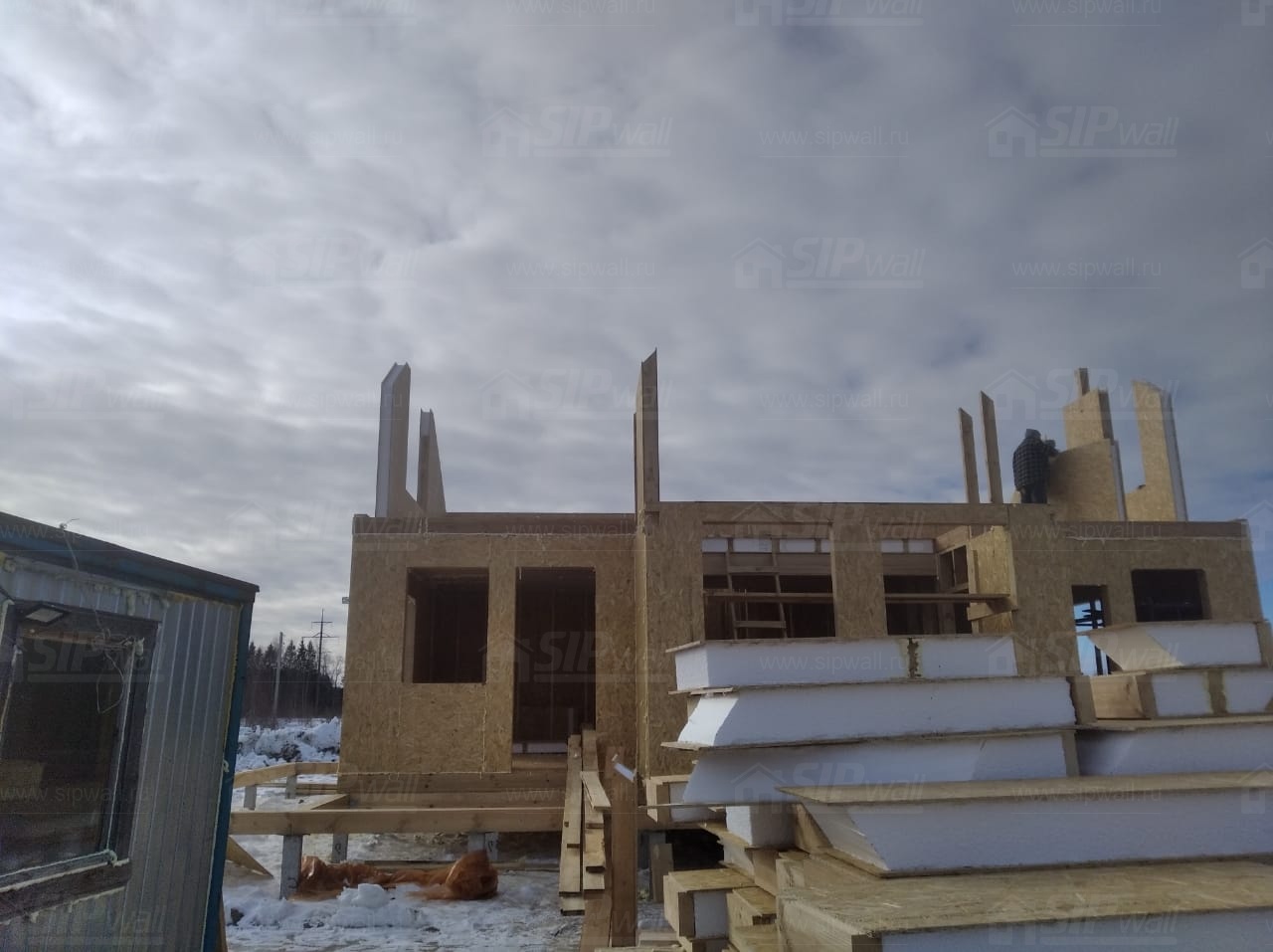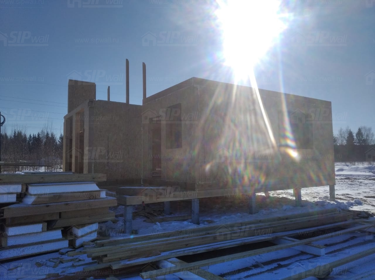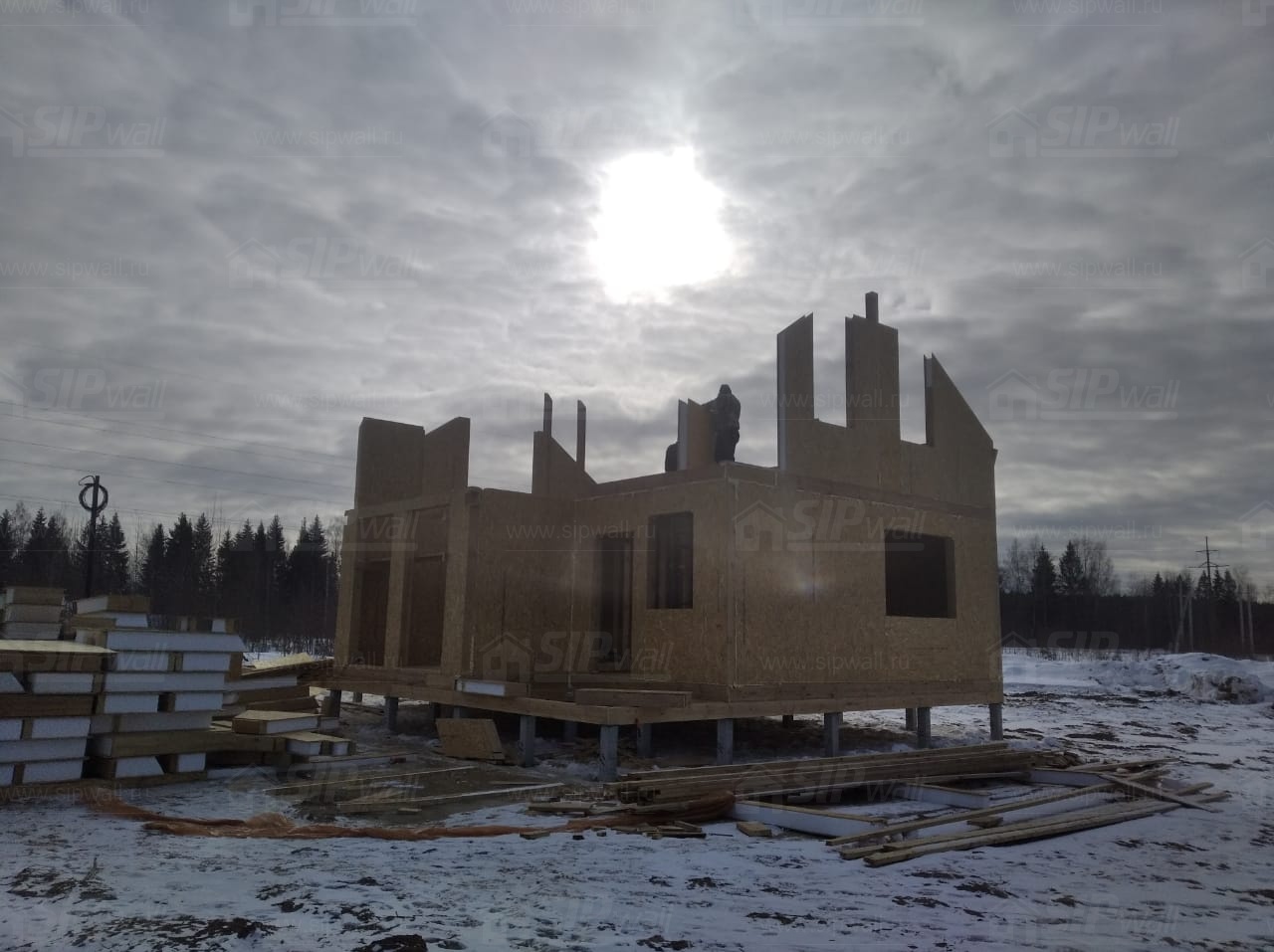 Все СИП панели SIPwall толщиной 224/174/124 мм (плиты OSB-3 толщиной 12 мм "Калевала" Россия и фасадный пенополистирол ППС-14 толщиной 200/150/100 мм производства, Россия) нарезаны и обрусованы сухим строганным брусом камерной сушки в соответствии с проектной документацией.