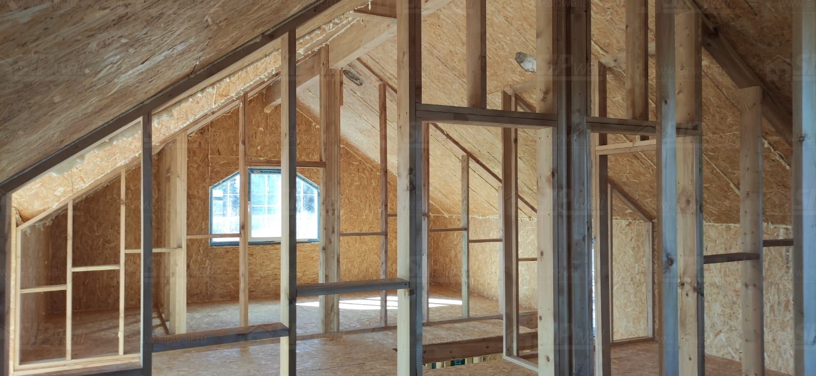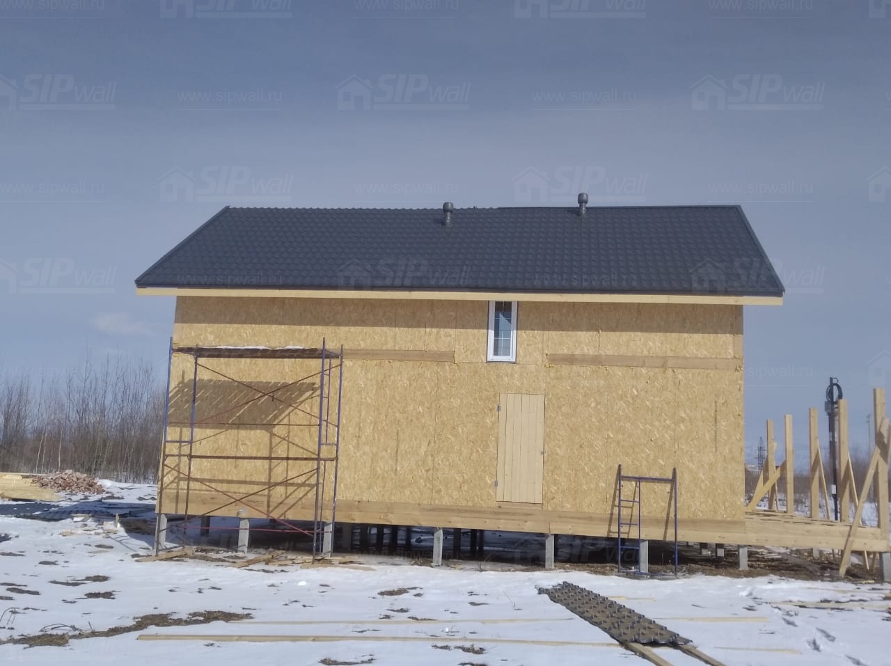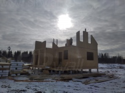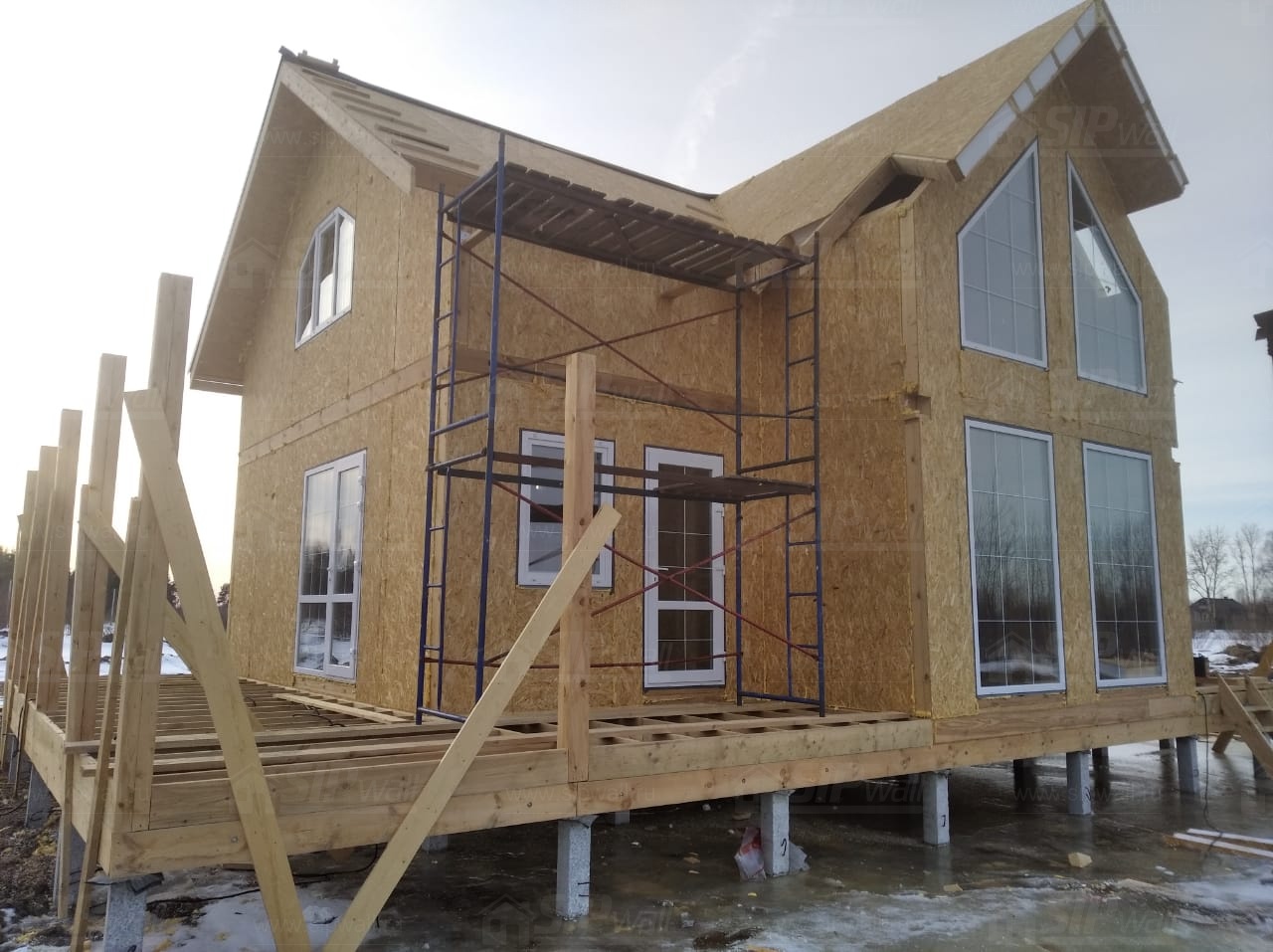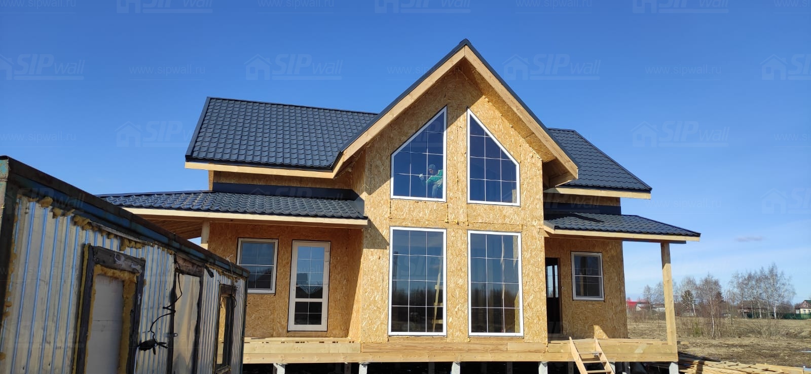 Все СИП панели SIPwall толщиной 224/174/124 мм (плиты OSB-3 толщиной 12 мм "Калевала" Россия и фасадный пенополистирол ППС-14 толщиной 200/150/100 мм производства, Россия) нарезаны и обрусованы сухим строганным брусом камерной сушки в соответствии с проектной документацией.