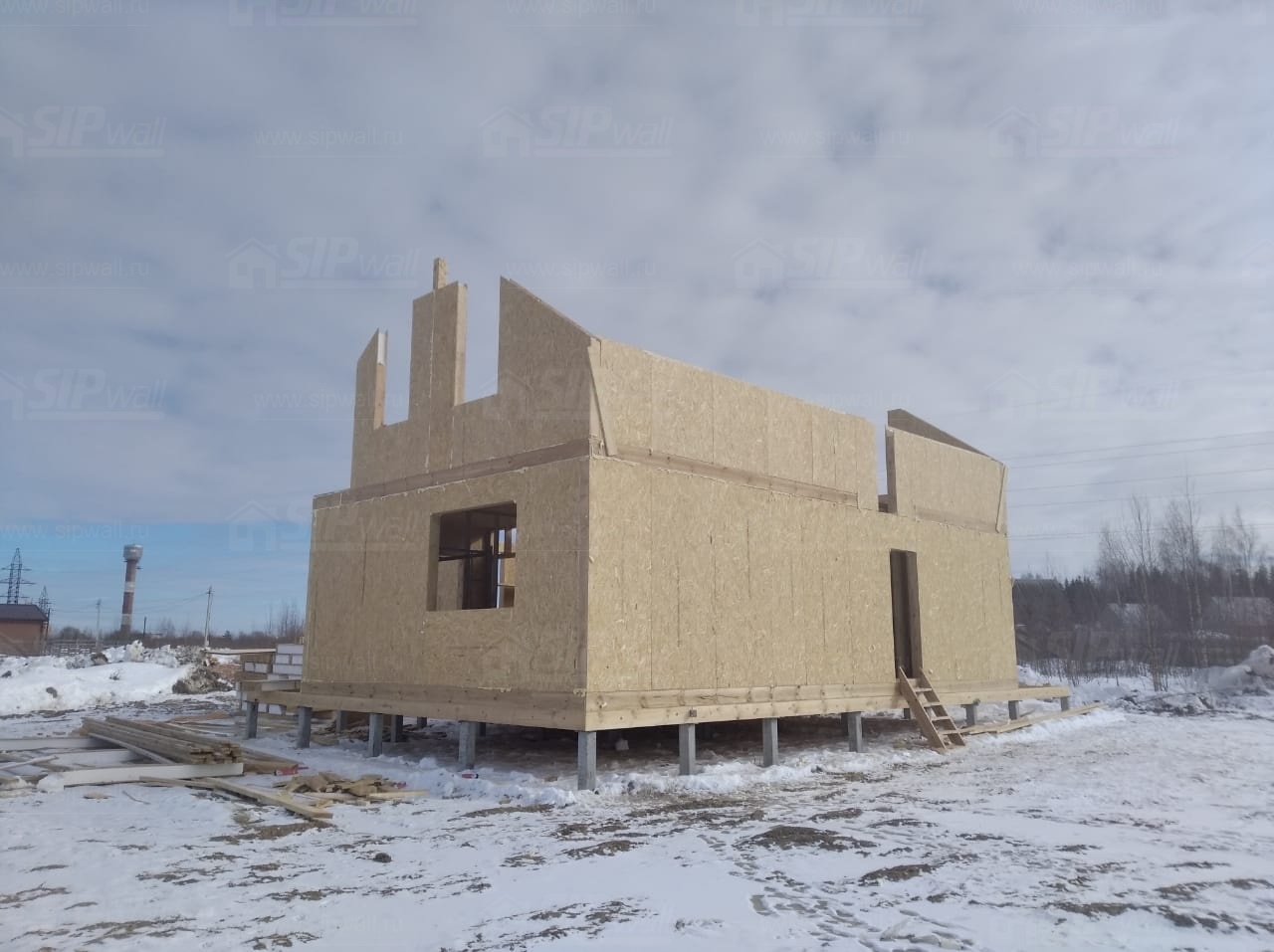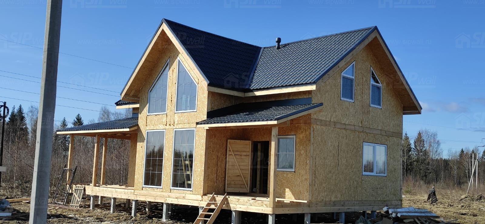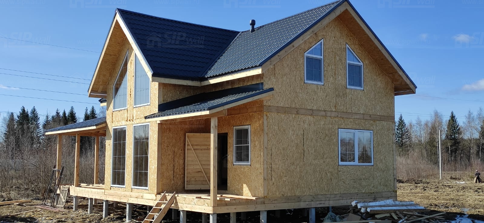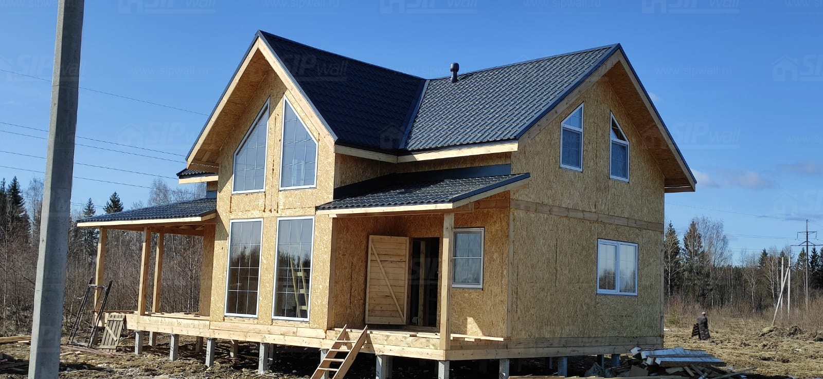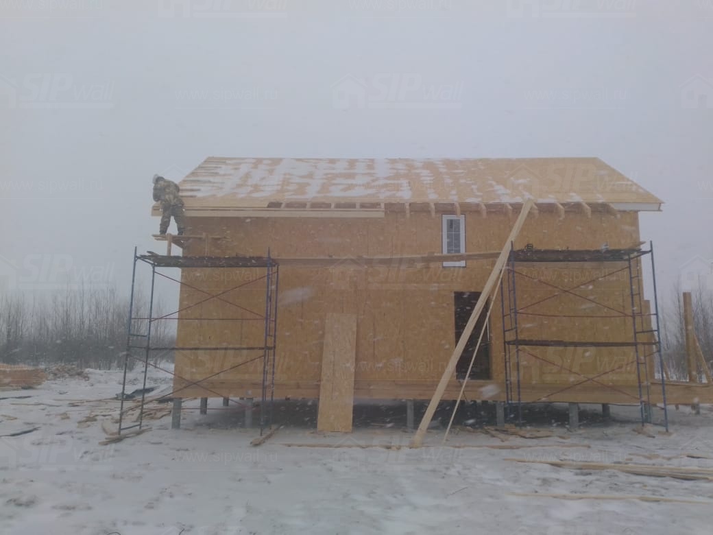Все СИП панели SIPwall толщиной 224/174/124 мм (плиты OSB-3 толщиной 12 мм "Калевала" Россия и фасадный пенополистирол ППС-14 толщиной 200/150/100 мм производства, Россия) нарезаны и обрусованы сухим строганным брусом камерной сушки в соответствии с проектной документацией.